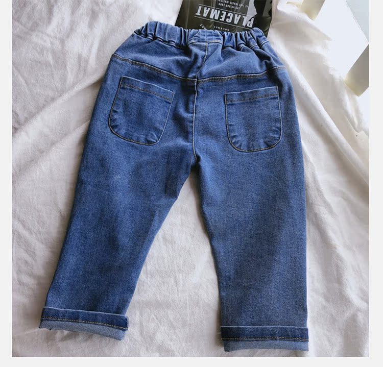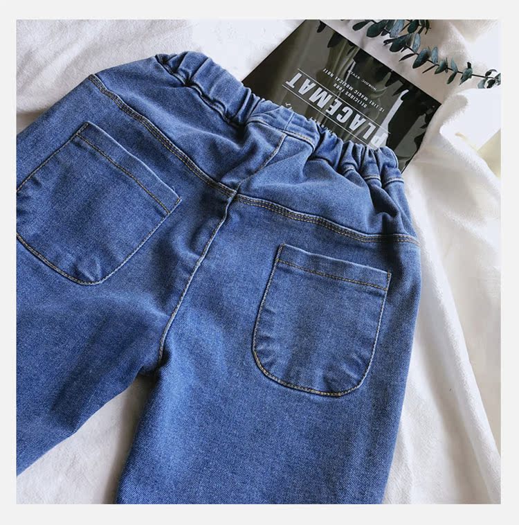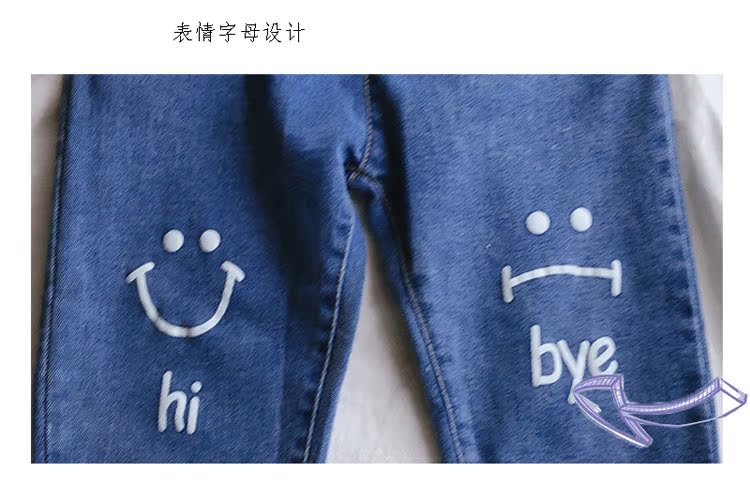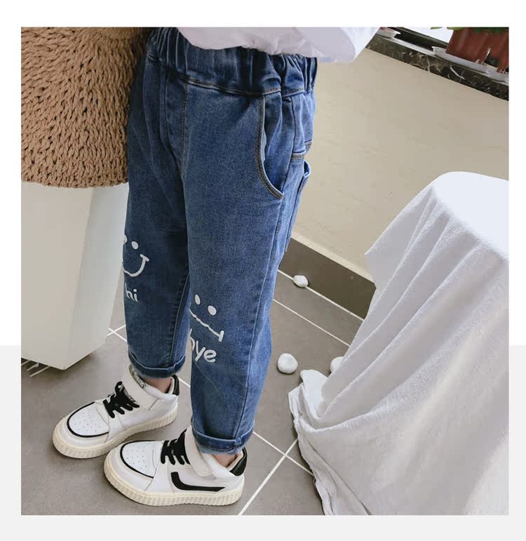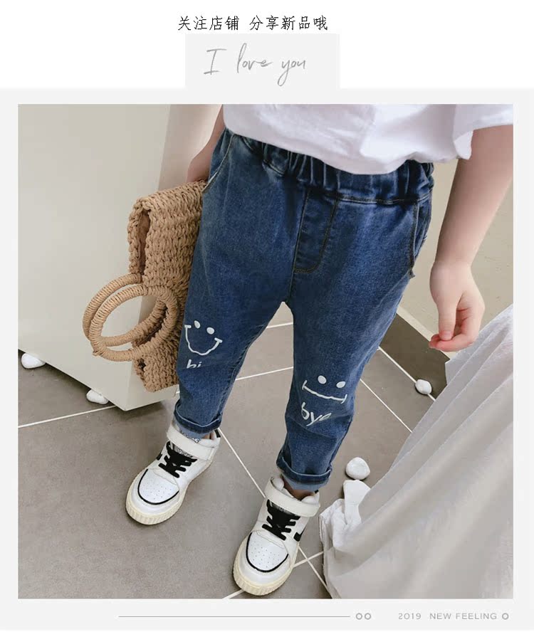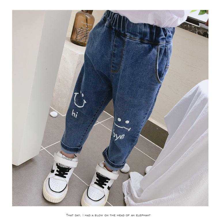 2019春秋季新款 男女童寶寶牛仔褲 可愛甜美卡通字母印花長褲子1入