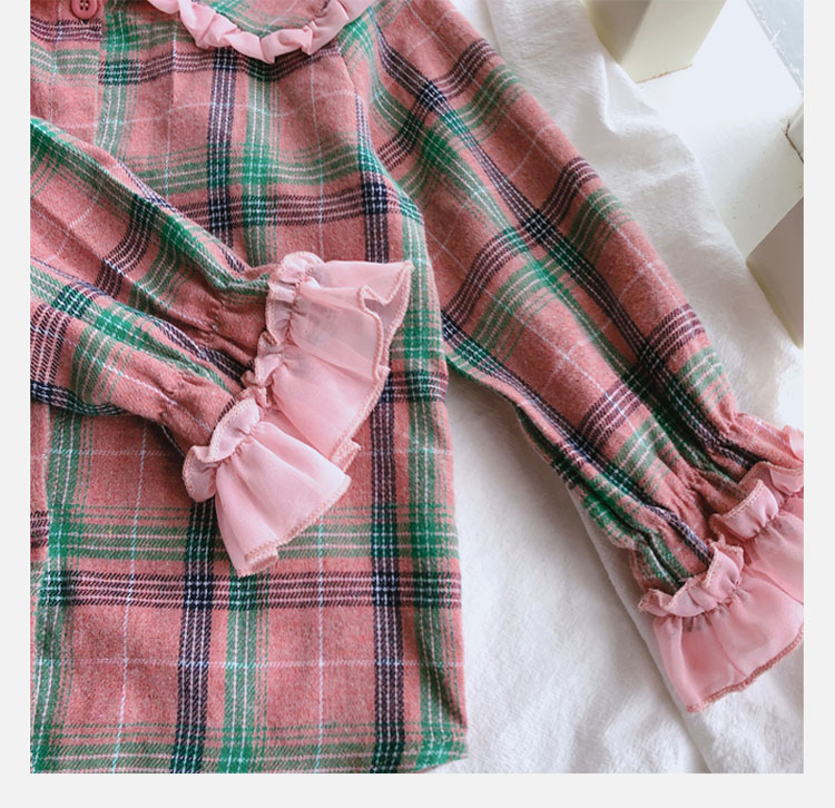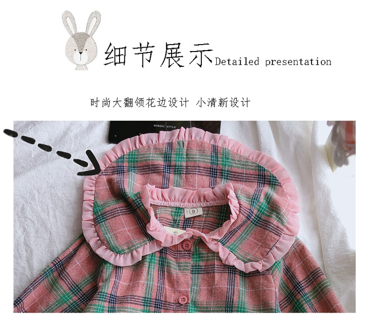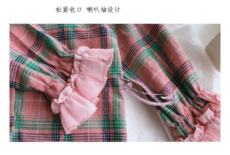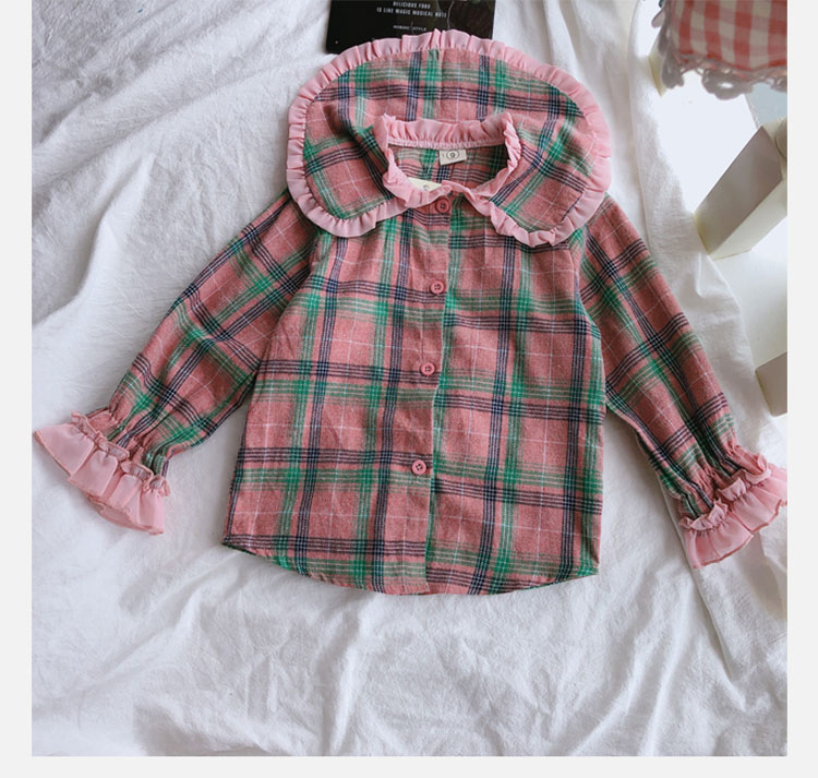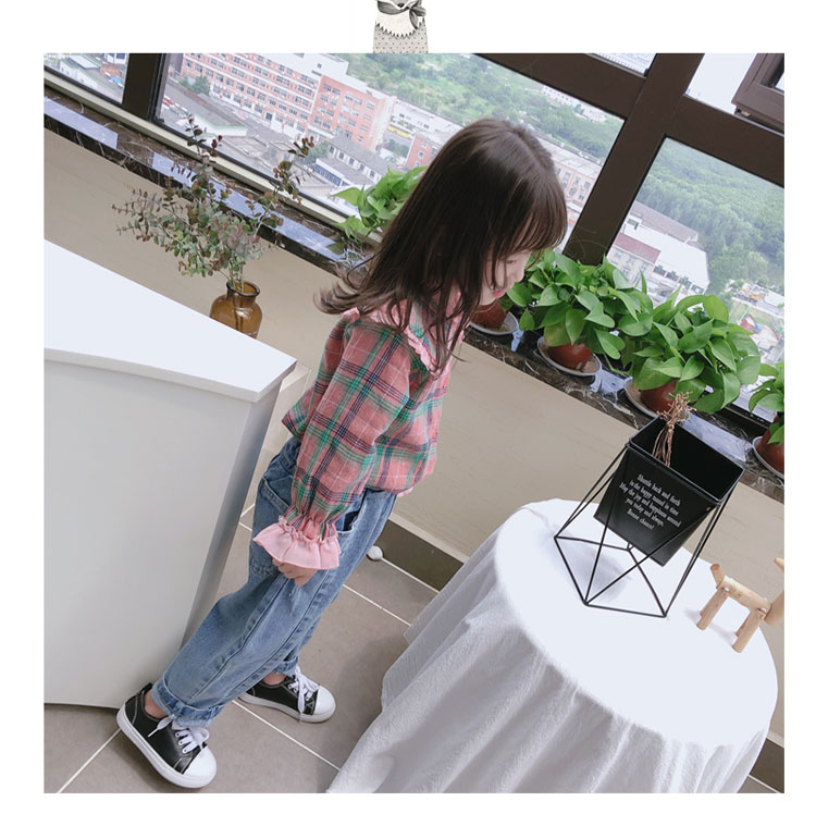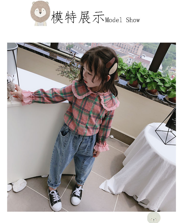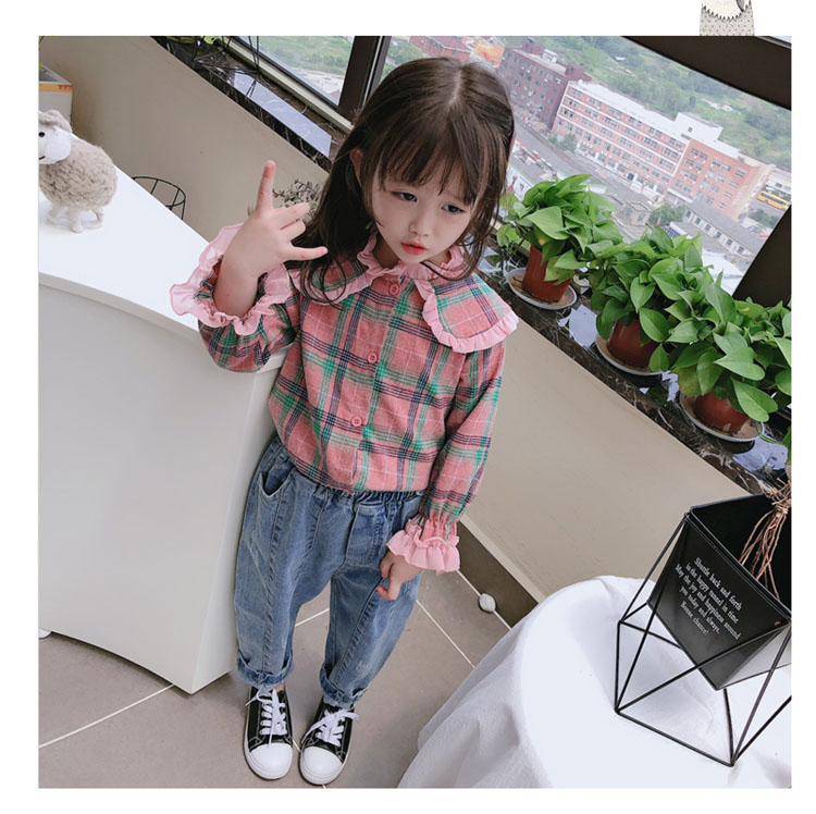 2019秋季新款 女童寶寶喇叭袖上衣 中小童小清新翻領舒適格子襯衫1入
