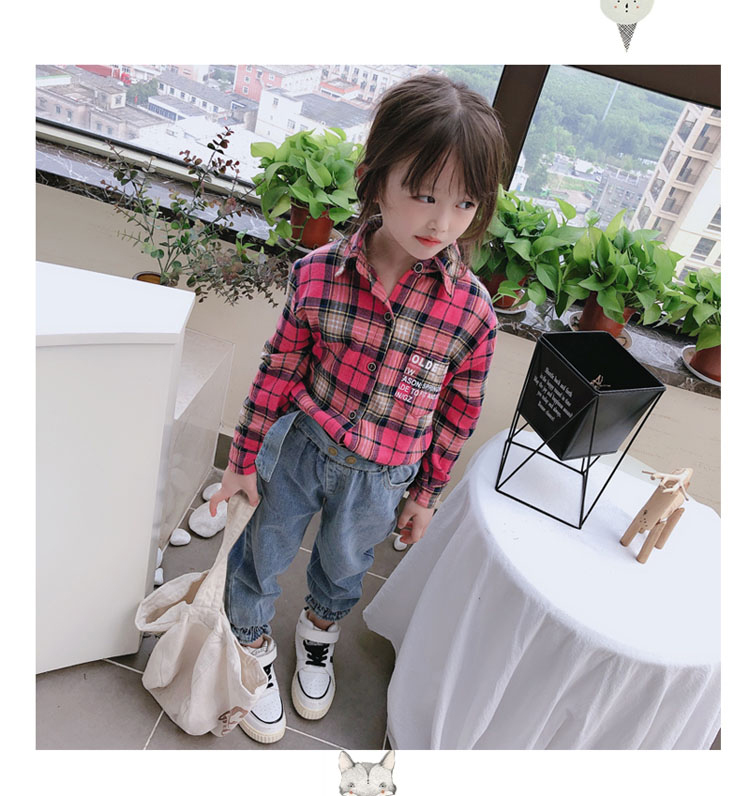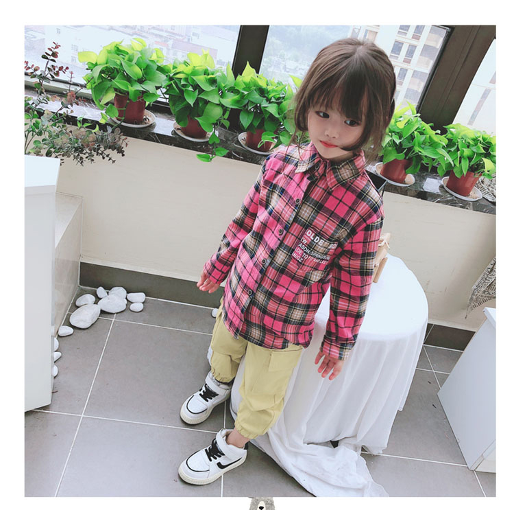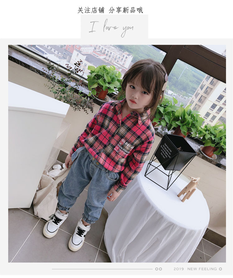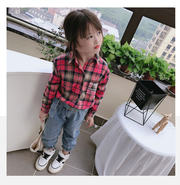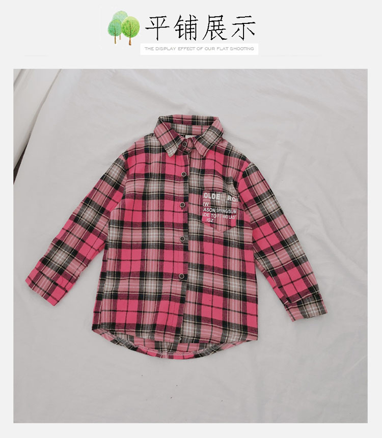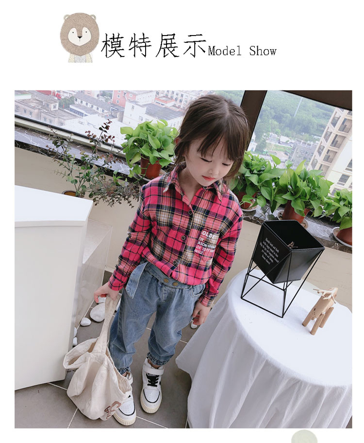 2019春秋季新款 中小童百搭女童襯衫 兒童寬松舒適翻領格子上衣1入