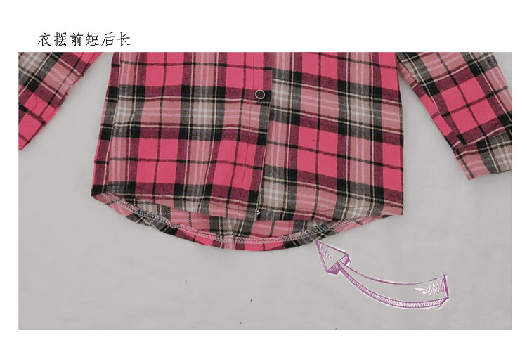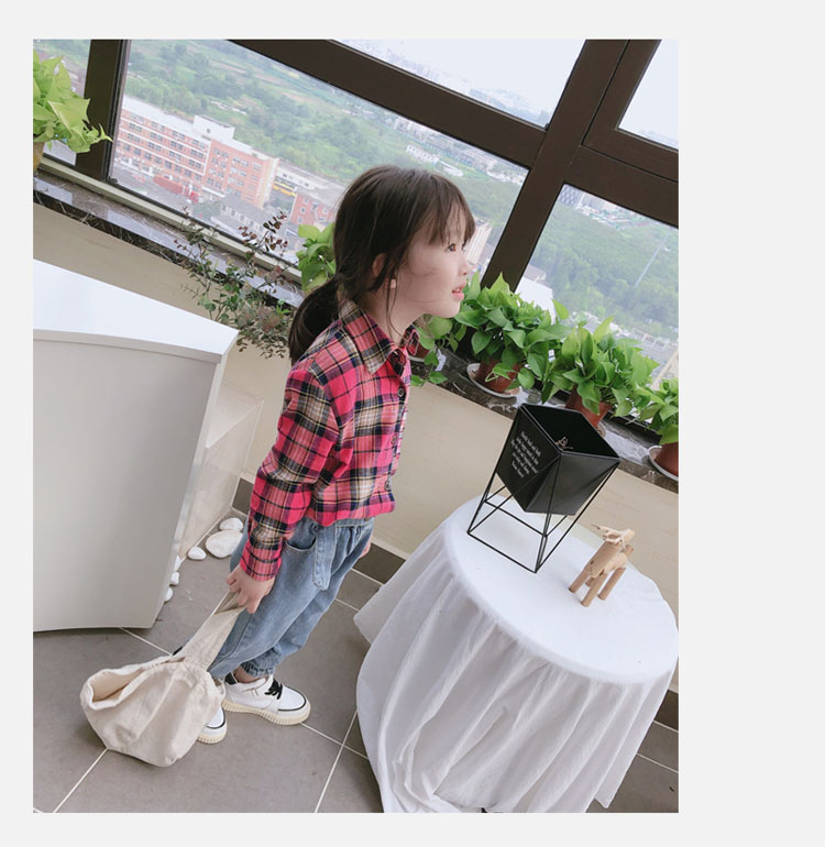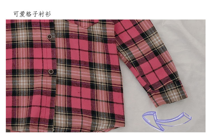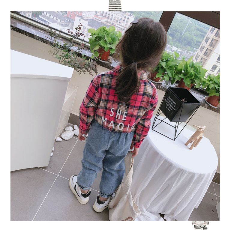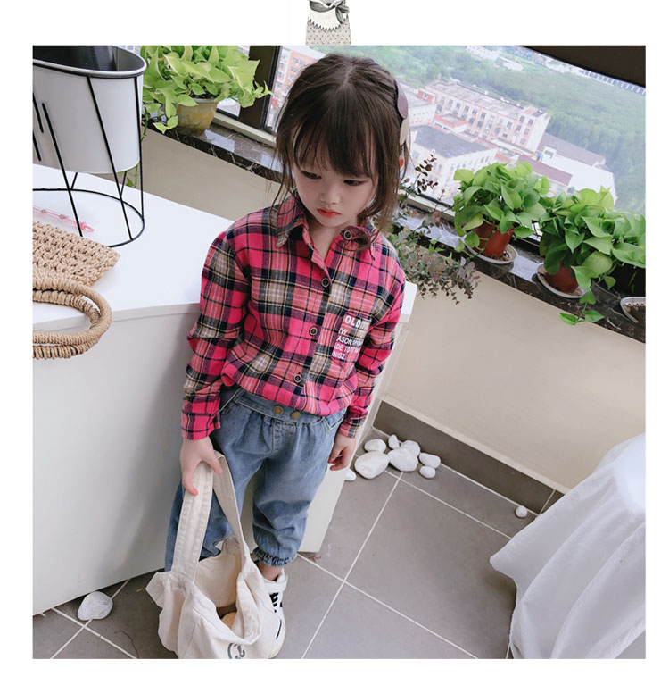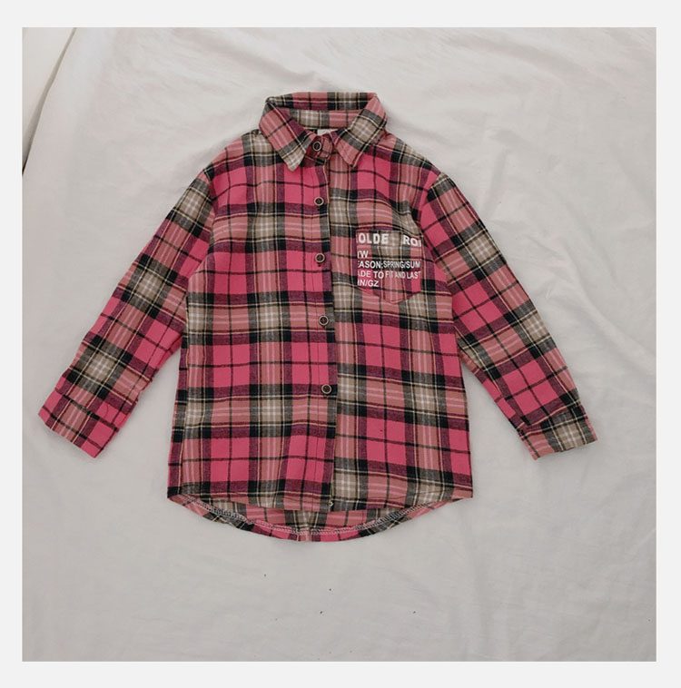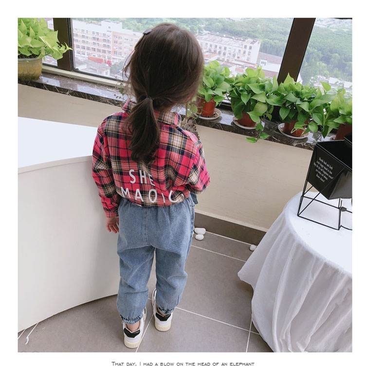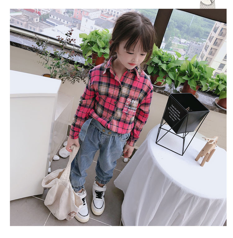 2019春秋季新款 中小童百搭女童襯衫 兒童寬松舒適翻領格子上衣1入