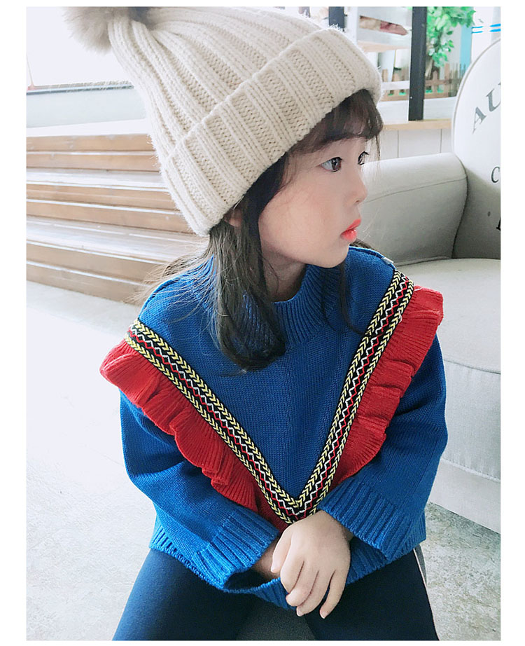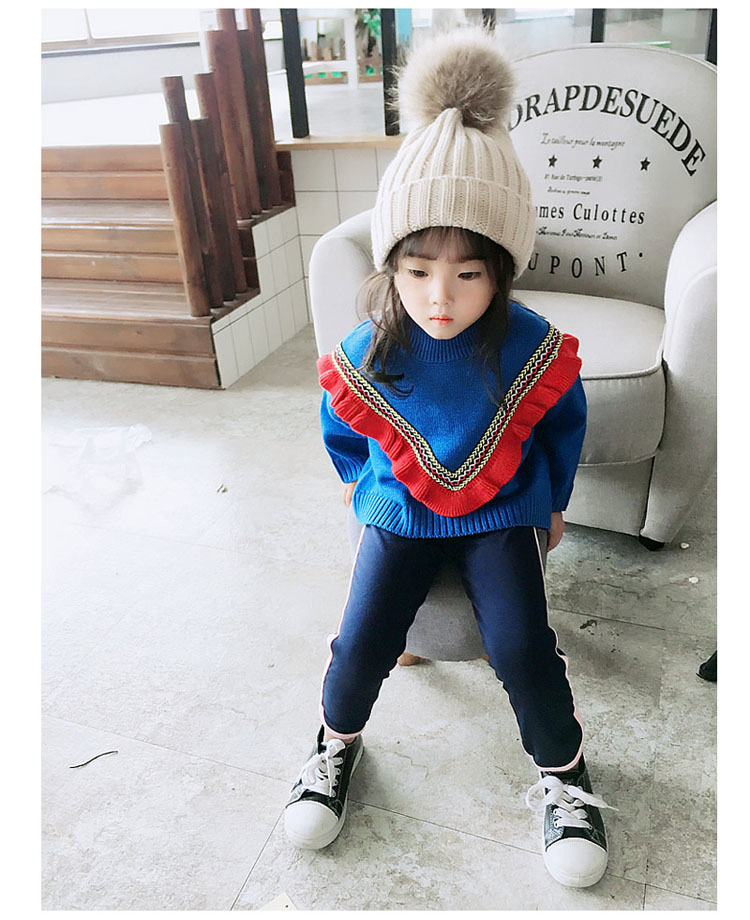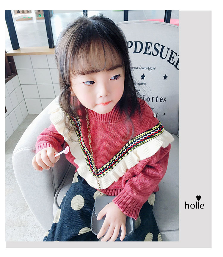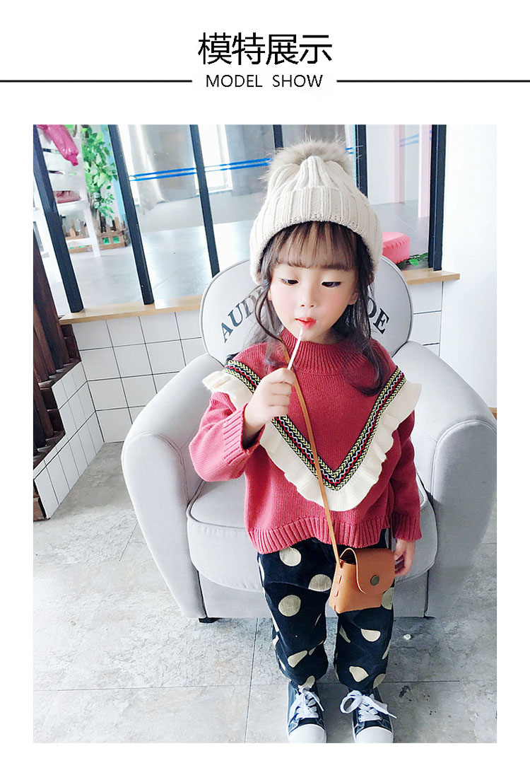 2018女童春秋季新款中小童舒適花邊套頭針織衫 寬松長袖兒童上衣1入