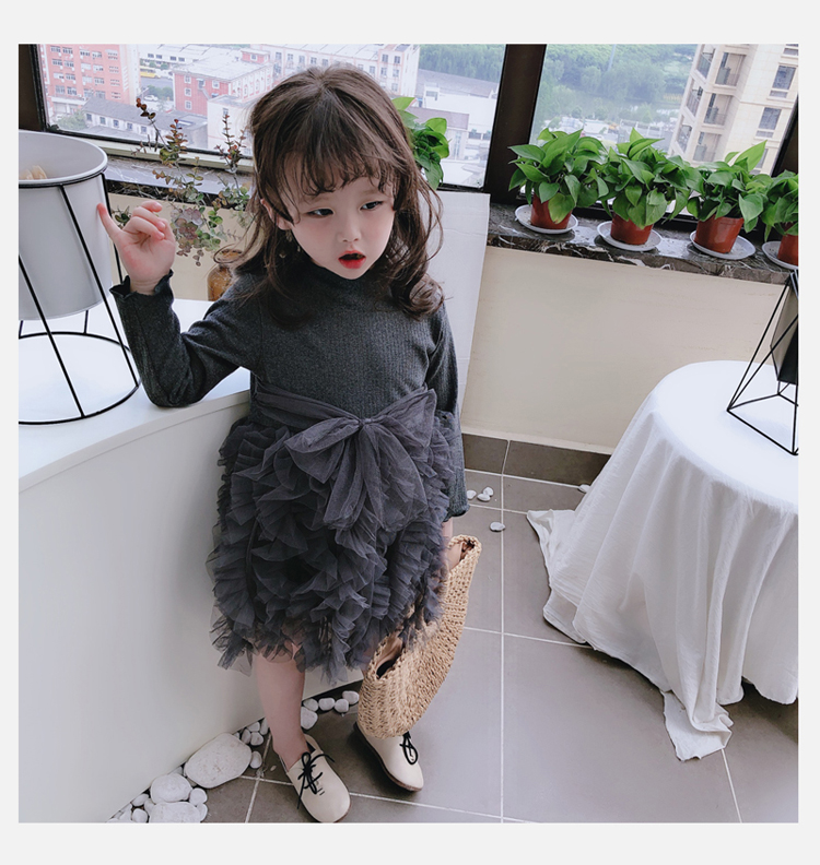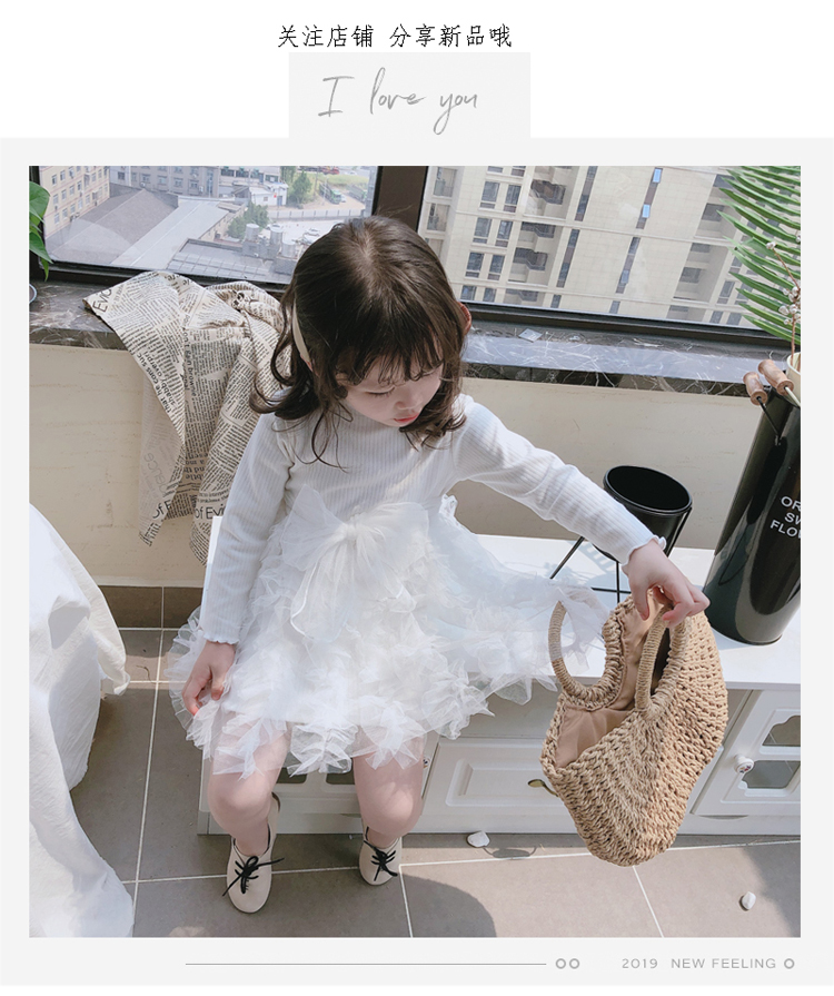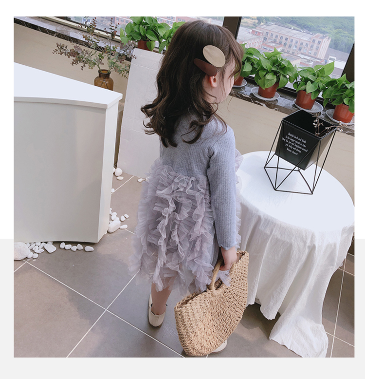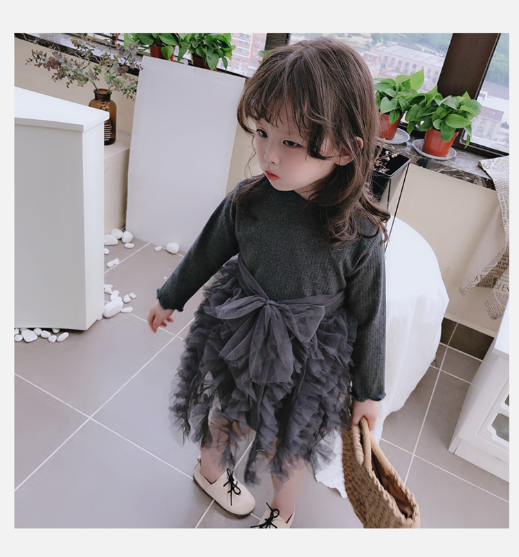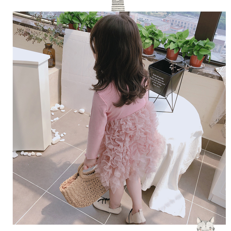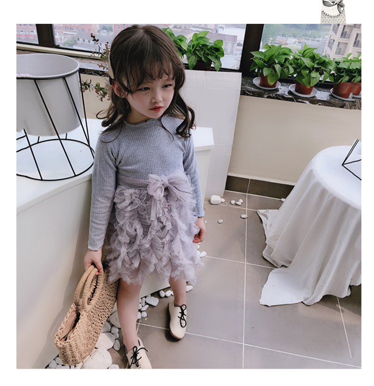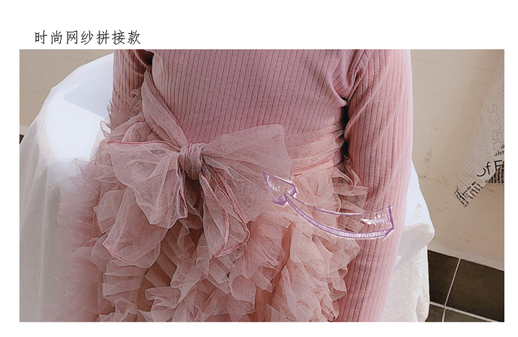 2019春秋季新款 女童洋氣拼接紗紗裙 兒童可愛甜美小清新連衣裙1入