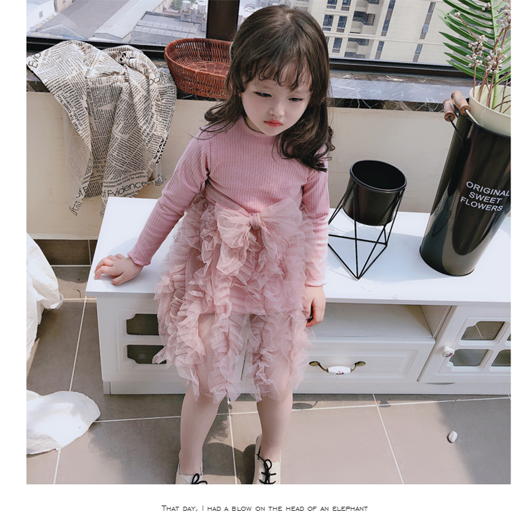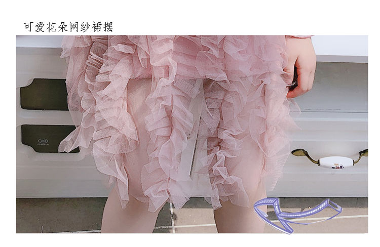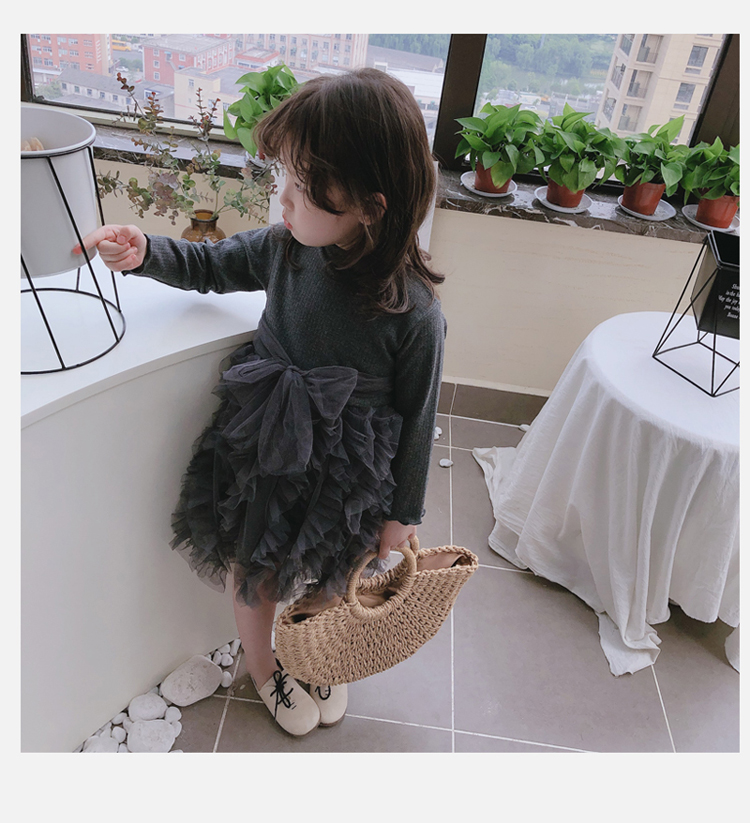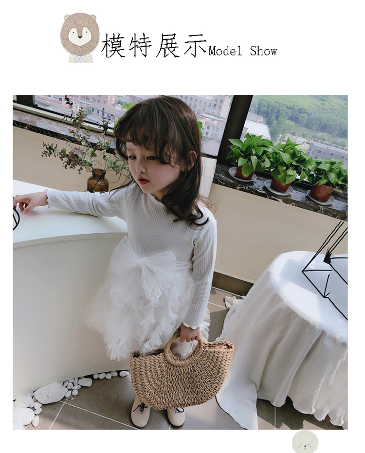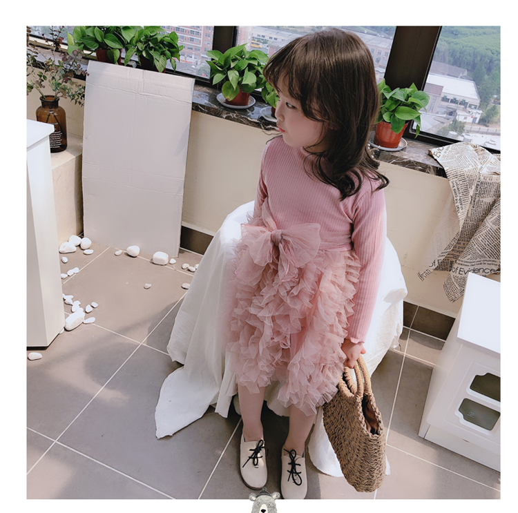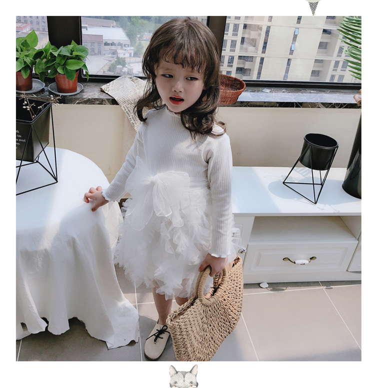 2019春秋季新款 女童洋氣拼接紗紗裙 兒童可愛甜美小清新連衣裙1入