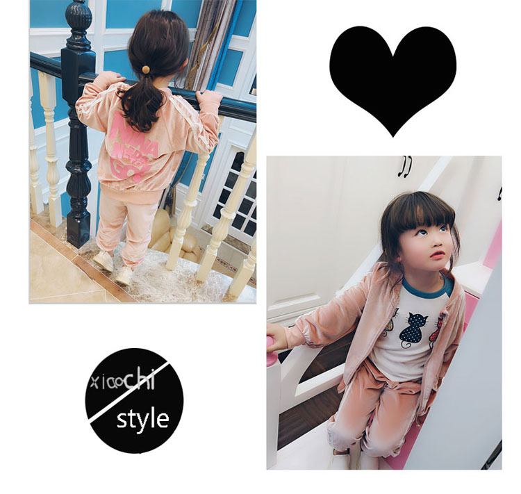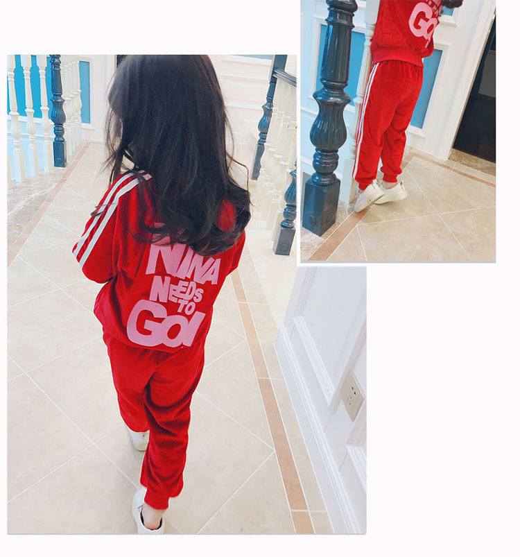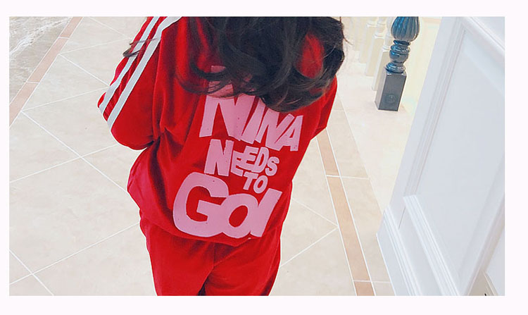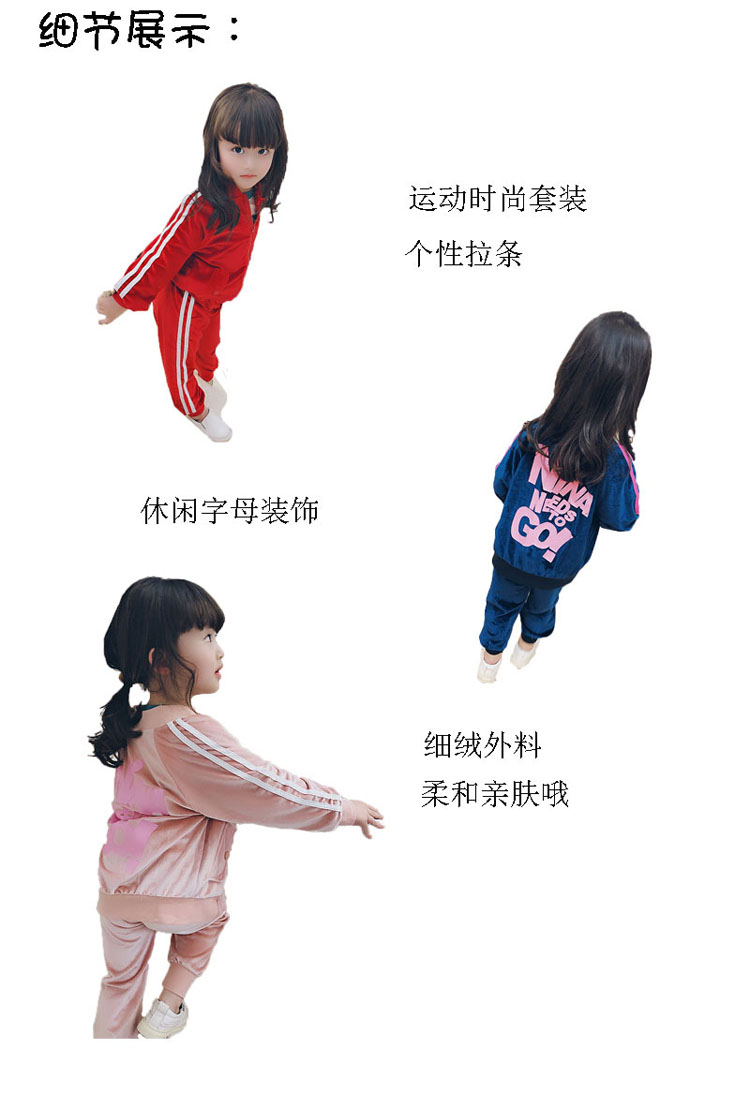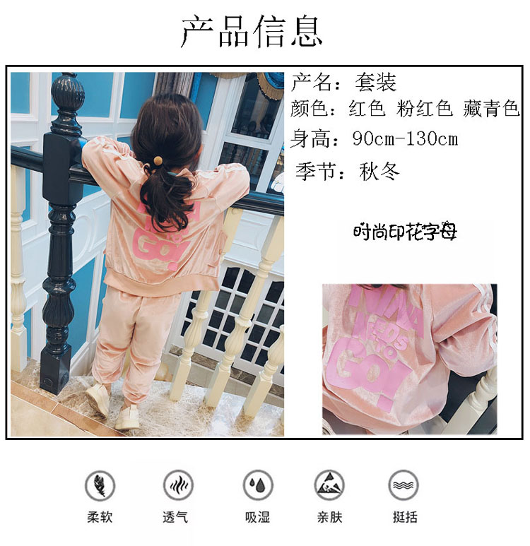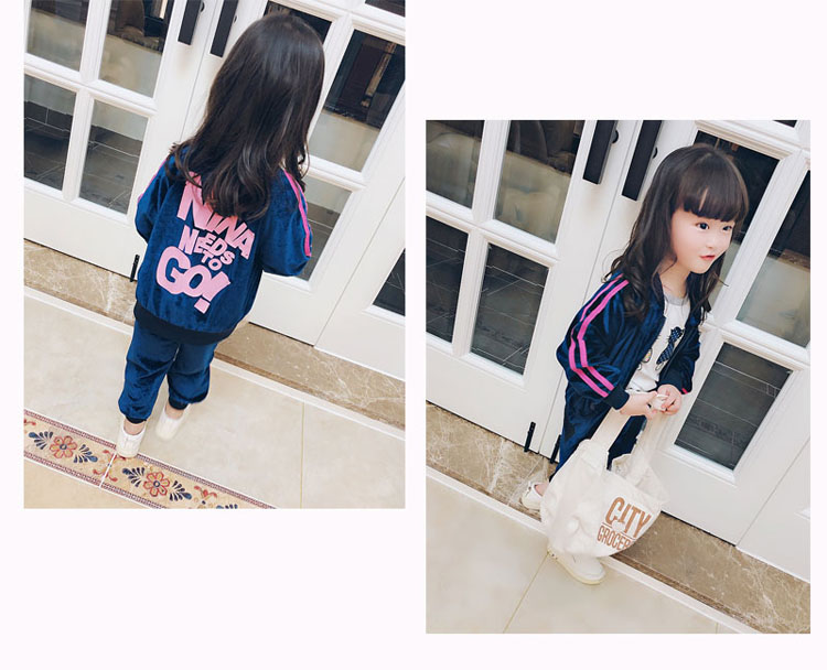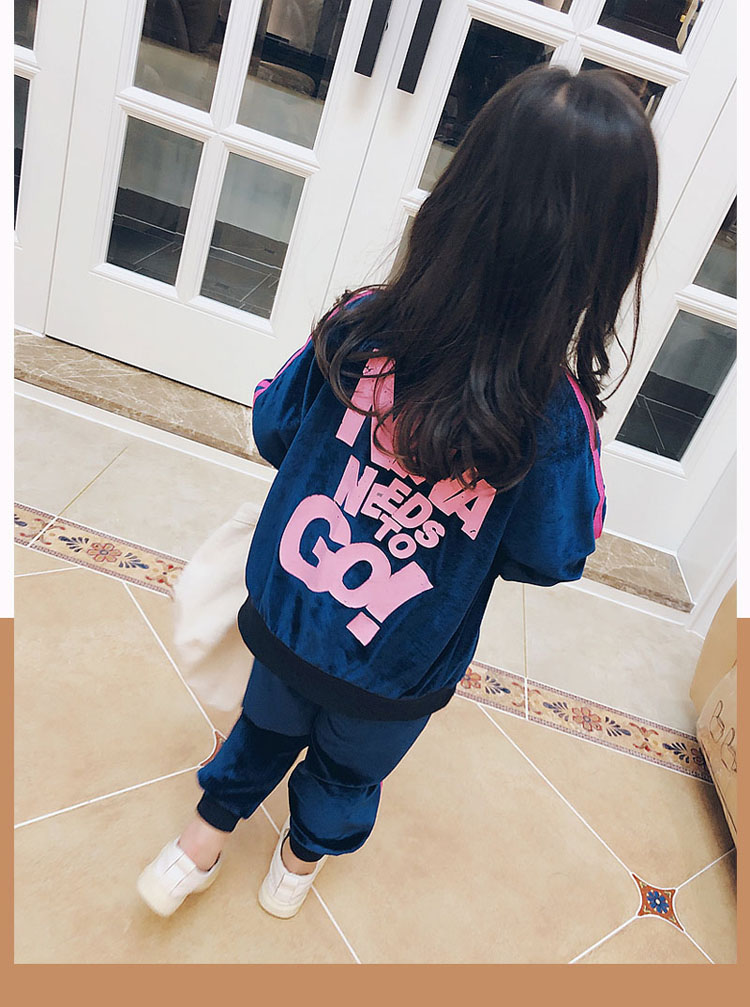 2019春秋季新款中小童寬松長袖字母印花外套女童寶寶褲兒童套裝1入