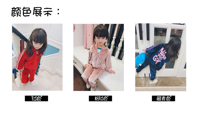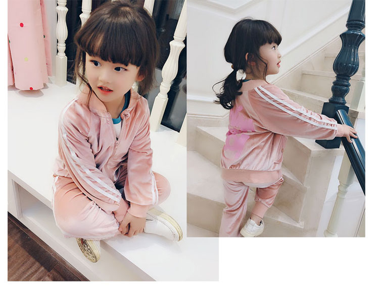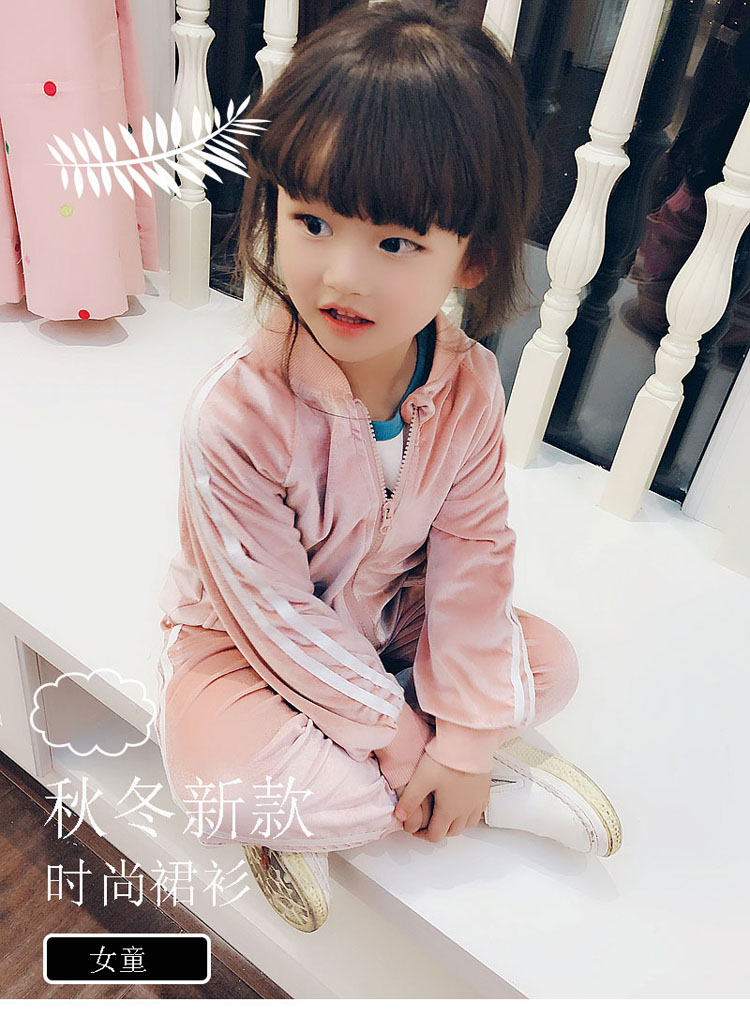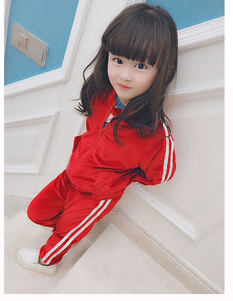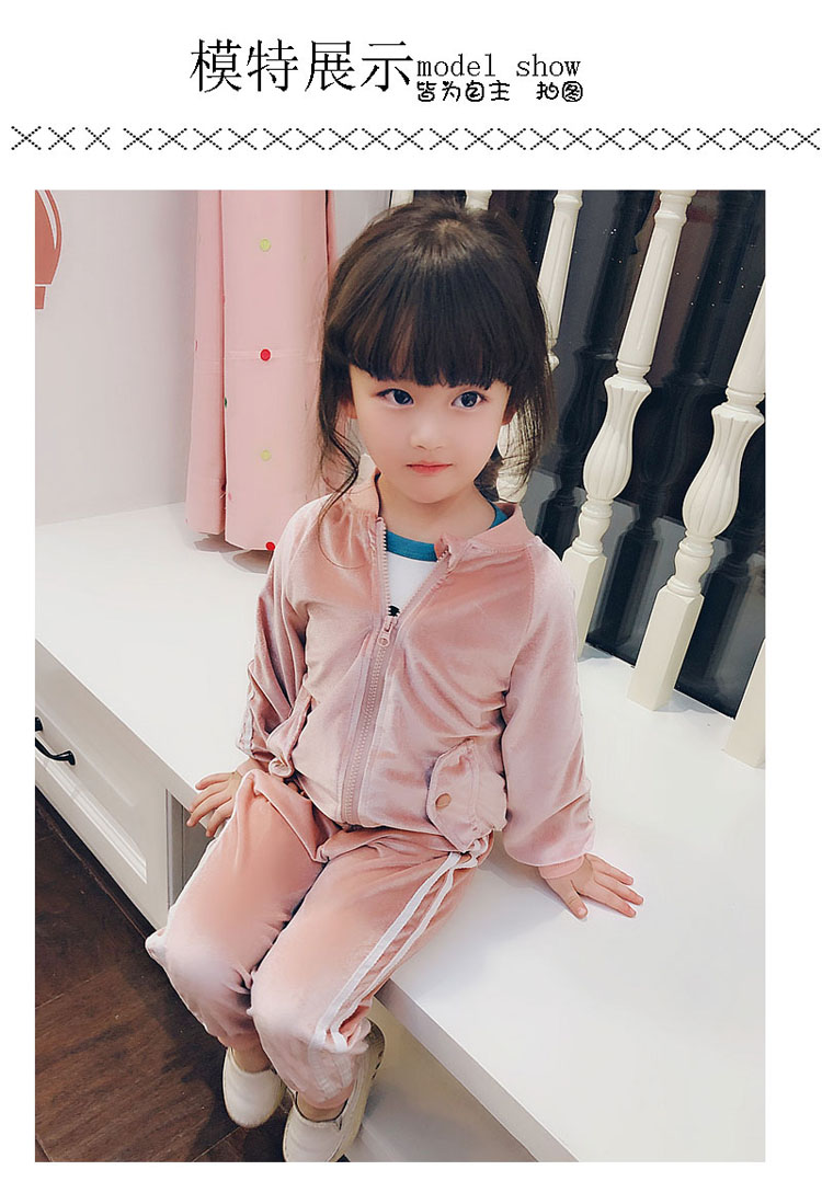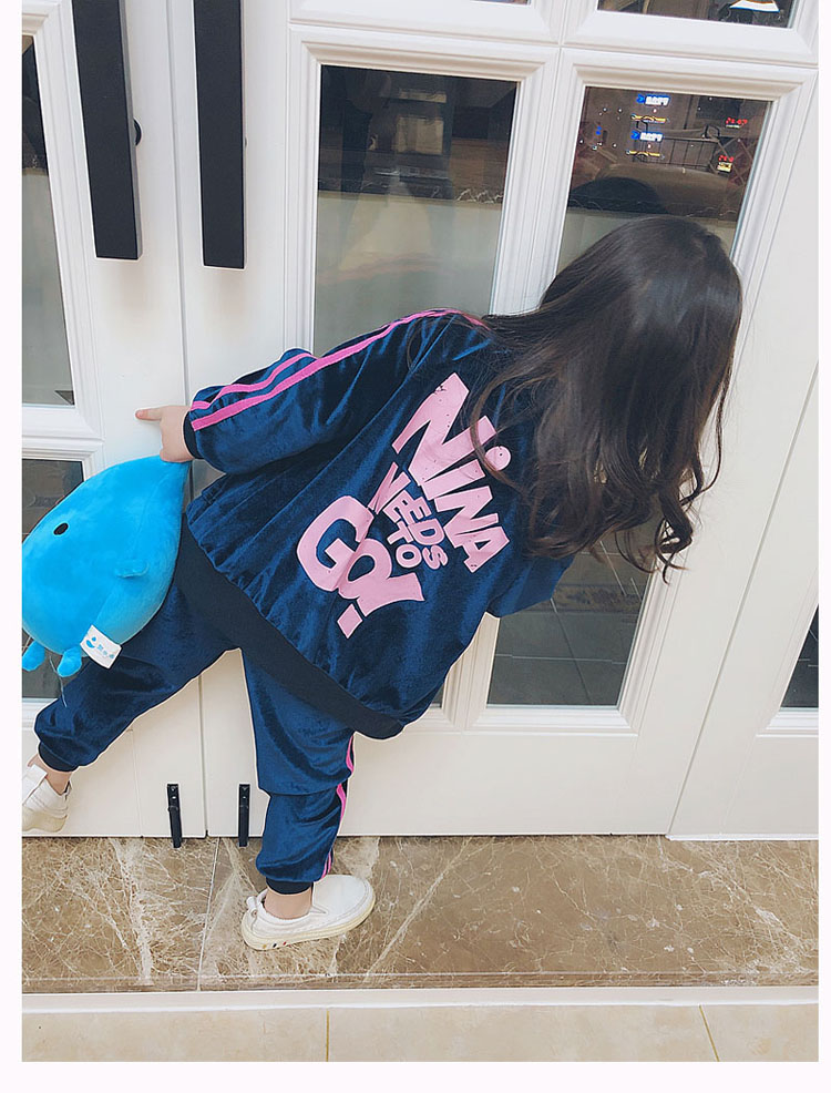 2019春秋季新款中小童寬松長袖字母印花外套女童寶寶褲兒童套裝1入