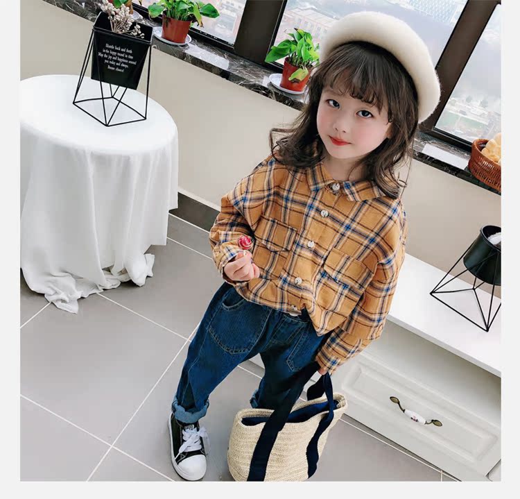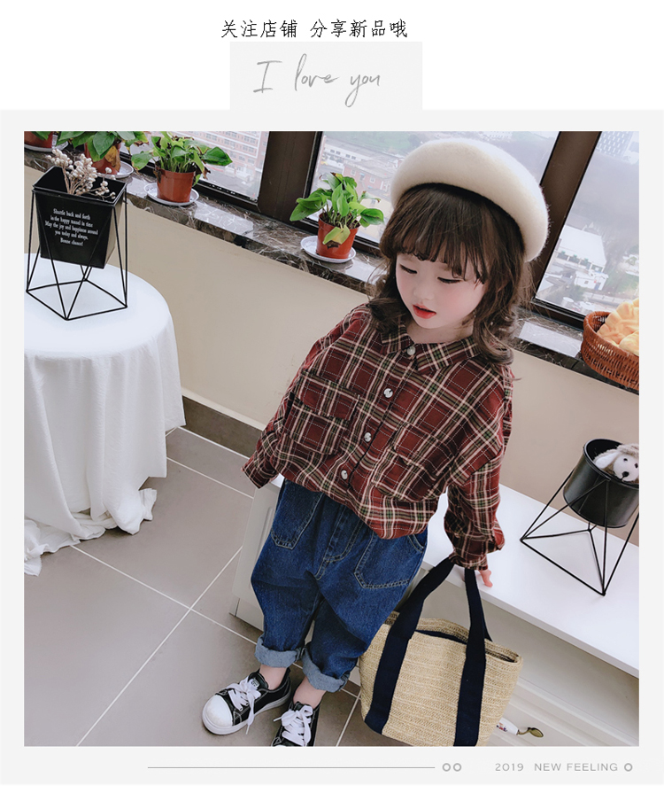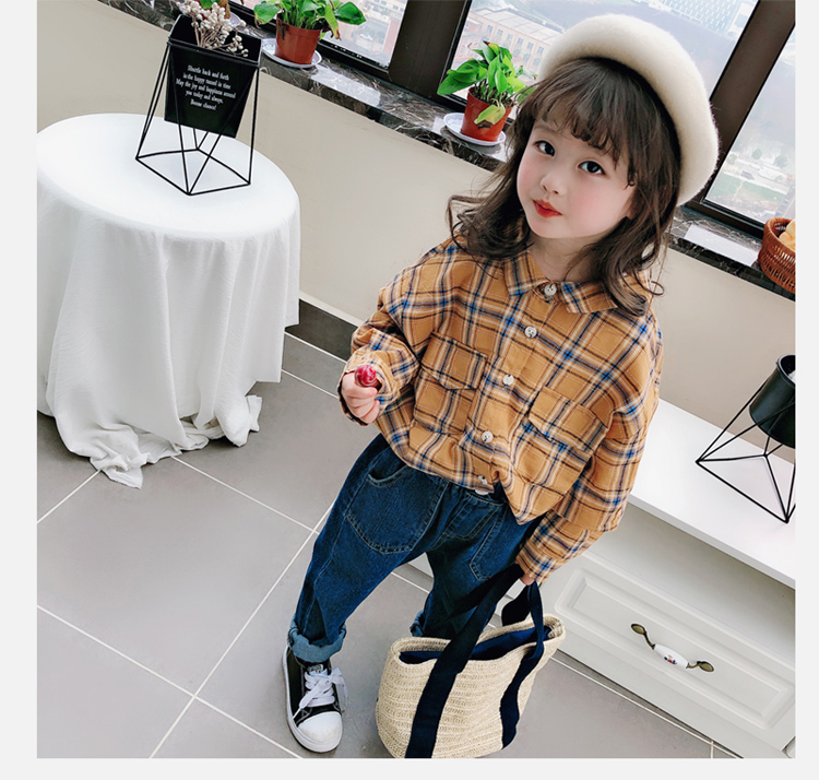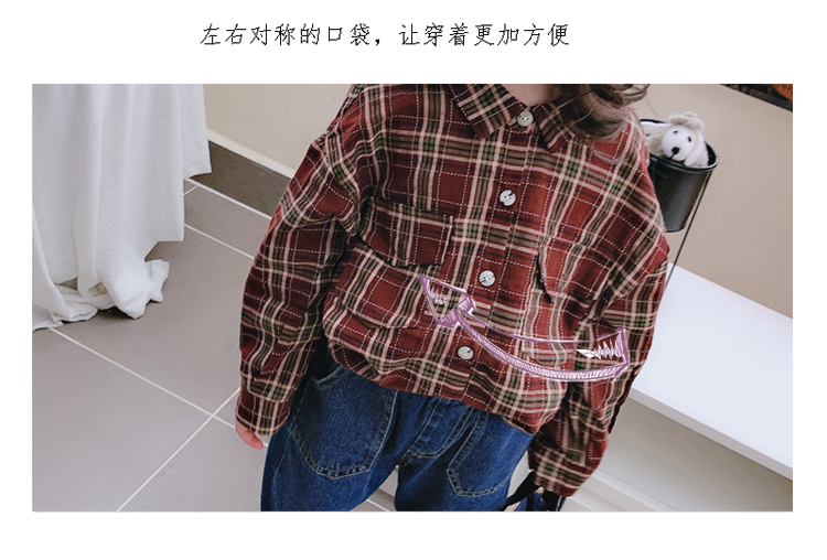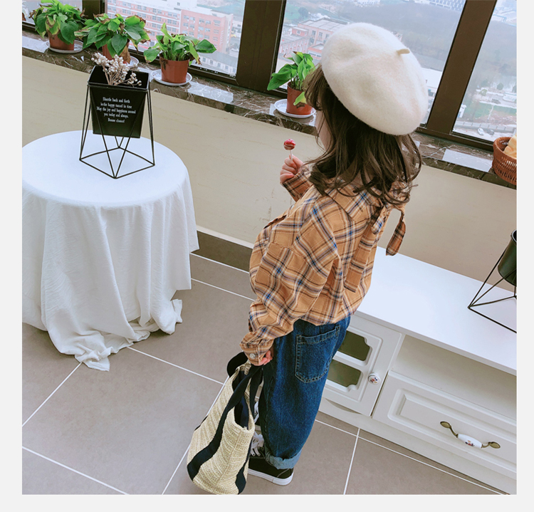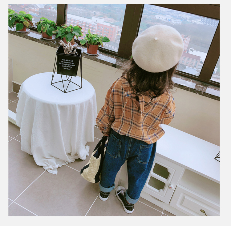2019童裝春秋裝格子背后蝴蝶結田園風兒童長袖襯衫女童寶寶襯衣1入