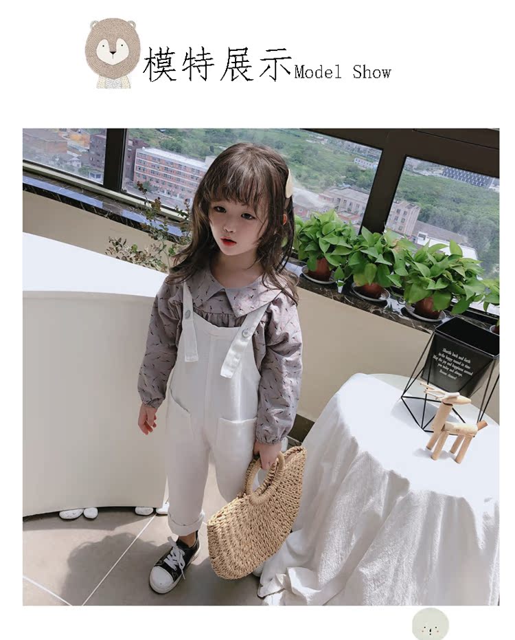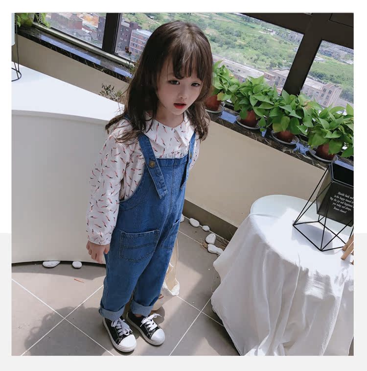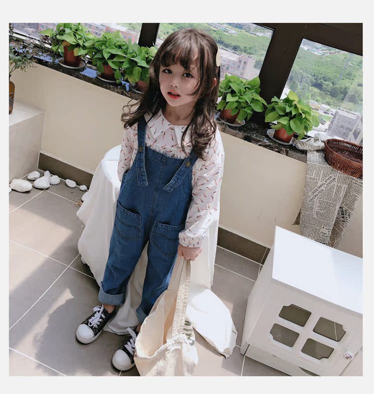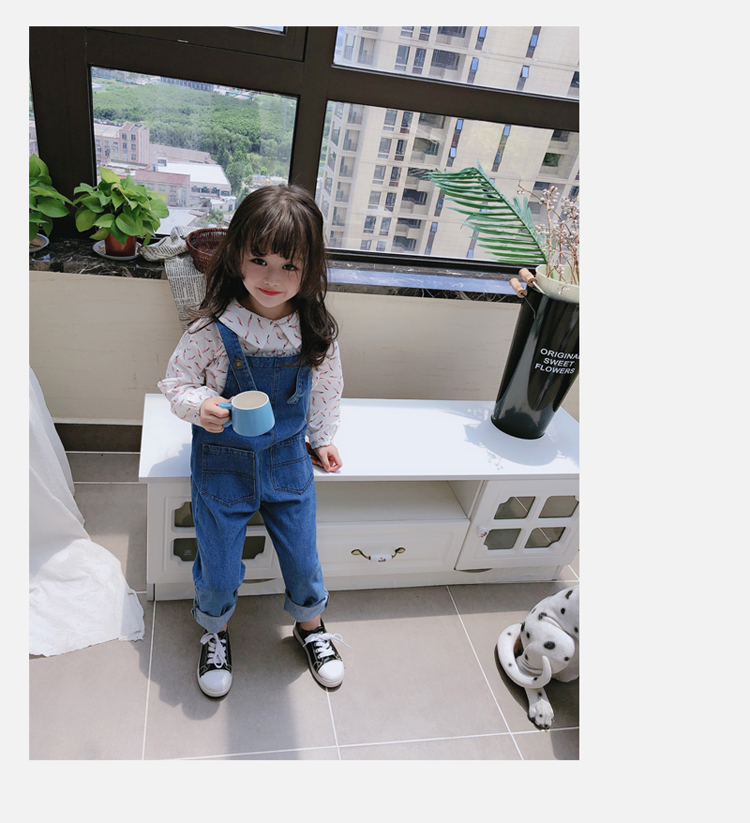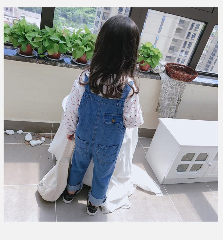 2019春秋季新款 男女童舒適百搭背帶褲 中小童個性帥氣純色牛仔褲1入