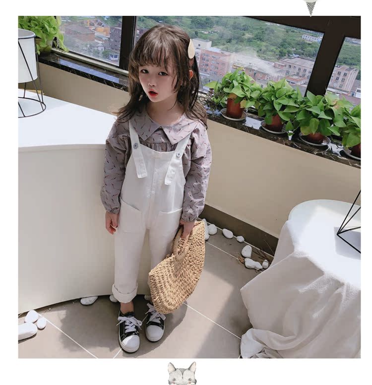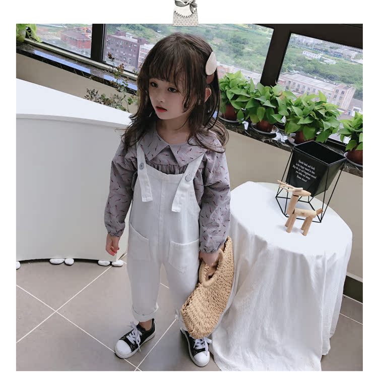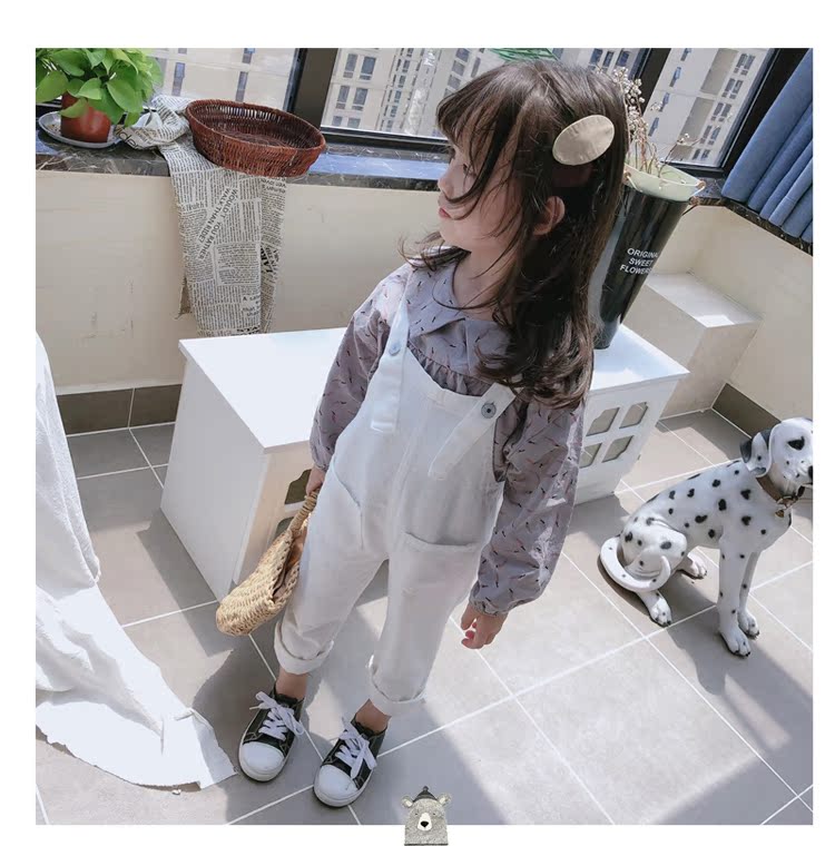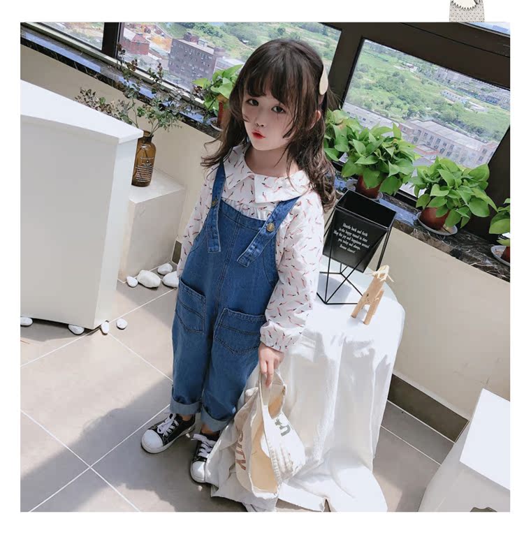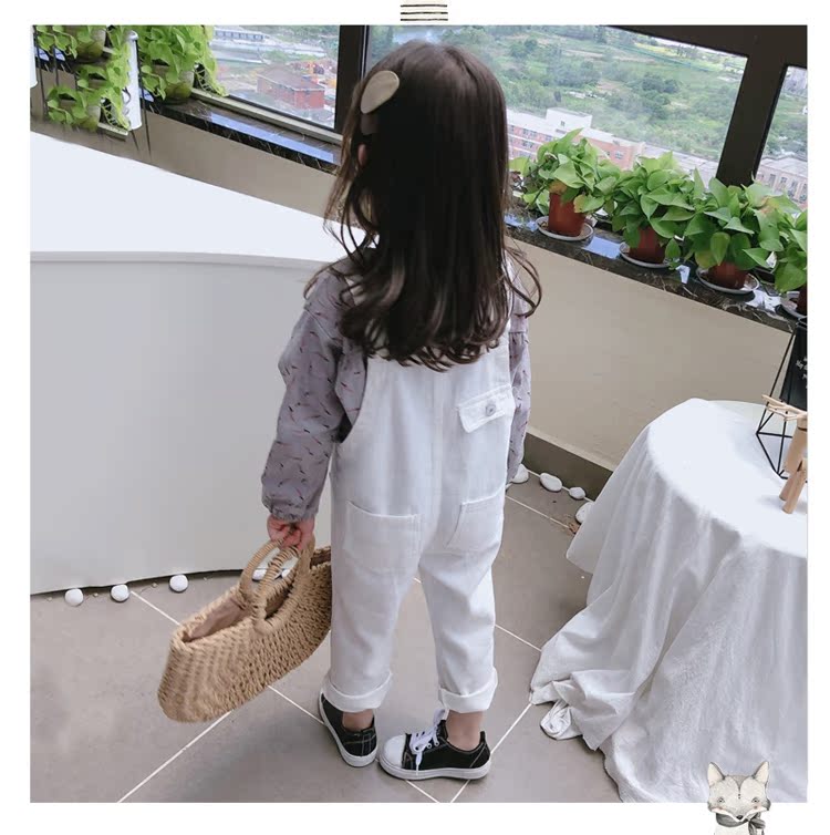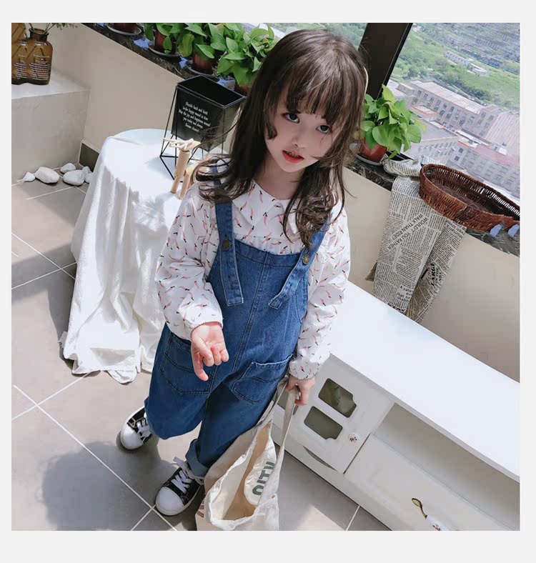2019春秋季新款 男女童舒適百搭背帶褲 中小童個性帥氣純色牛仔褲1入