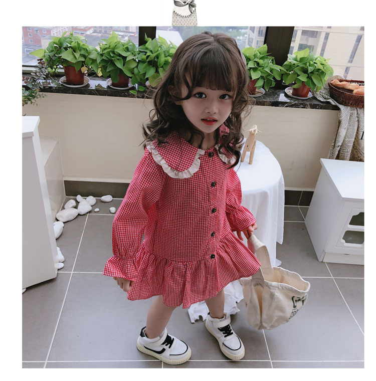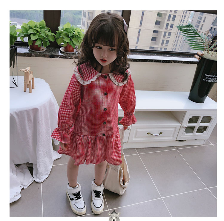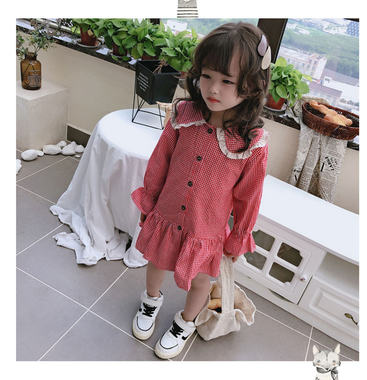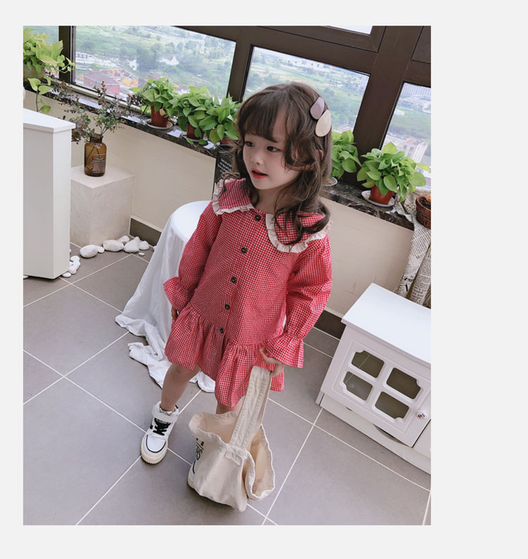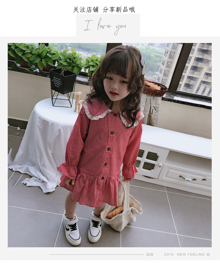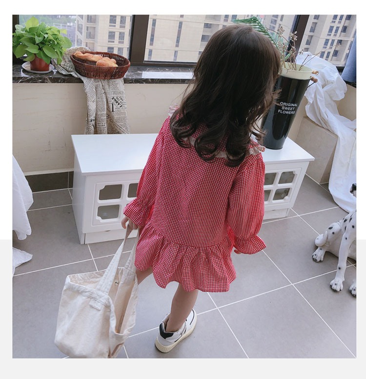 2019春秋季新款 女童可愛甜美細格子連衣裙 兒童個性洋氣翻領裙子1入