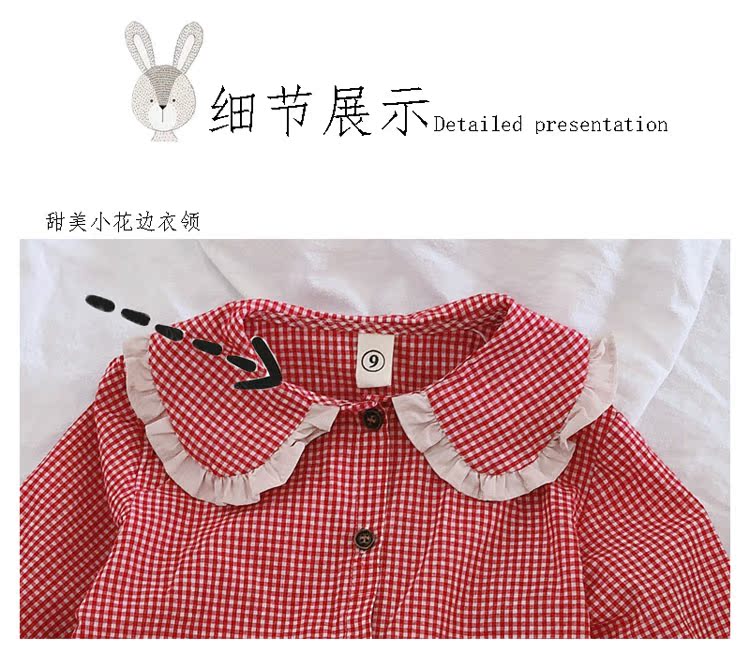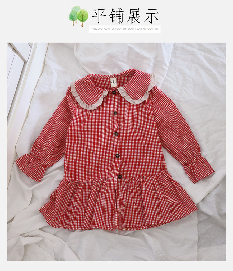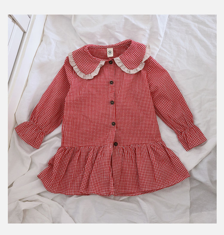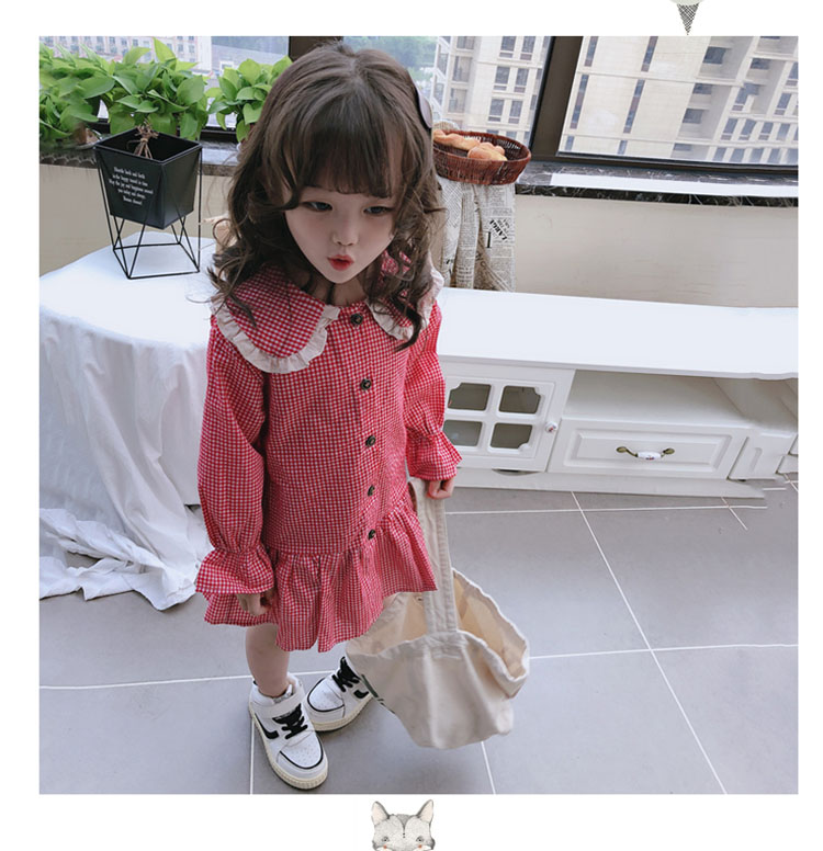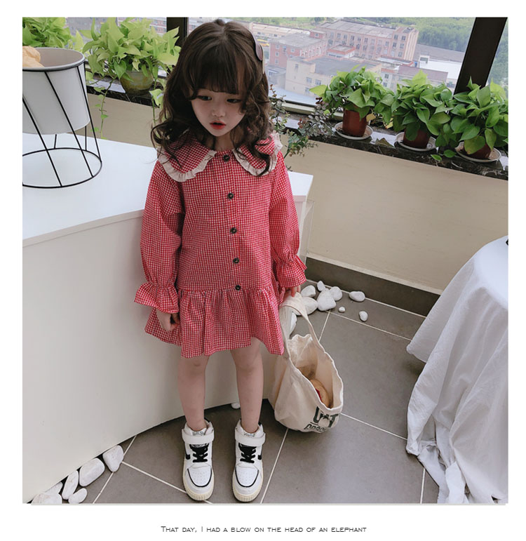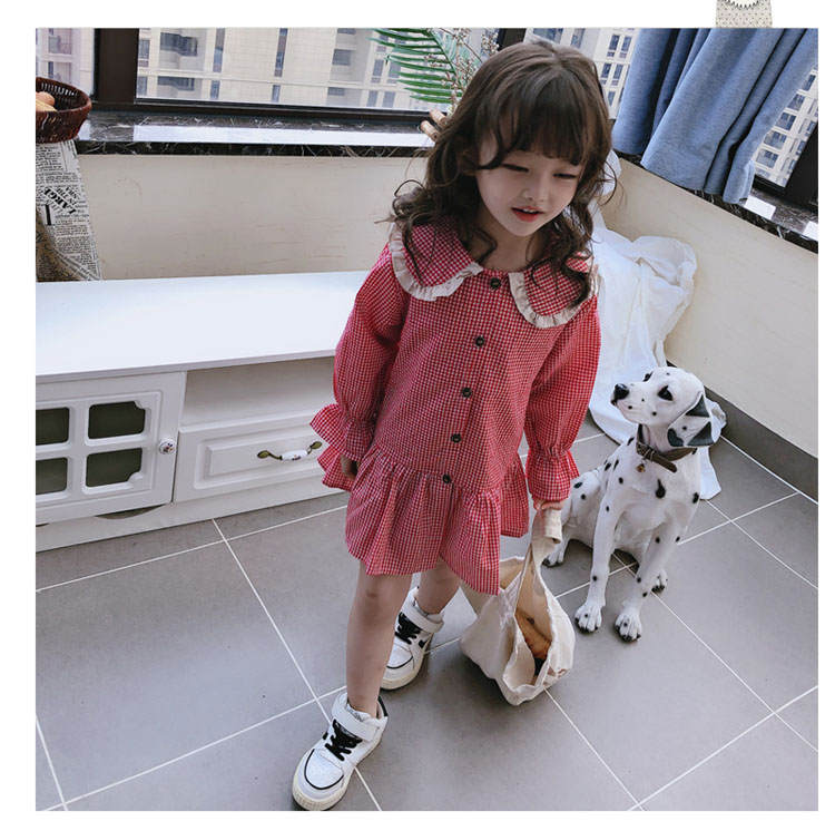 2019春秋季新款 女童可愛甜美細格子連衣裙 兒童個性洋氣翻領裙子1入