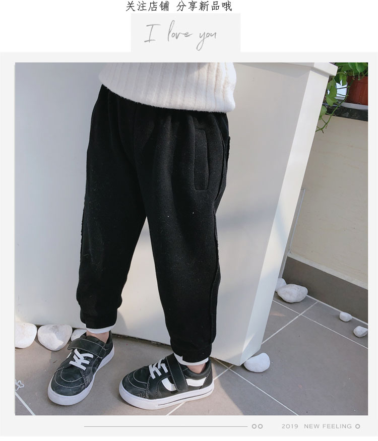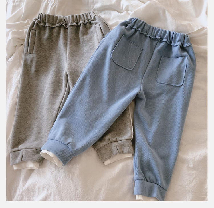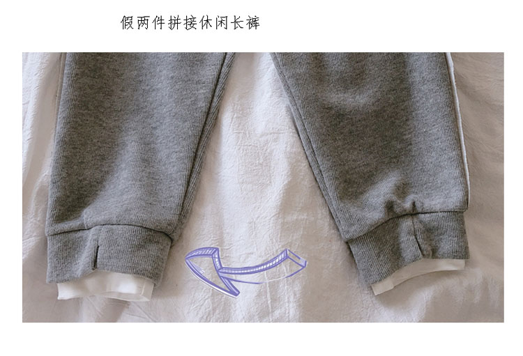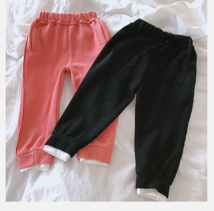 2019秋季新款 中小童運動風長褲 兒童松緊褲腰拼接假兩件休閑褲1入