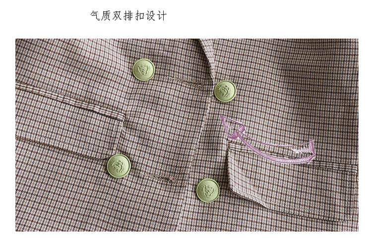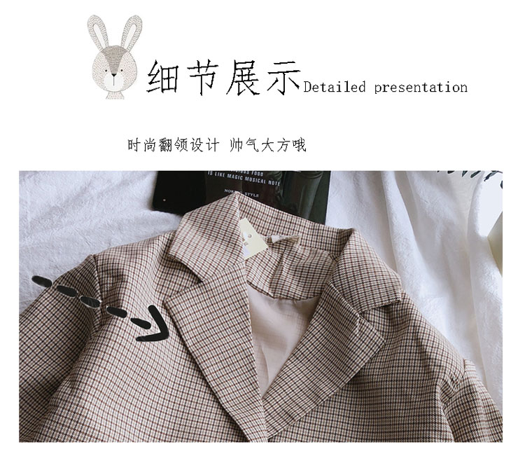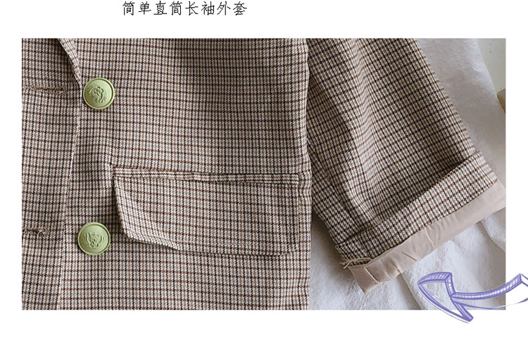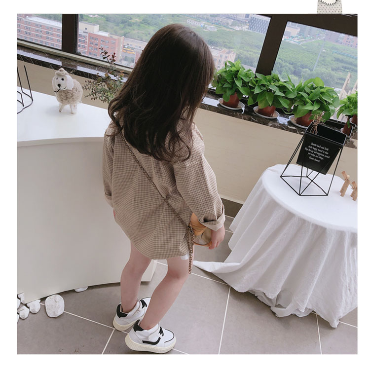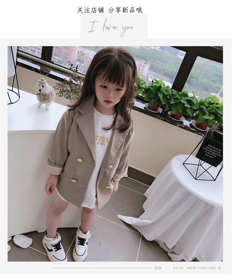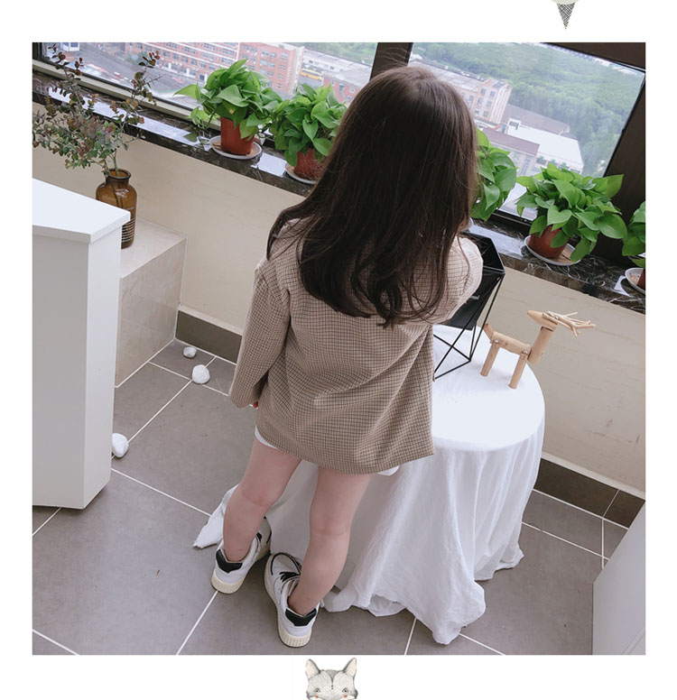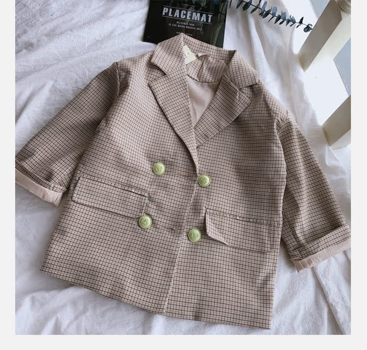 2019秋季新款 兒童雙排扣西裝上衣 女童寶寶細格子翻領中長款外套1入