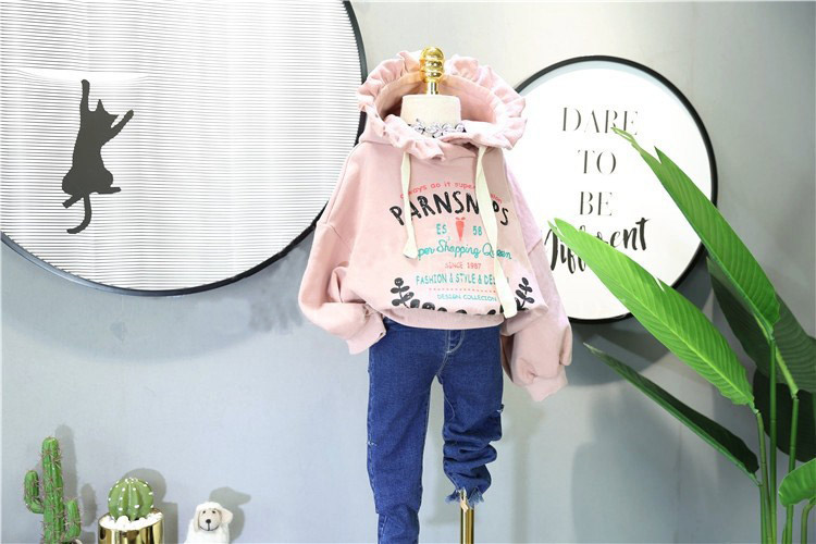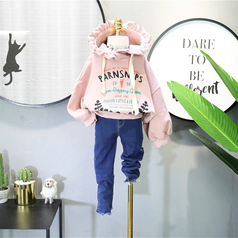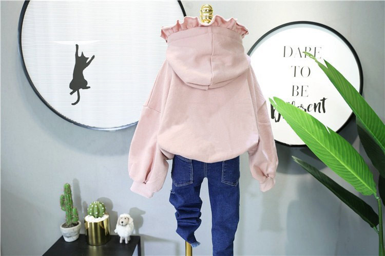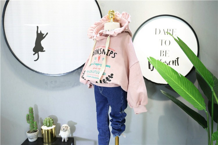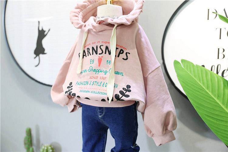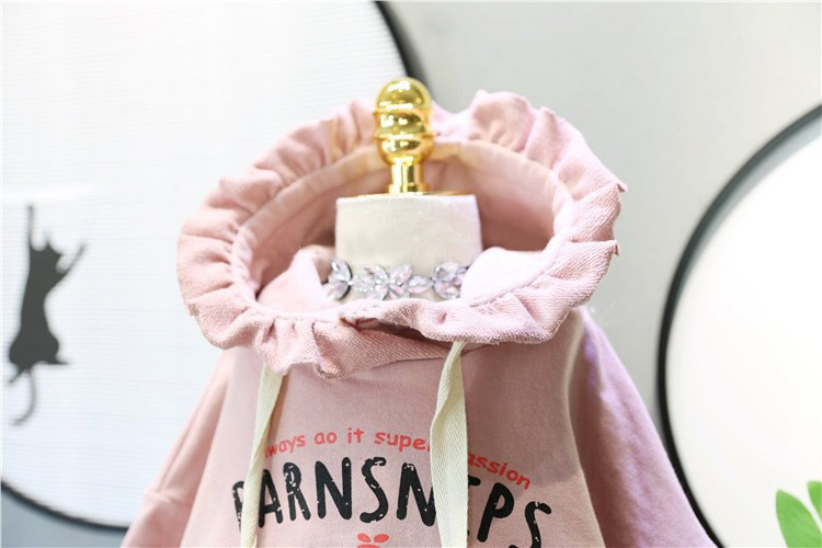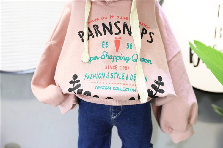 2018女童春秋季新品寬松連帽兒童上衣 童裝字母蝙蝠袖長袖衛衣1入