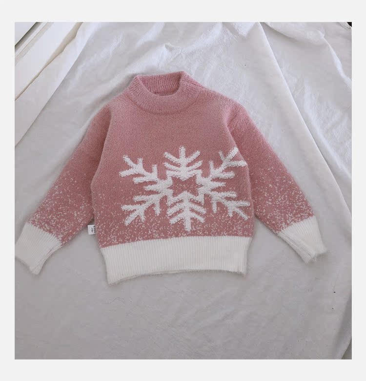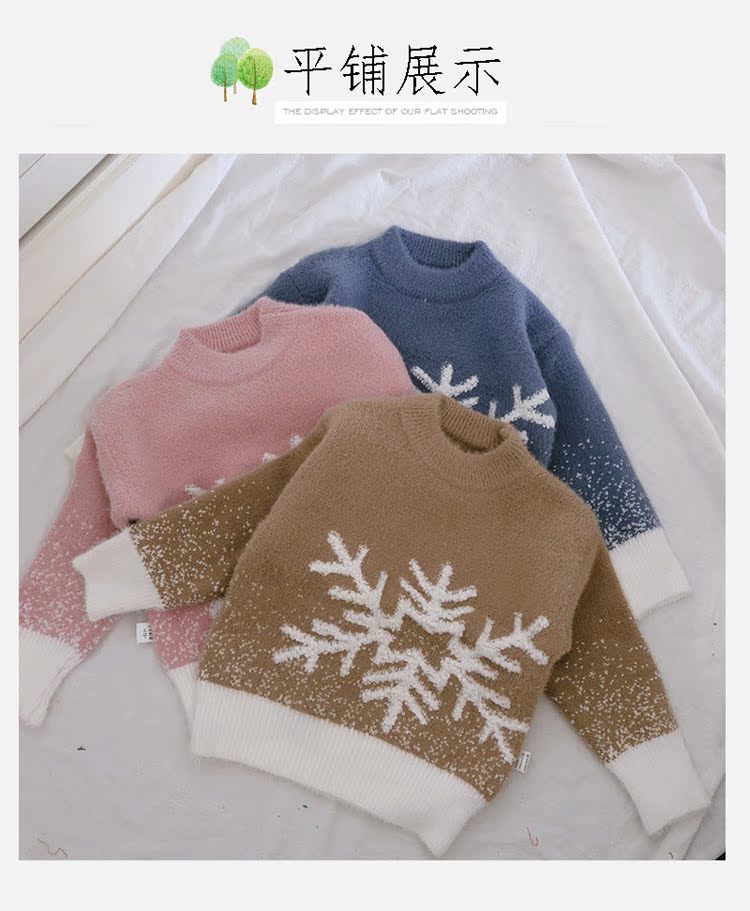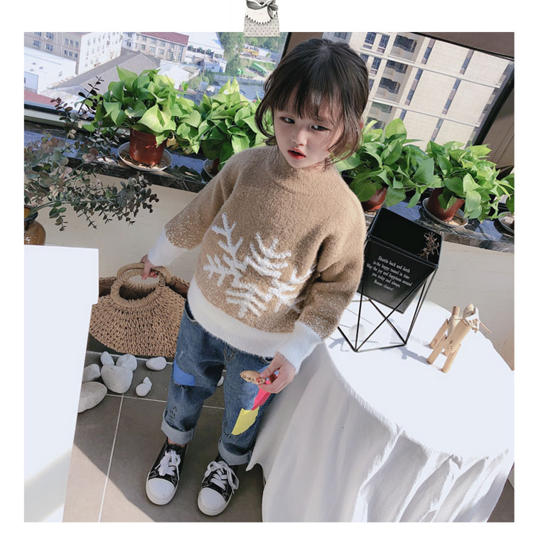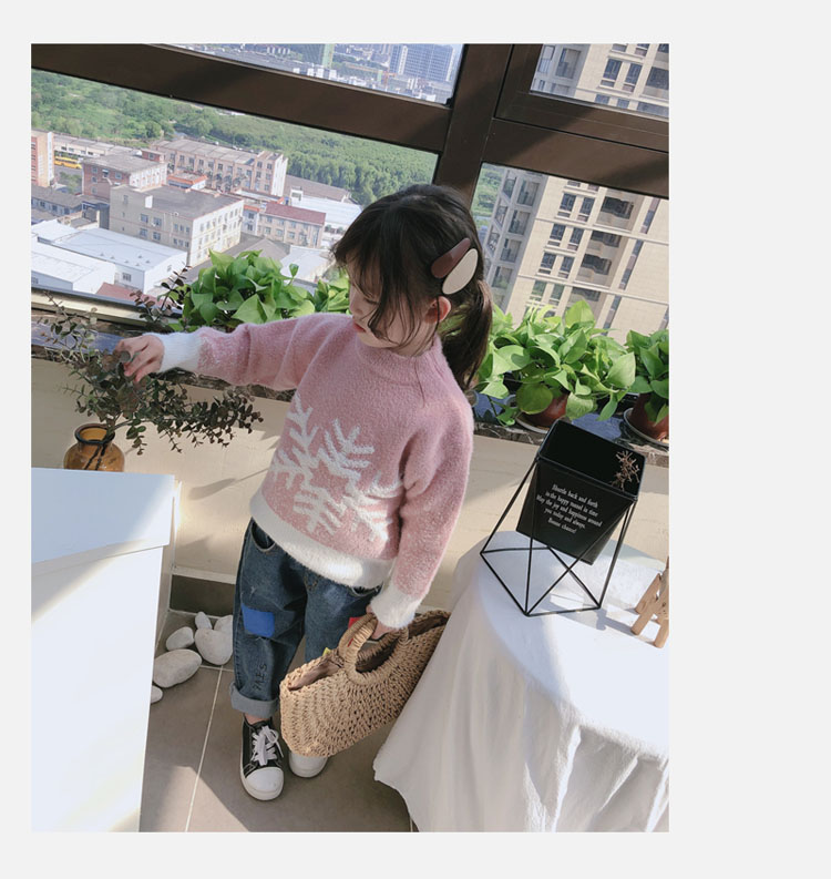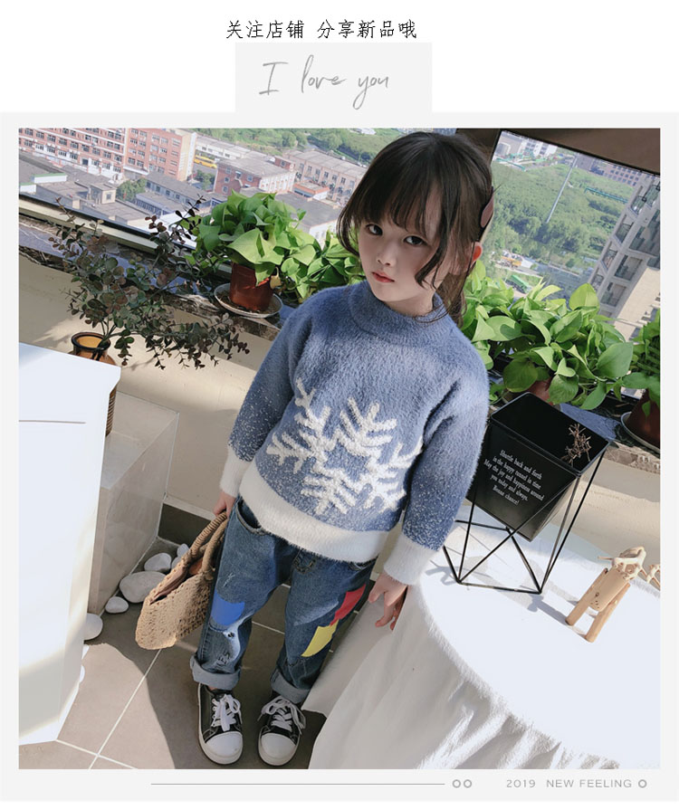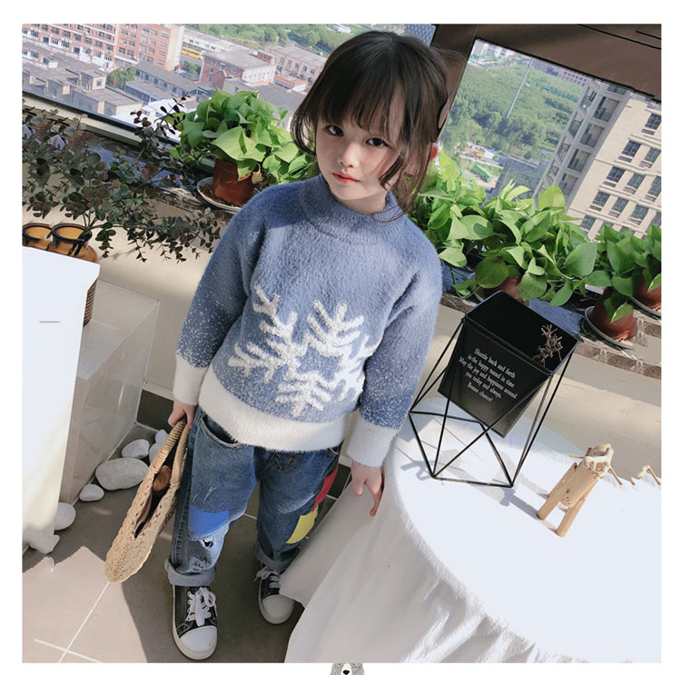 2019春秋新款 女童個性洋氣套頭毛衣 兒童可愛甜美雪花圖案針織衫1入