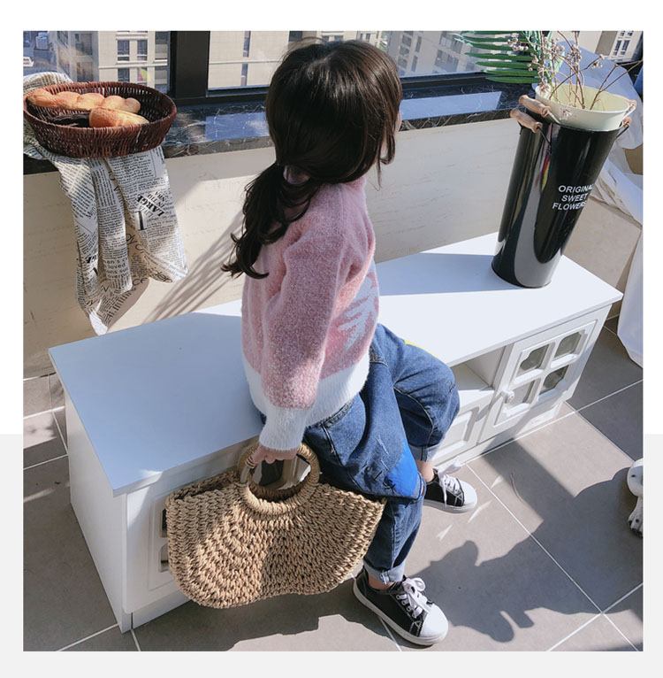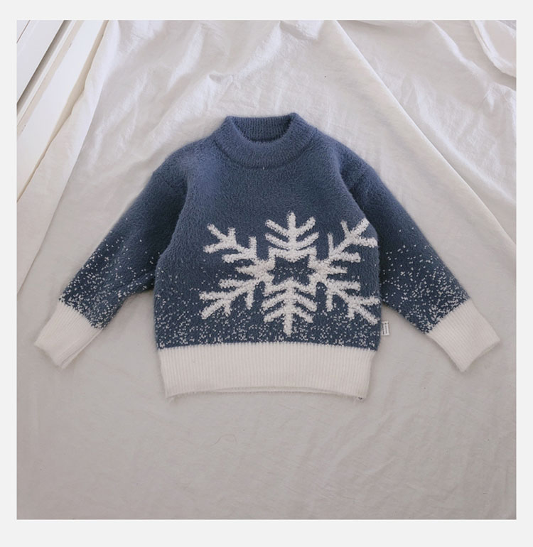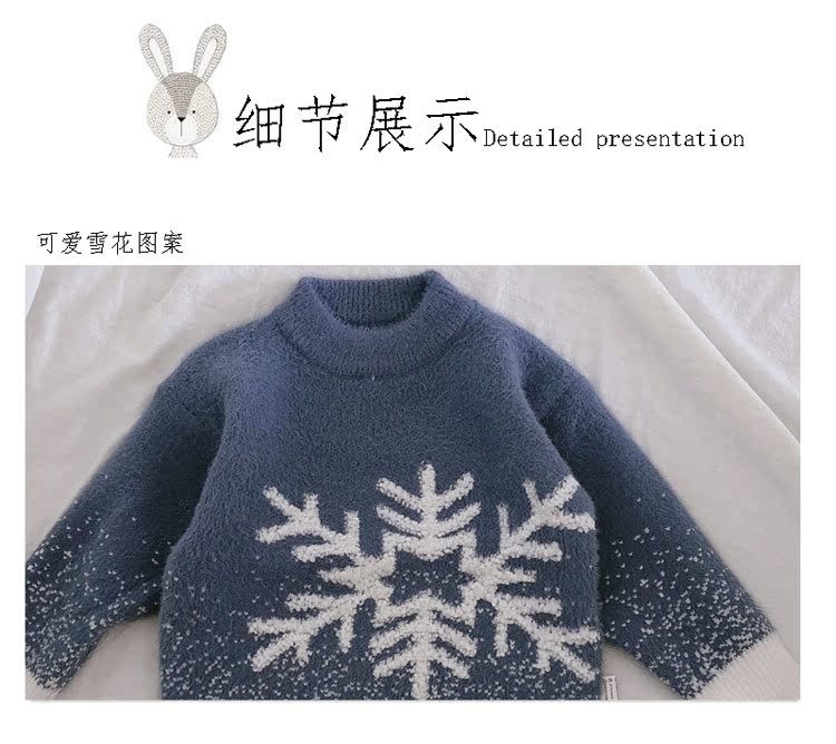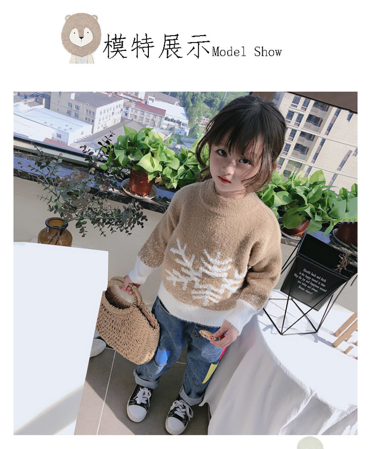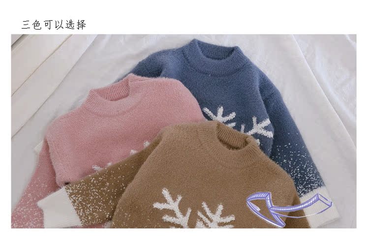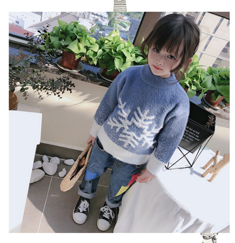 2019春秋新款 女童個性洋氣套頭毛衣 兒童可愛甜美雪花圖案針織衫1入