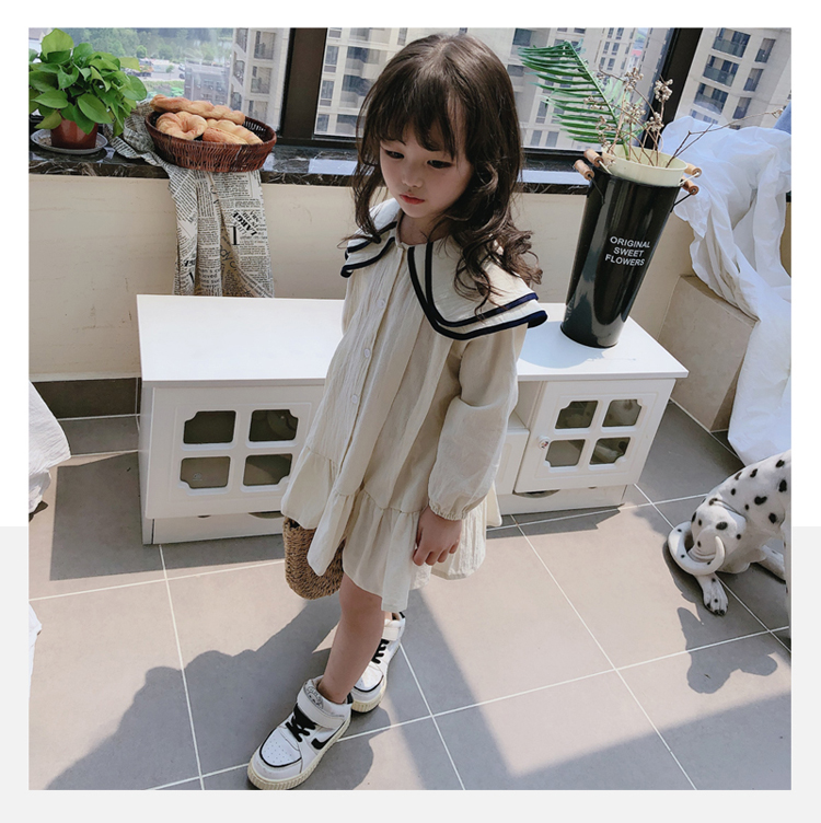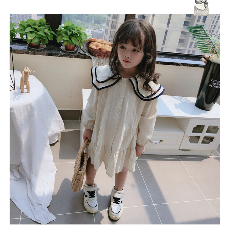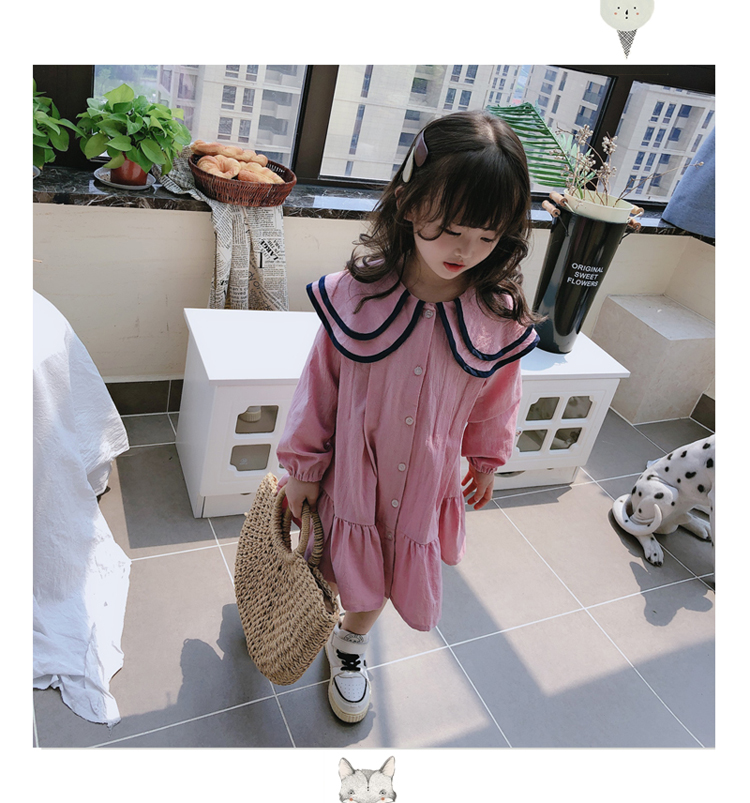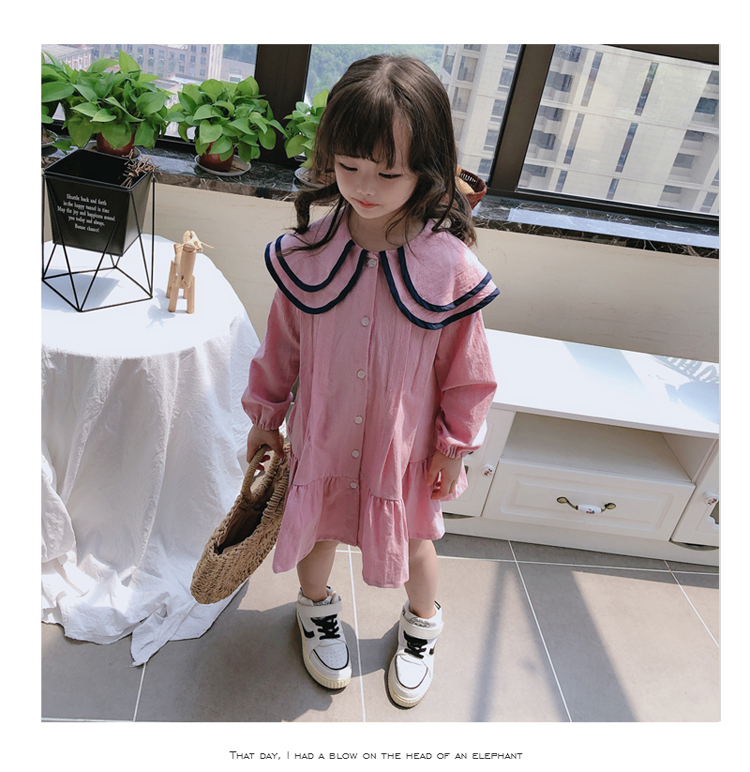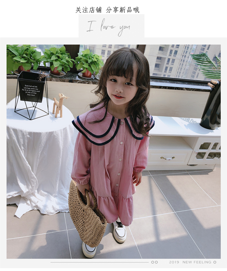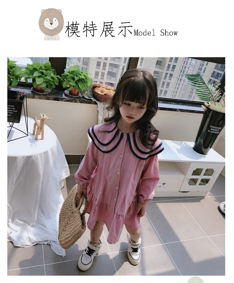 2019春秋季新款 女童氣質舒適裙子 中小童個性洋氣雙層翻領連衣裙1入