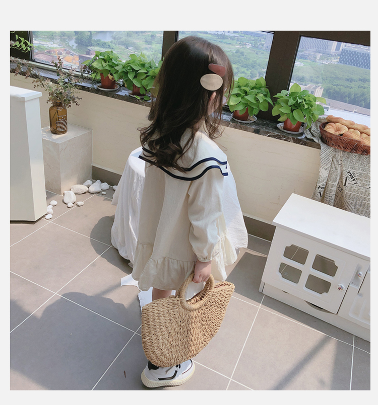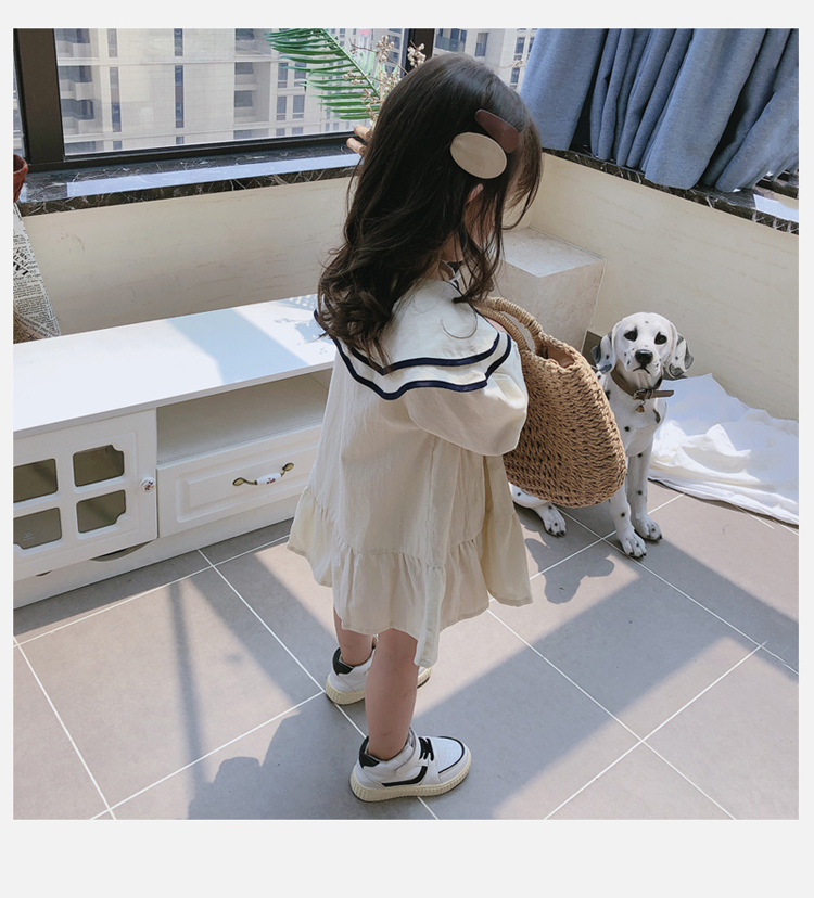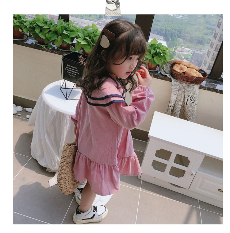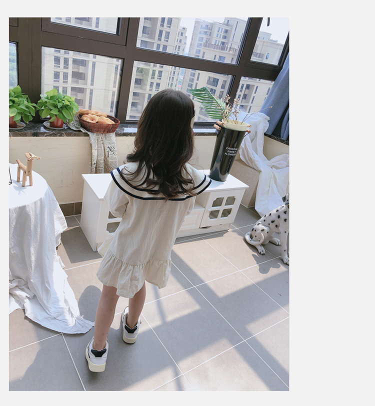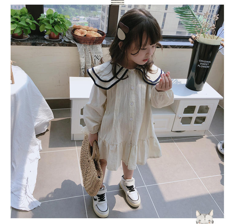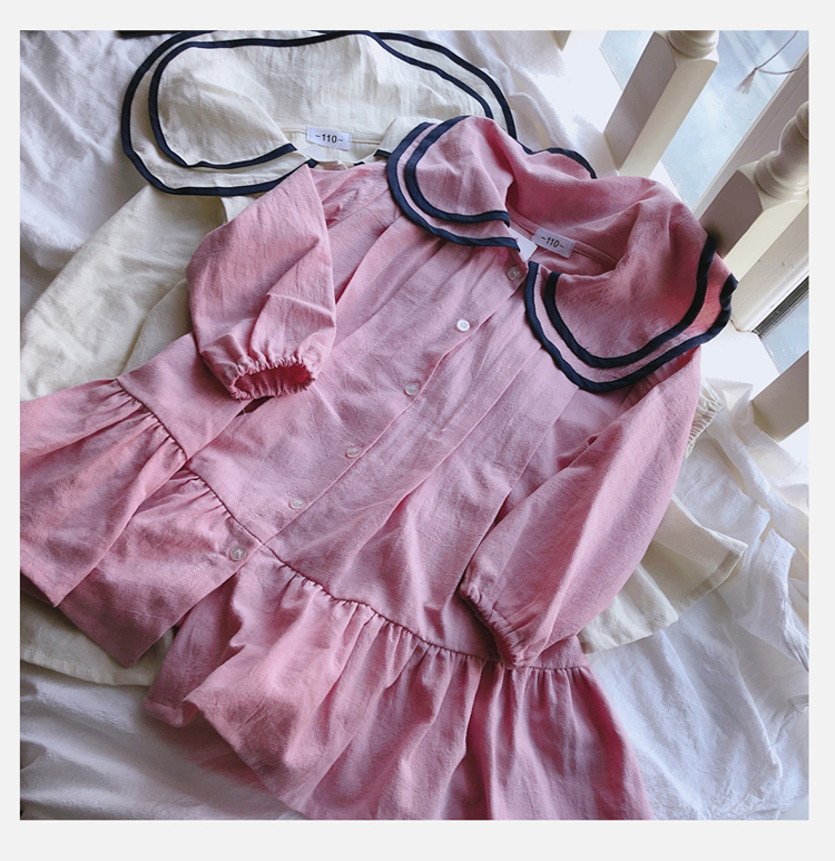 2019春秋季新款 女童氣質舒適裙子 中小童個性洋氣雙層翻領連衣裙1入