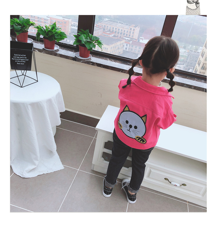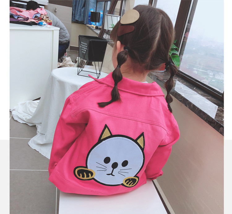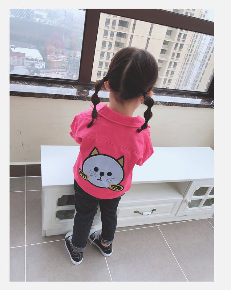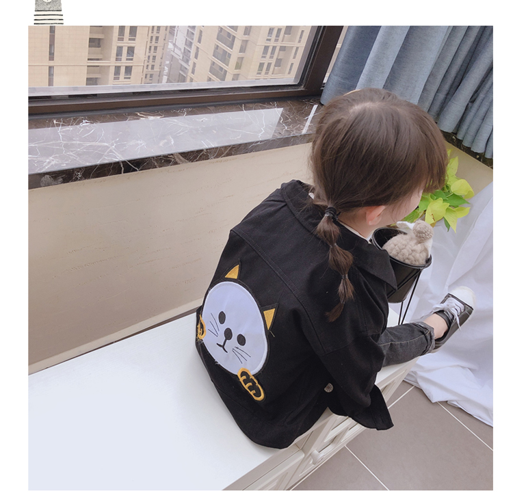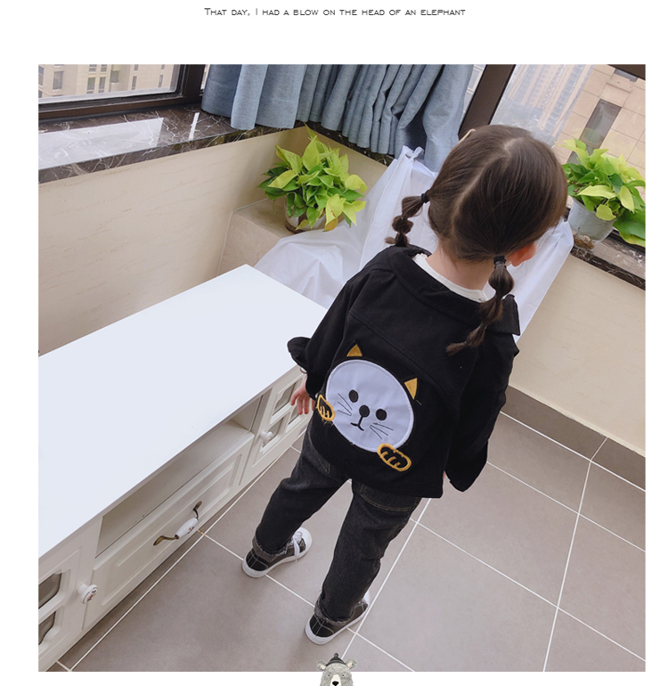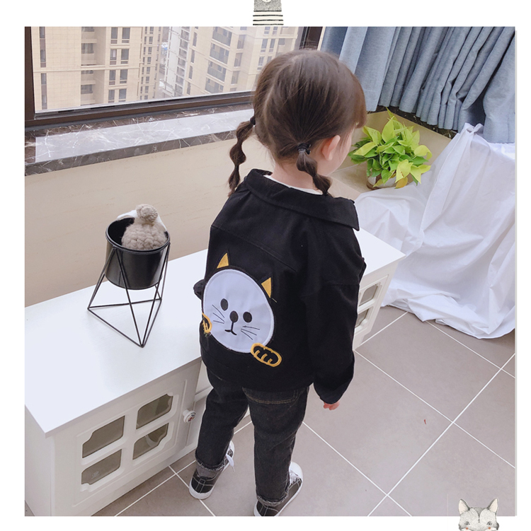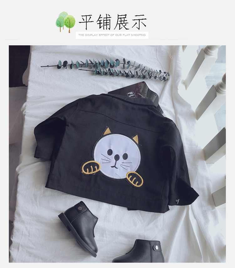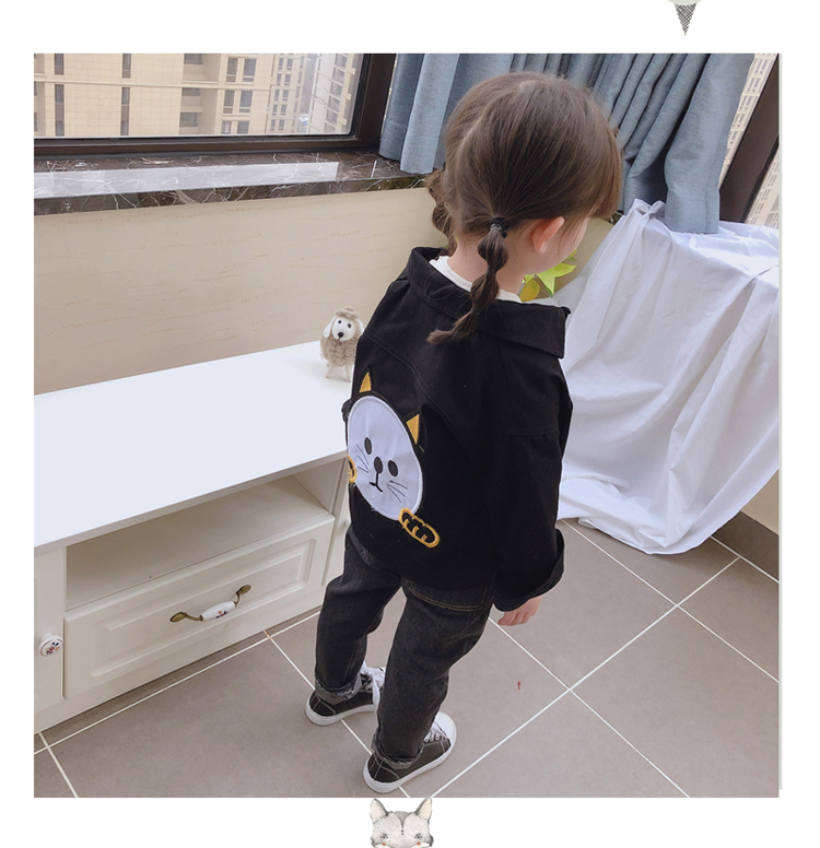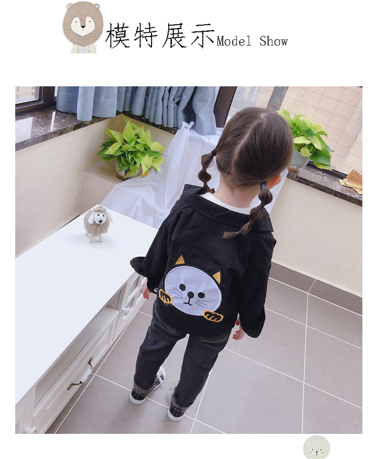 2019童裝春秋季兒童開衫上衣 翻領甜美貓咪男女童寶寶牛仔外套1入