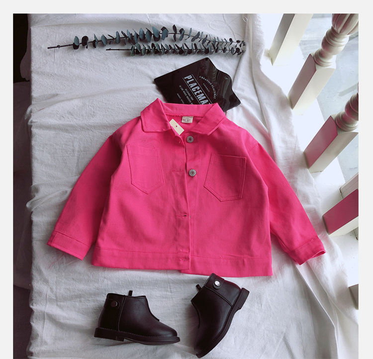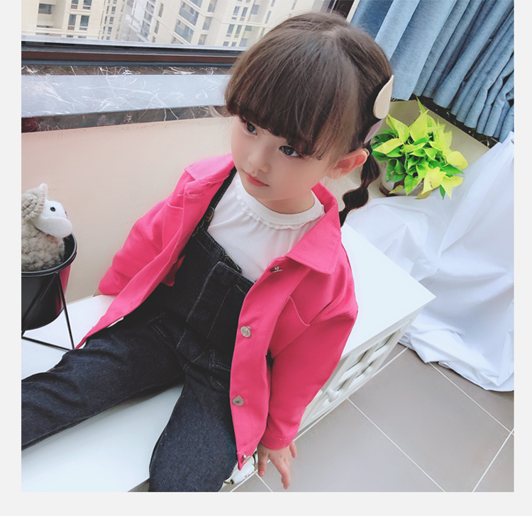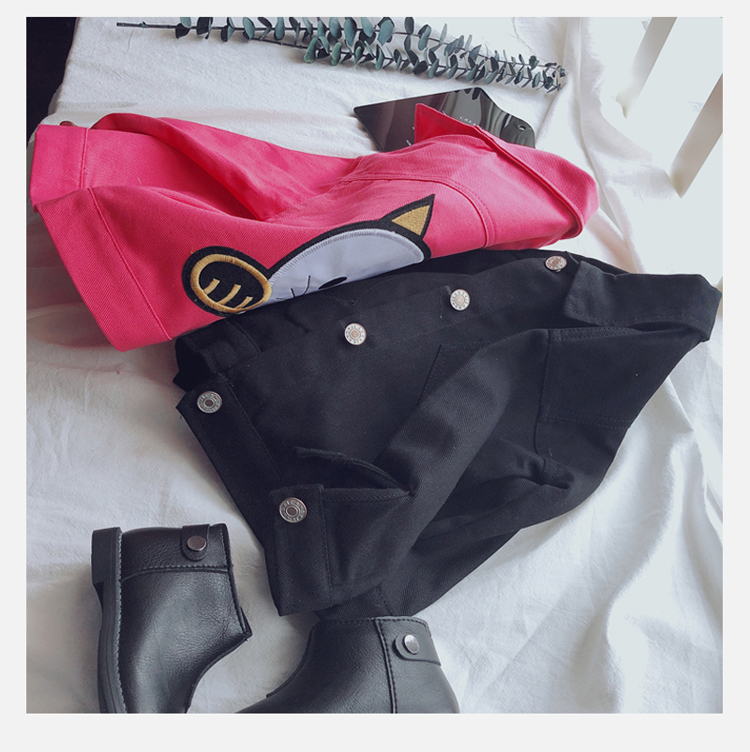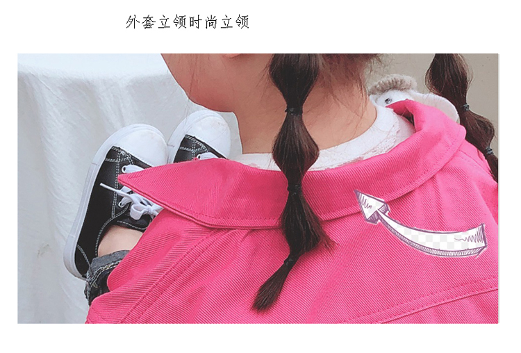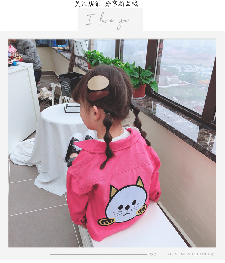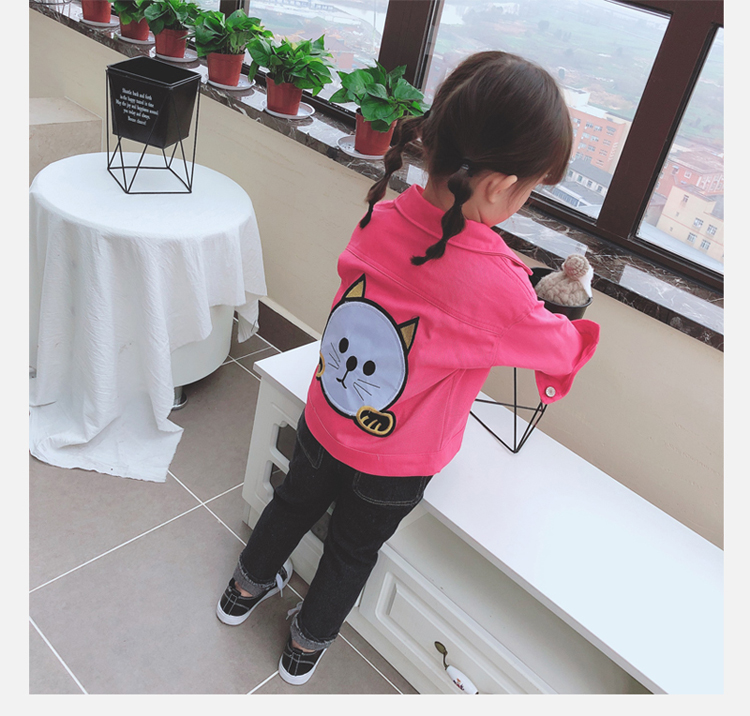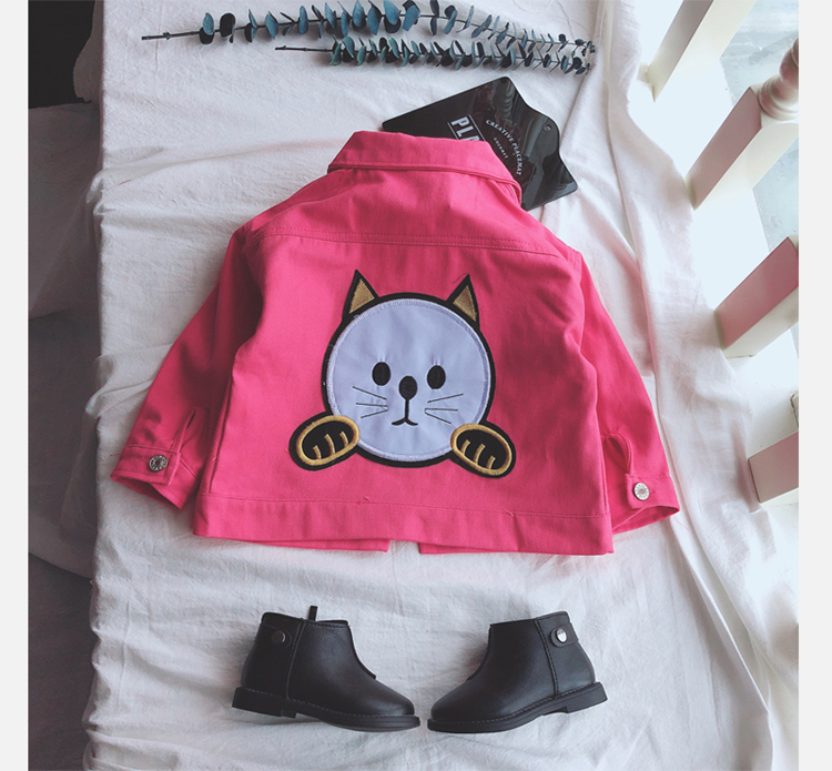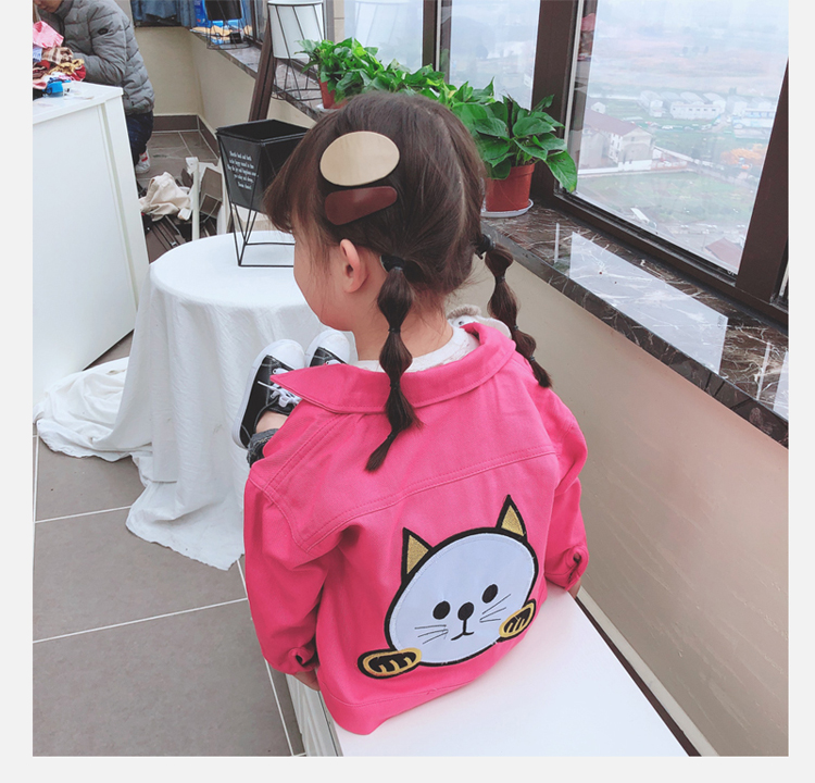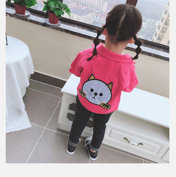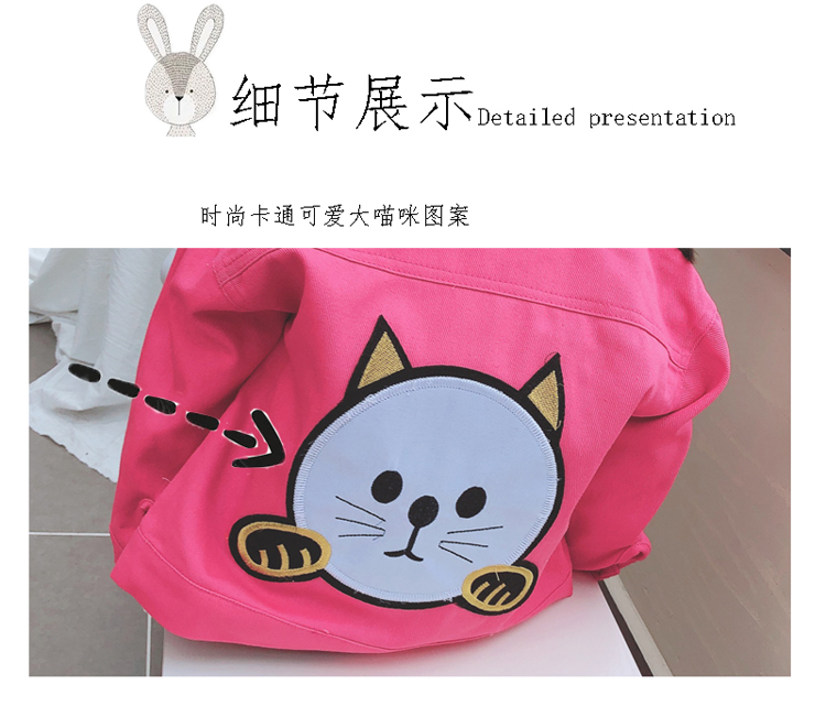 2019童裝春秋季兒童開衫上衣 翻領甜美貓咪男女童寶寶牛仔外套1入