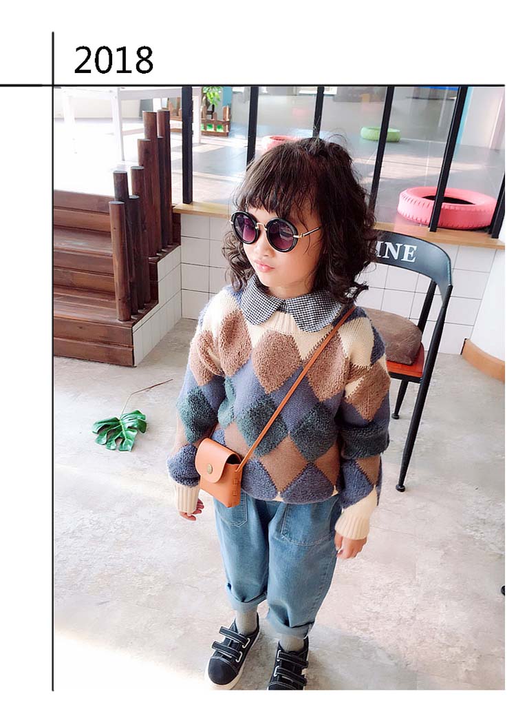 雙層加絨加厚女童冬裝2018寬松長袖套頭上衣 寶寶舒適兒童毛衣1入