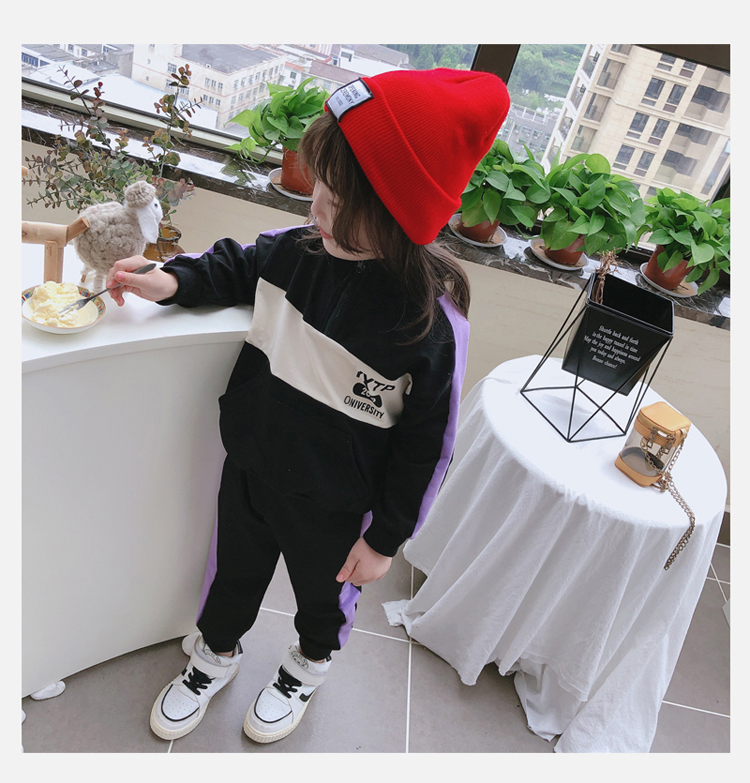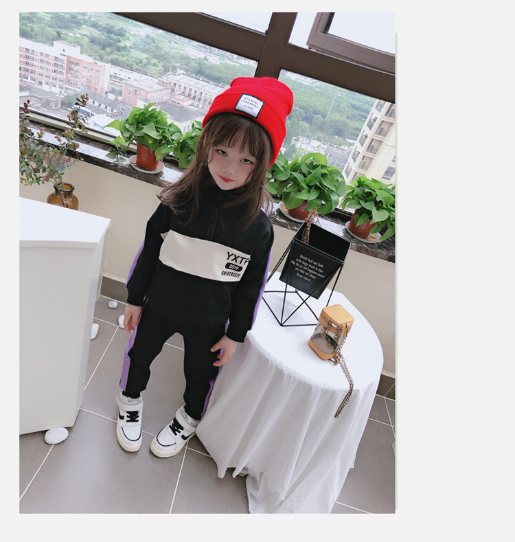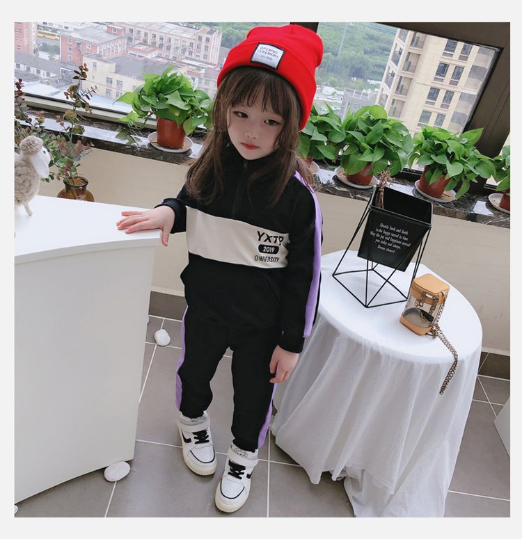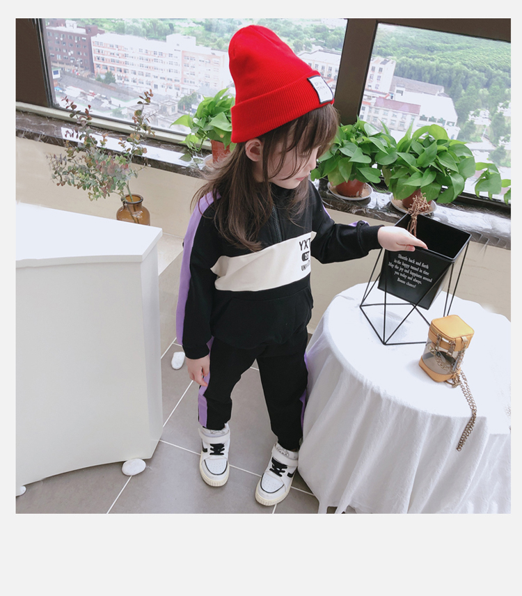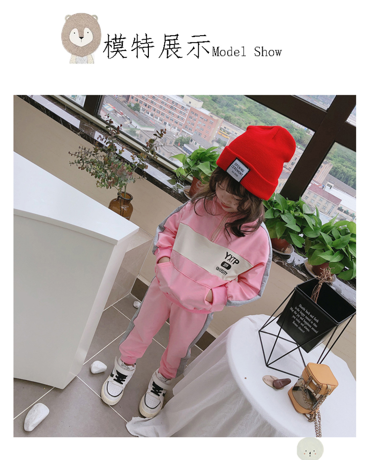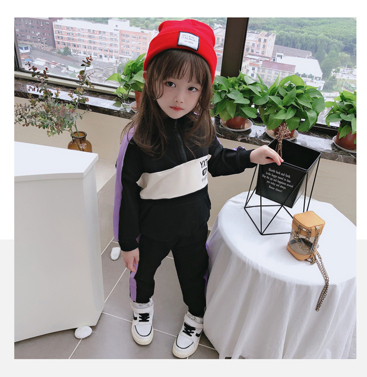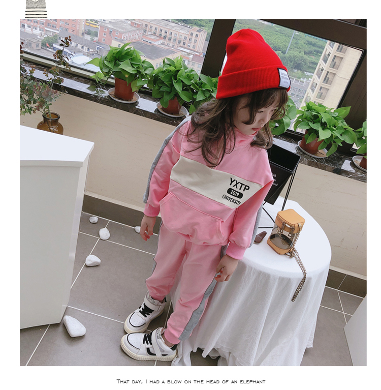 2019秋季新款兒童套裝 女童寶寶圓領撞色舒適上衣+長褲兩件套1入