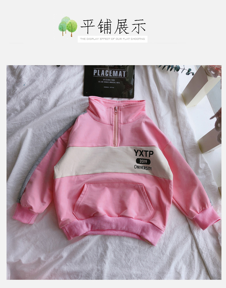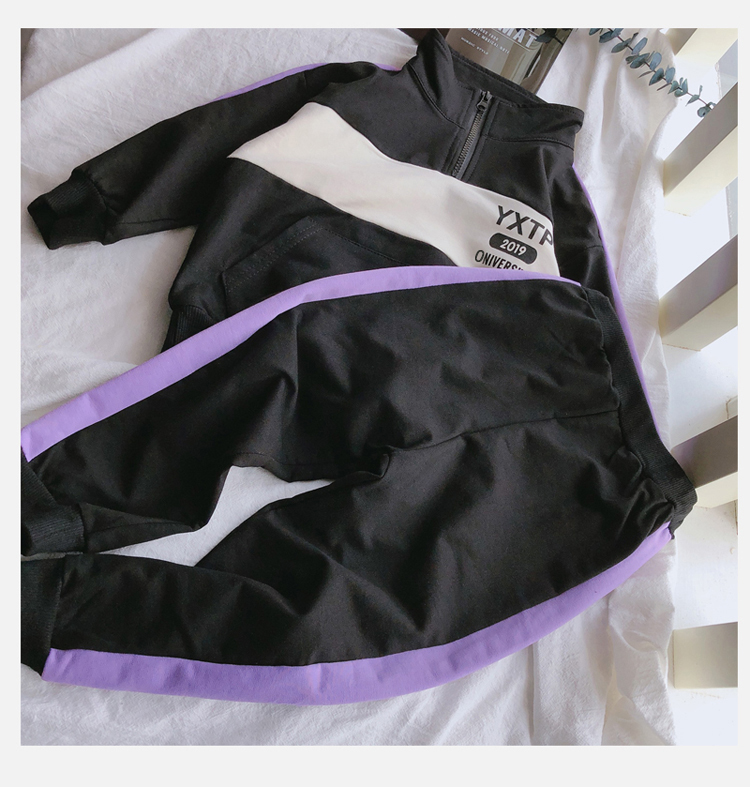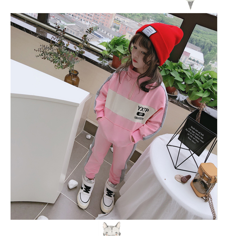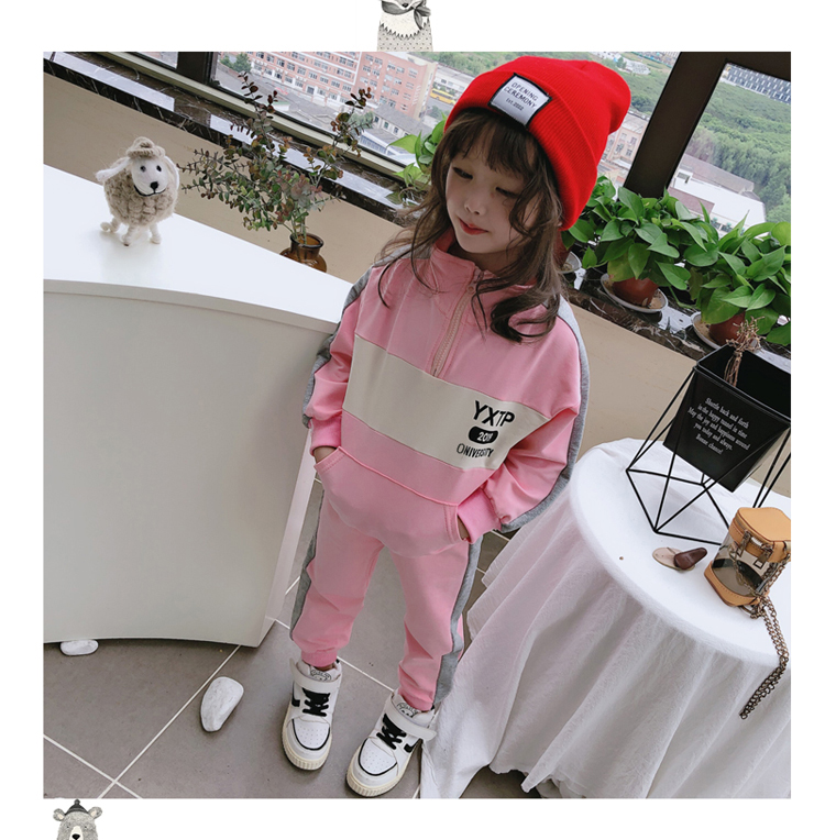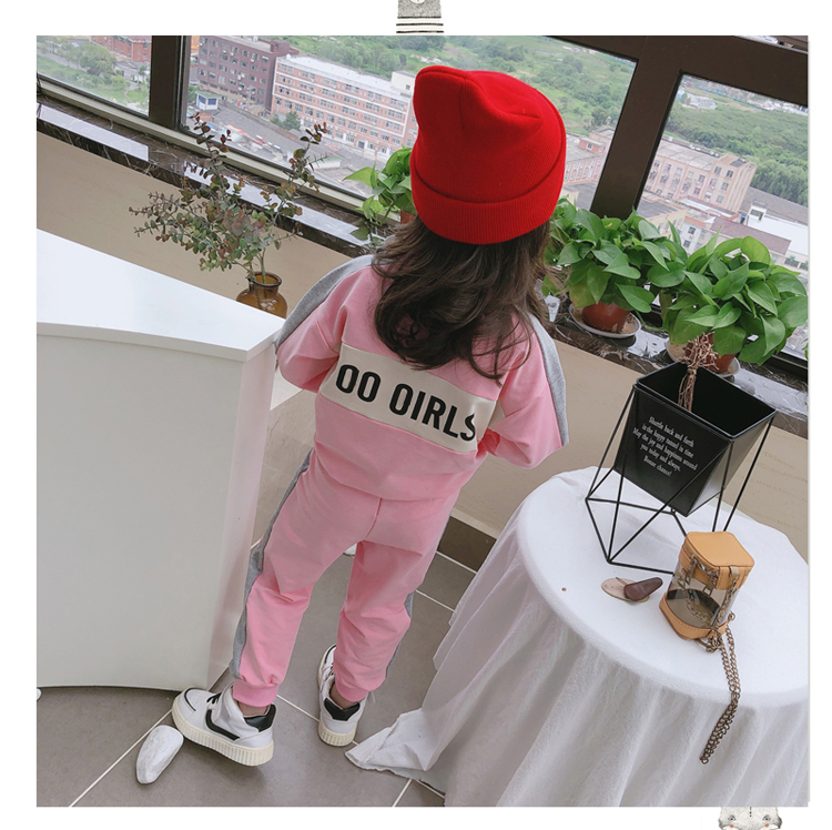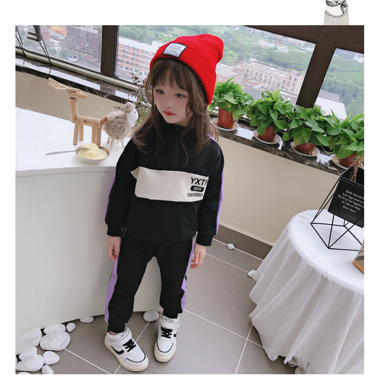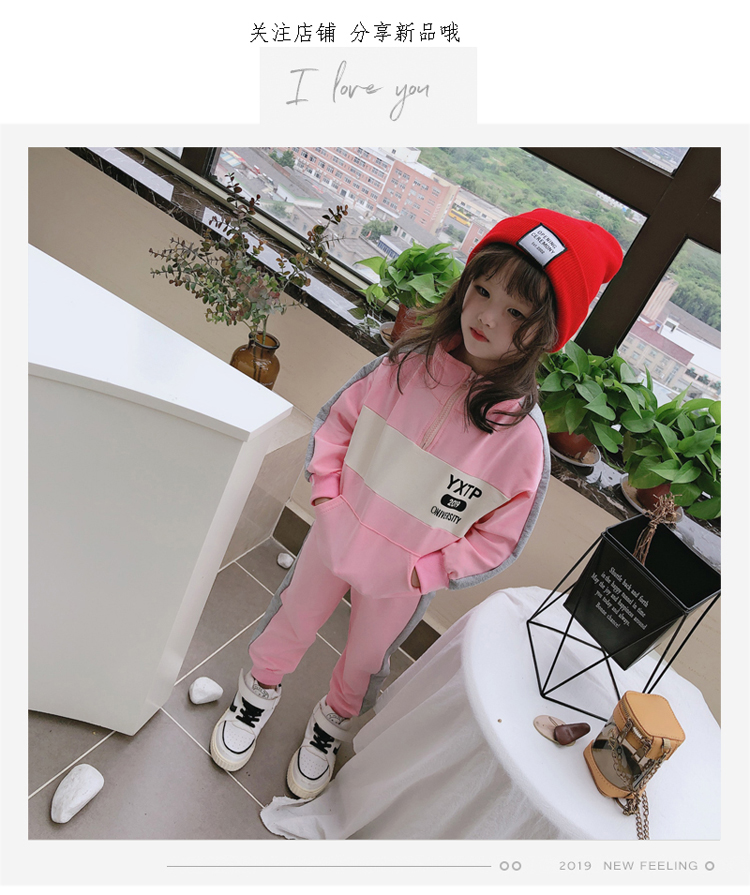 2019秋季新款兒童套裝 女童寶寶圓領撞色舒適上衣+長褲兩件套1入