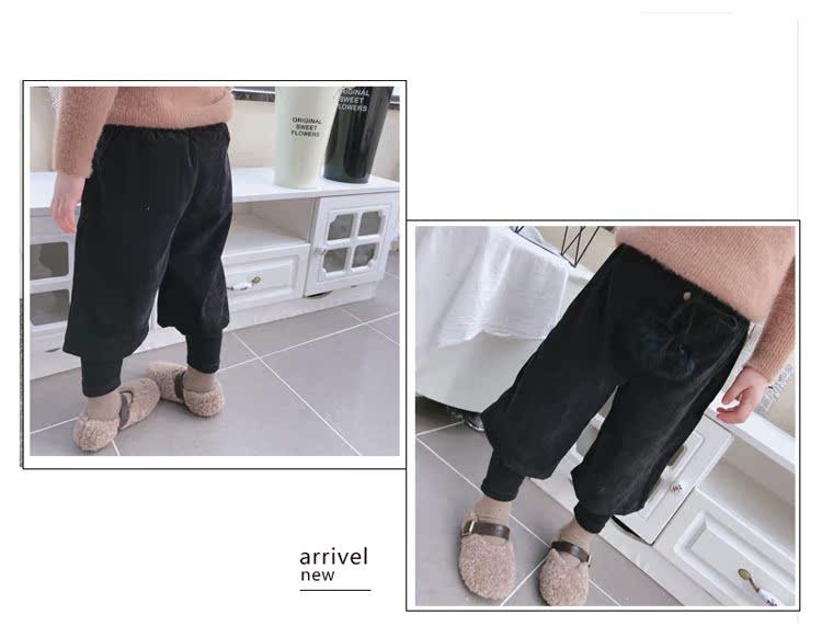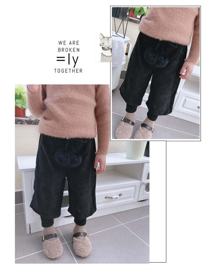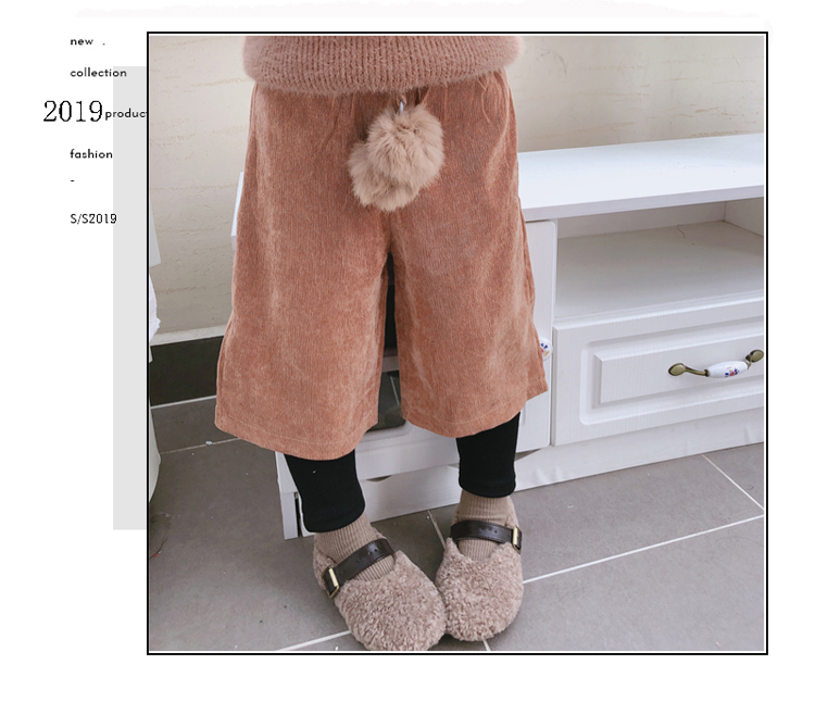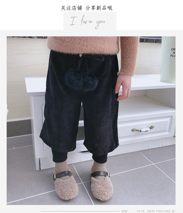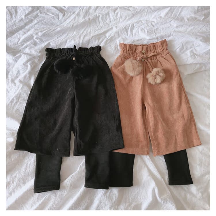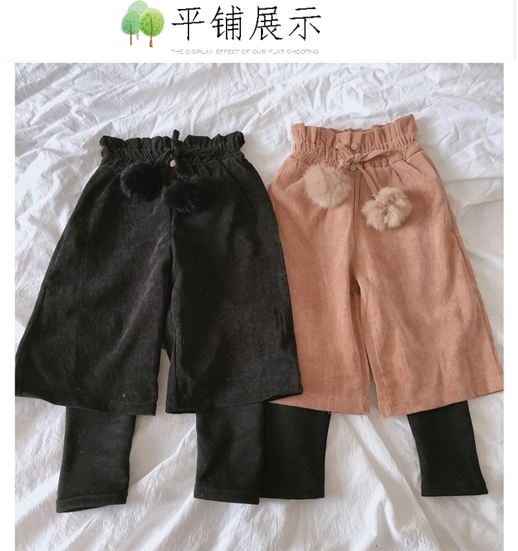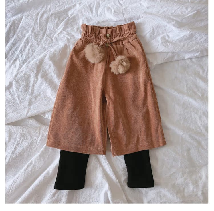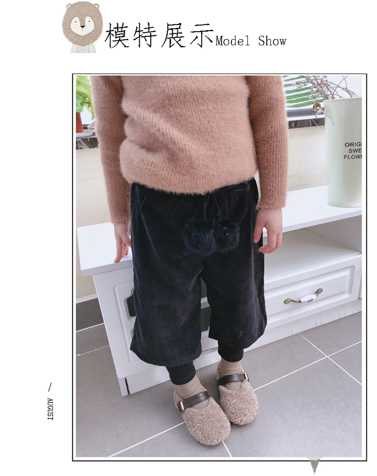 2019秋冬季新款 中小童氣質舒適童褲 女童燈芯絨毛球假兩件靴褲1入