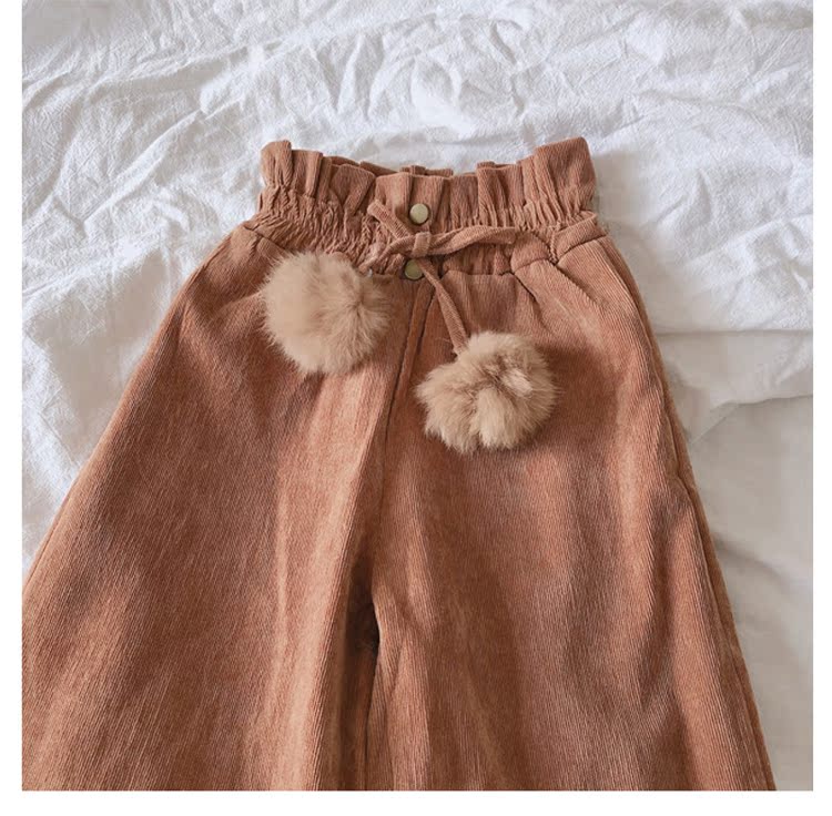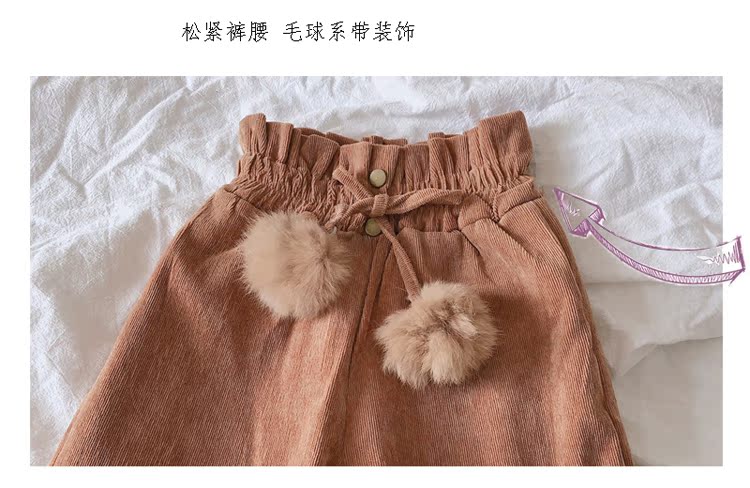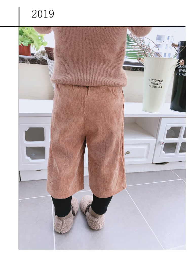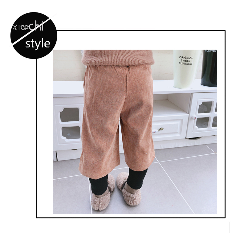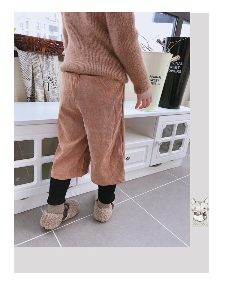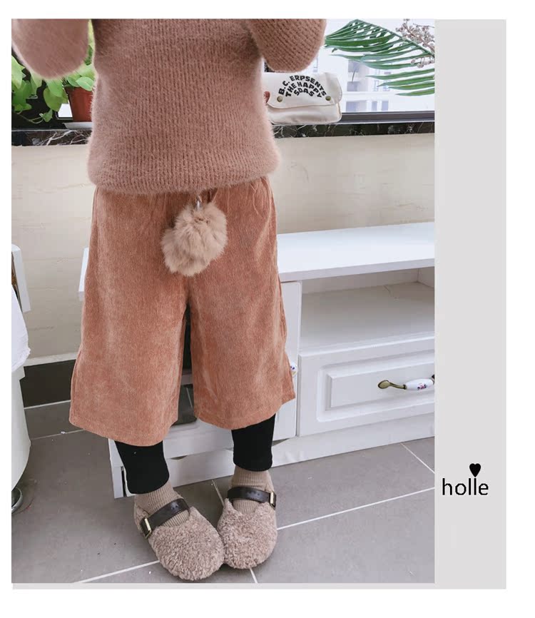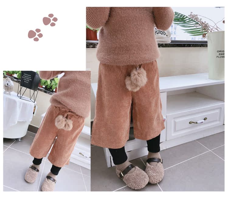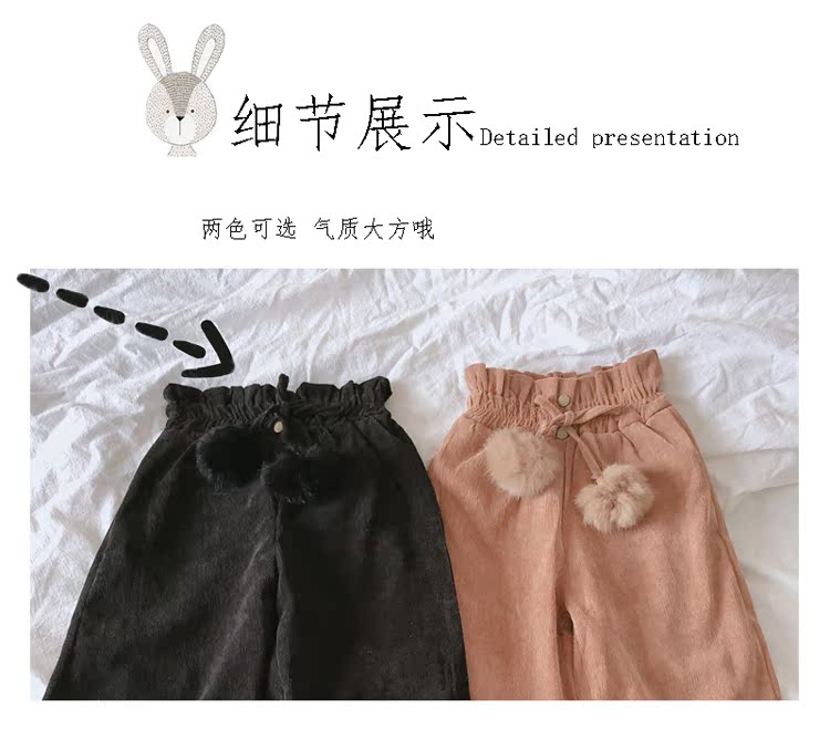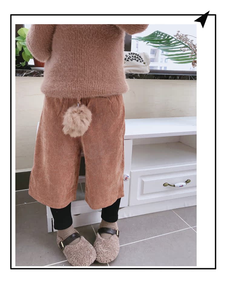 2019秋冬季新款 中小童氣質舒適童褲 女童燈芯絨毛球假兩件靴褲1入