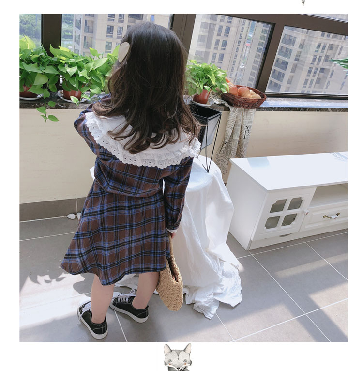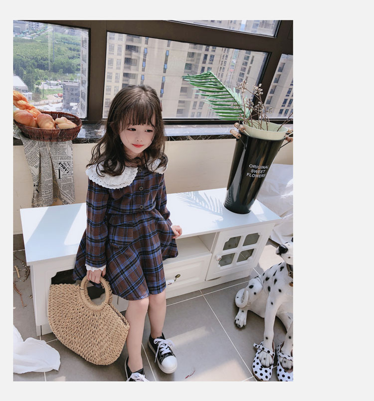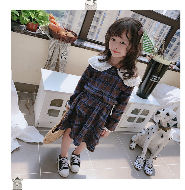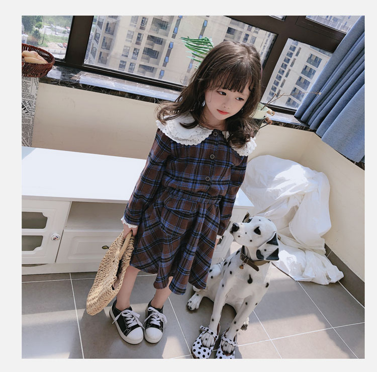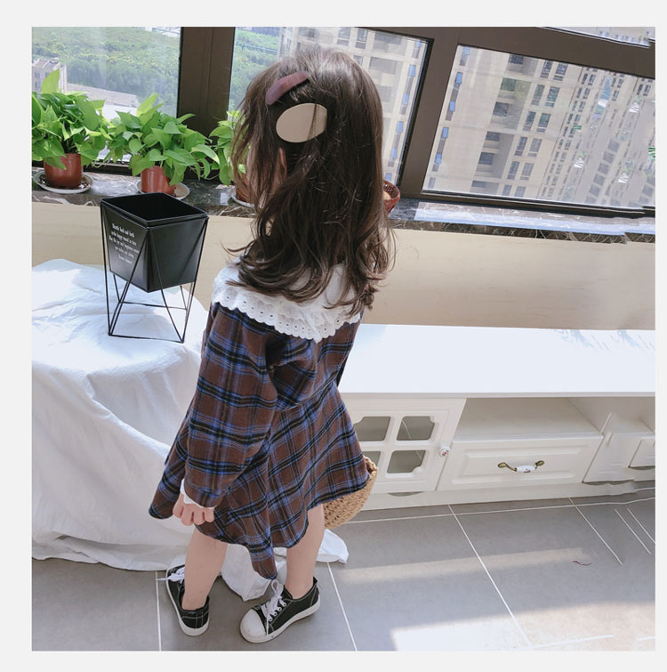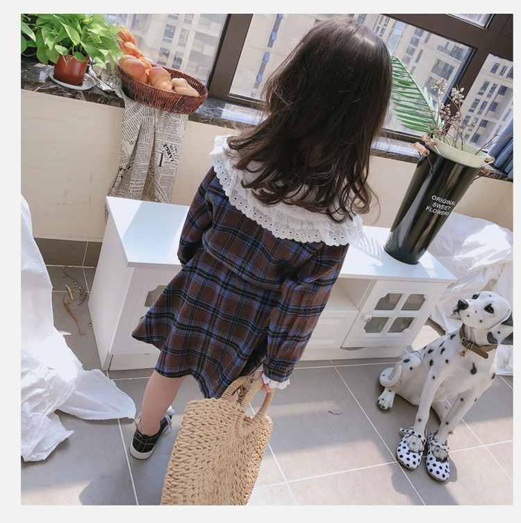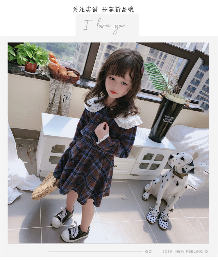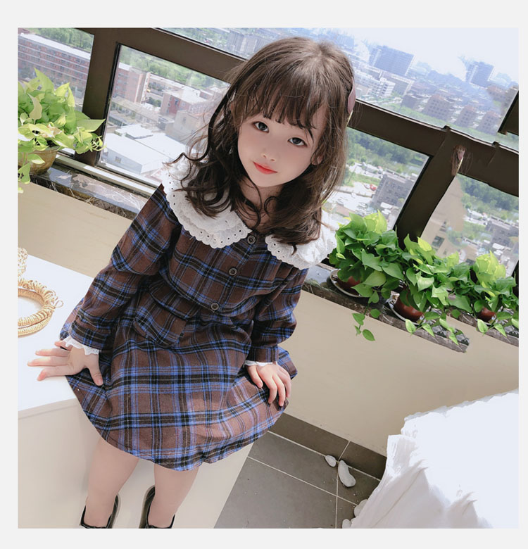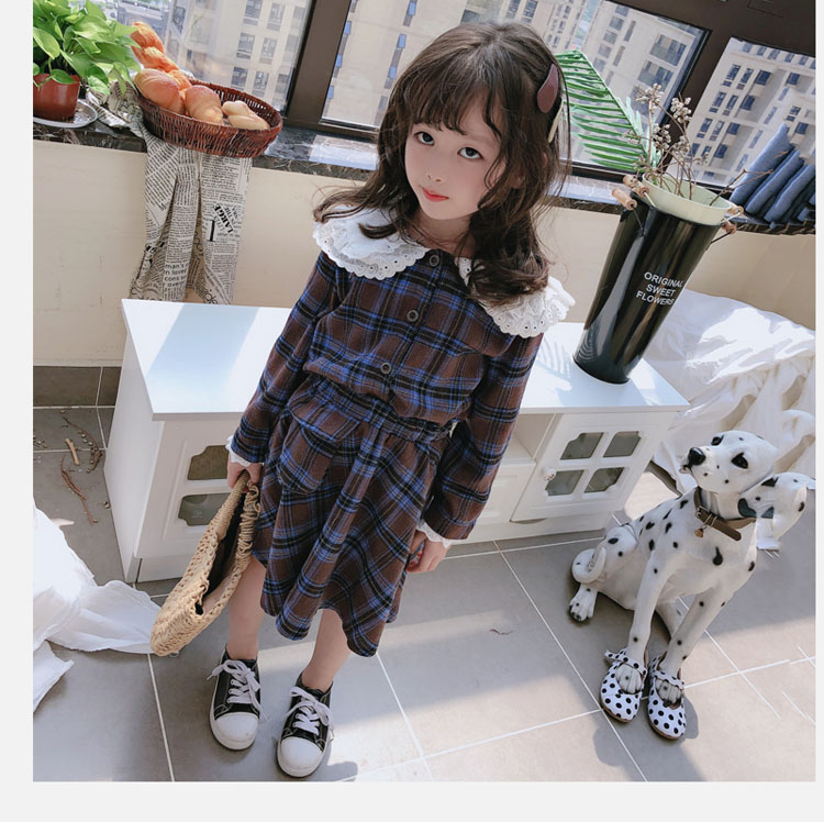 2019春秋新款 女童甜美格子套裝 兒童花邊翻領上衣+半身裙兩件套1入