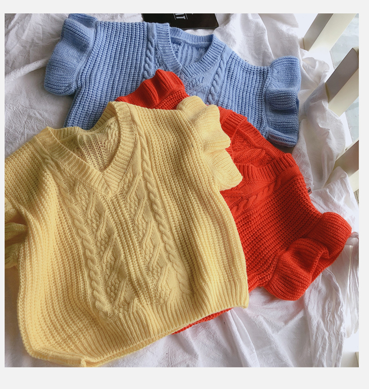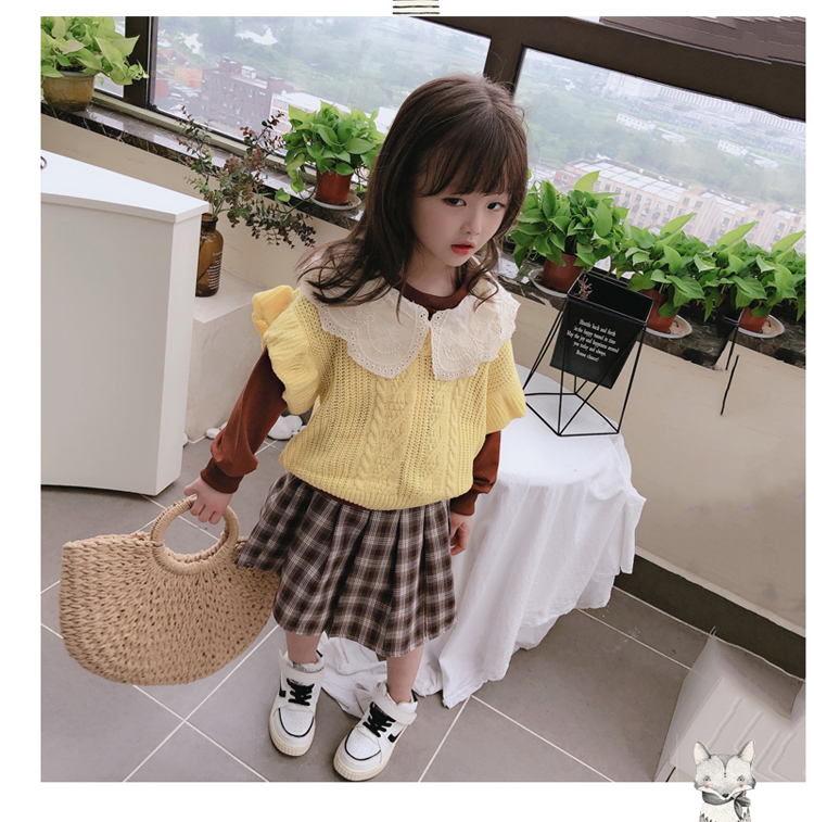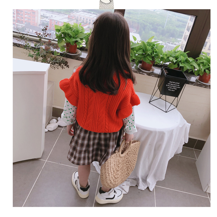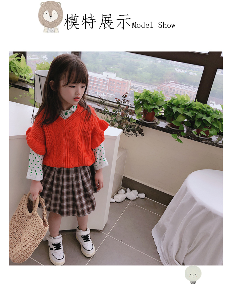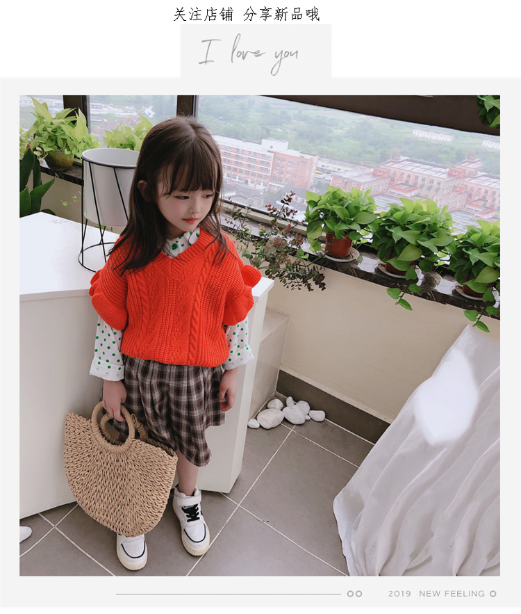 2019秋季中小兒童針織衫毛衣 女童寶寶寬松小飛袖背心套頭衫 潮1入
