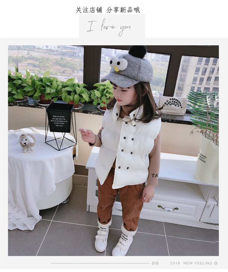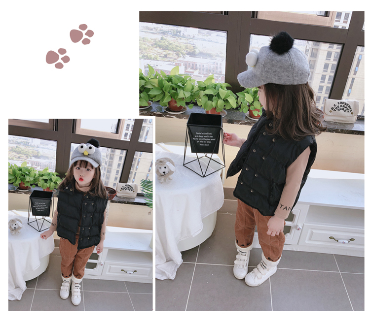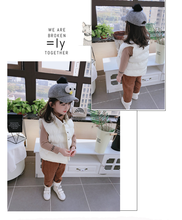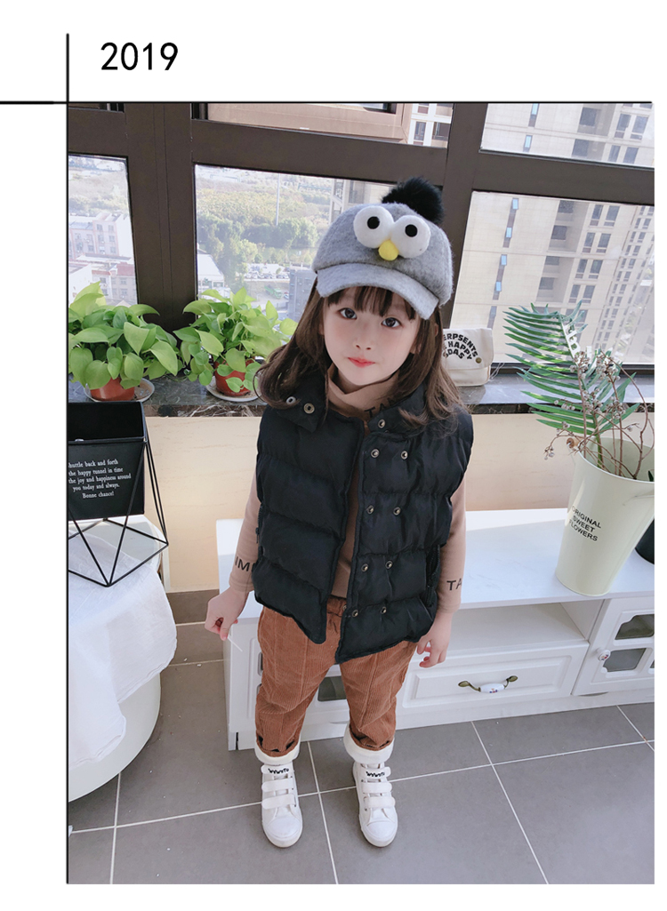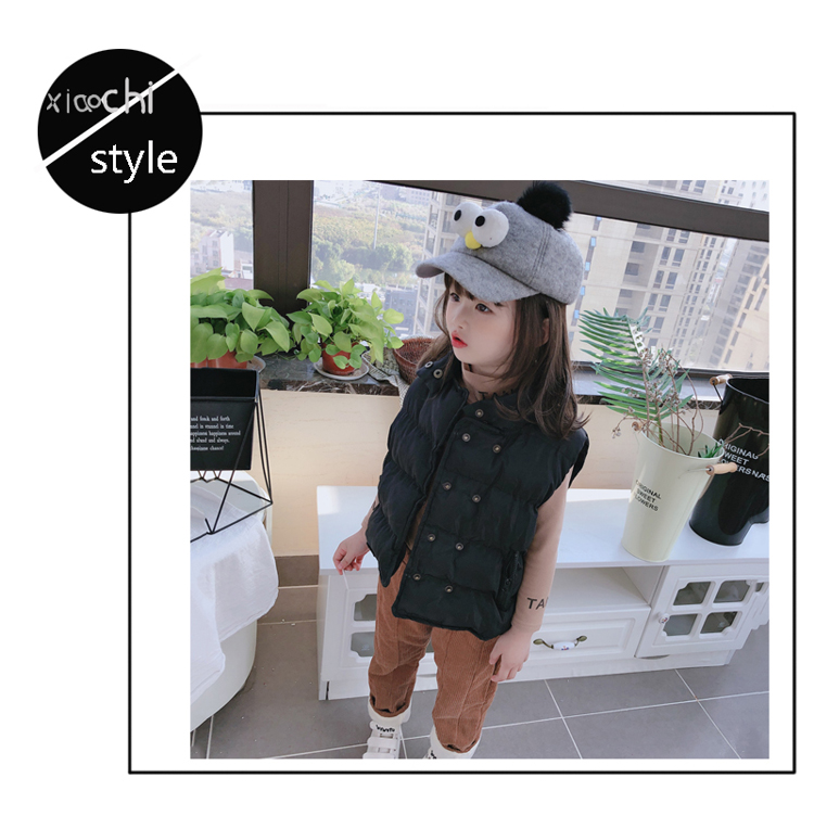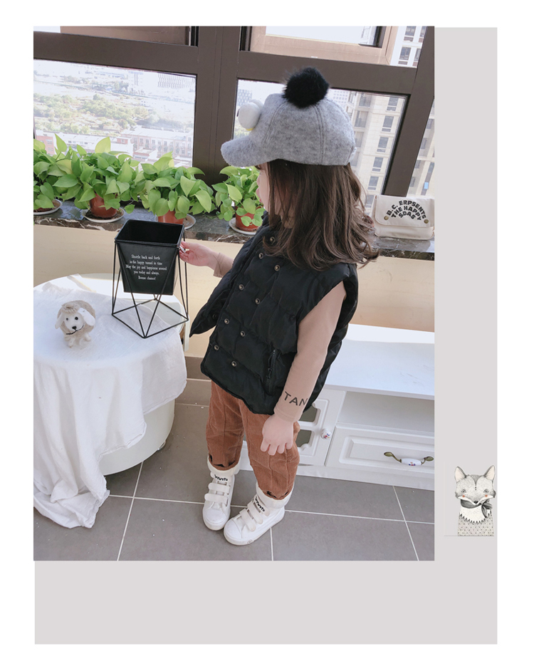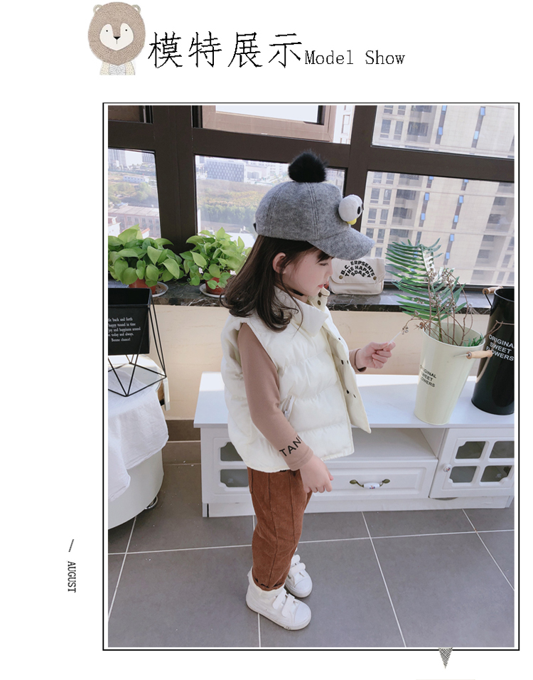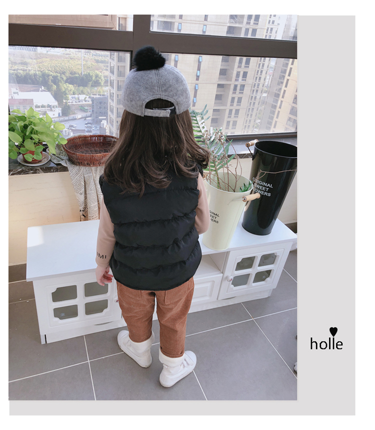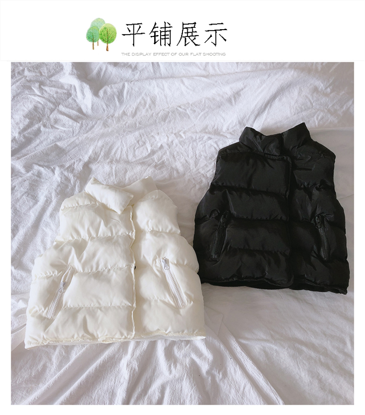 2019秋冬季新款中小童立領拉鏈口袋背心 男女童純色加厚保暖馬甲1入