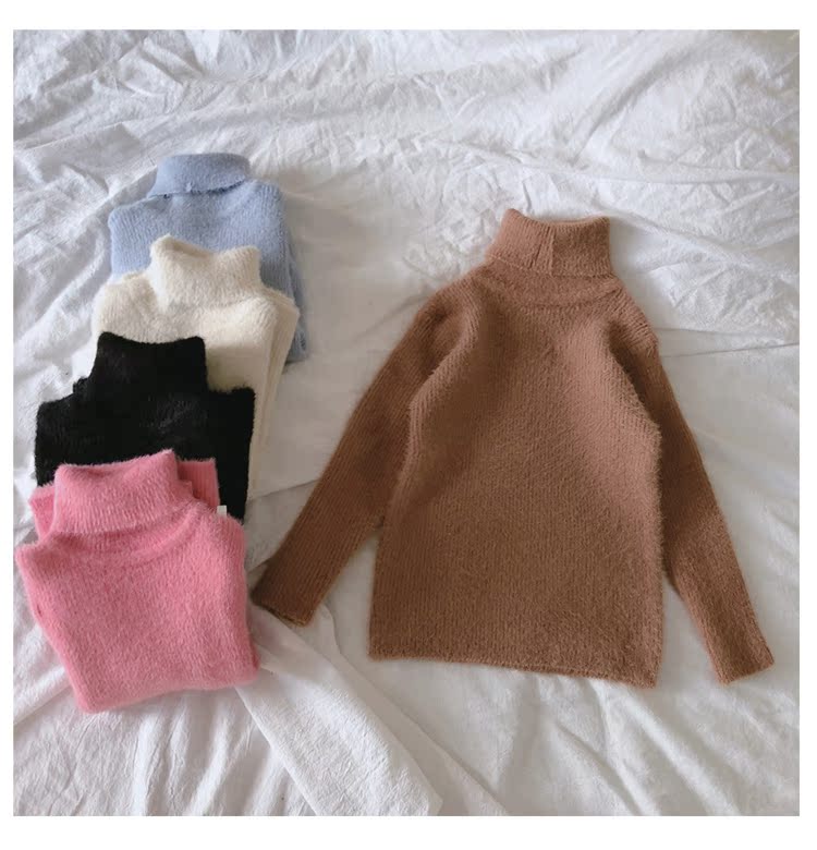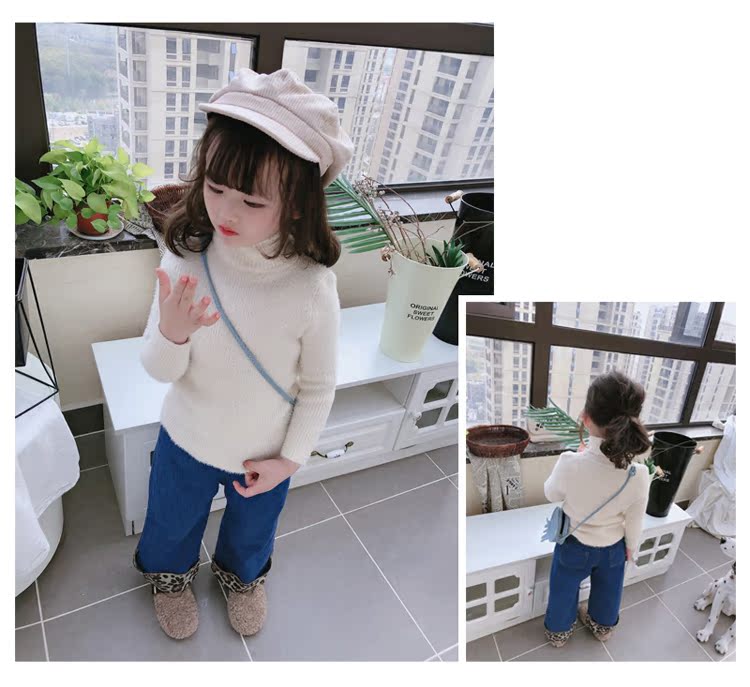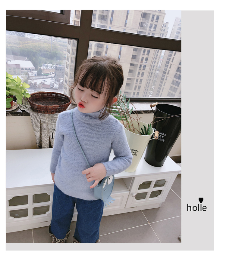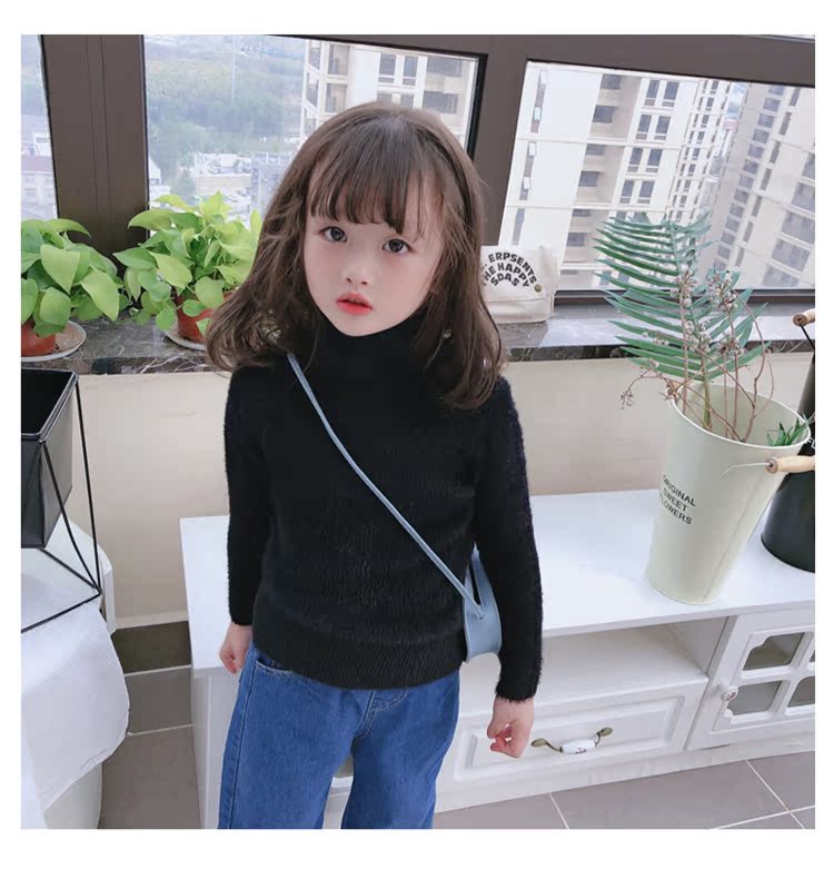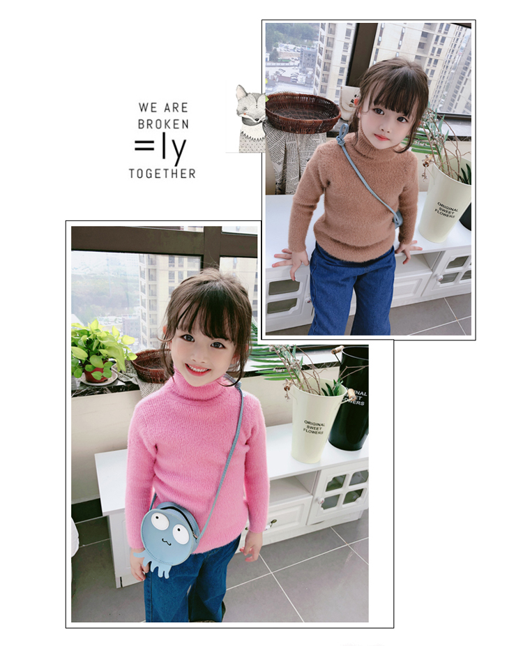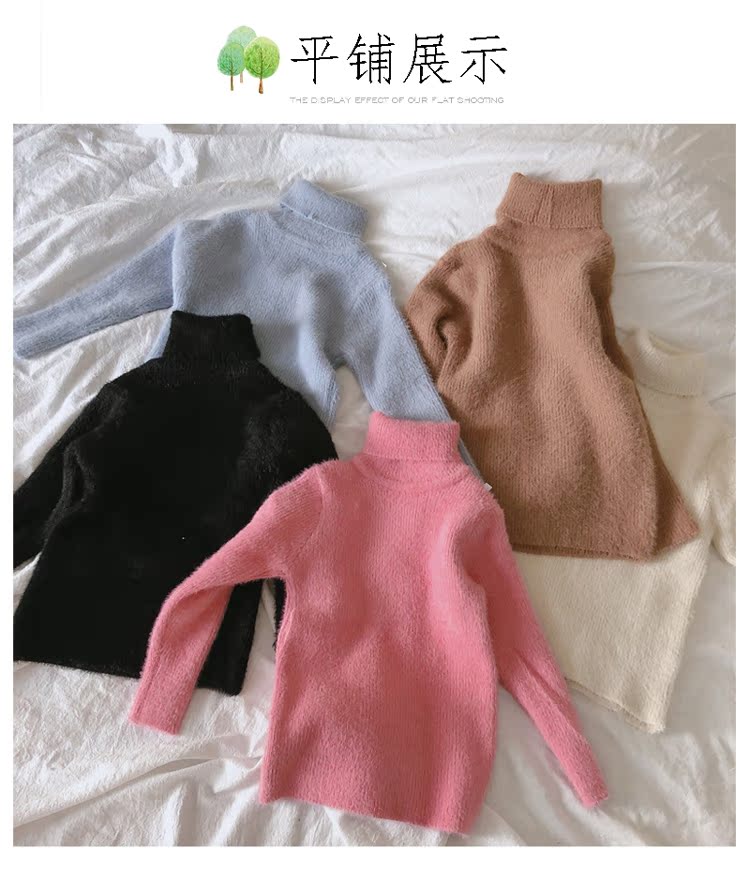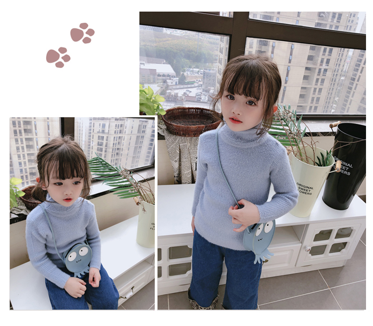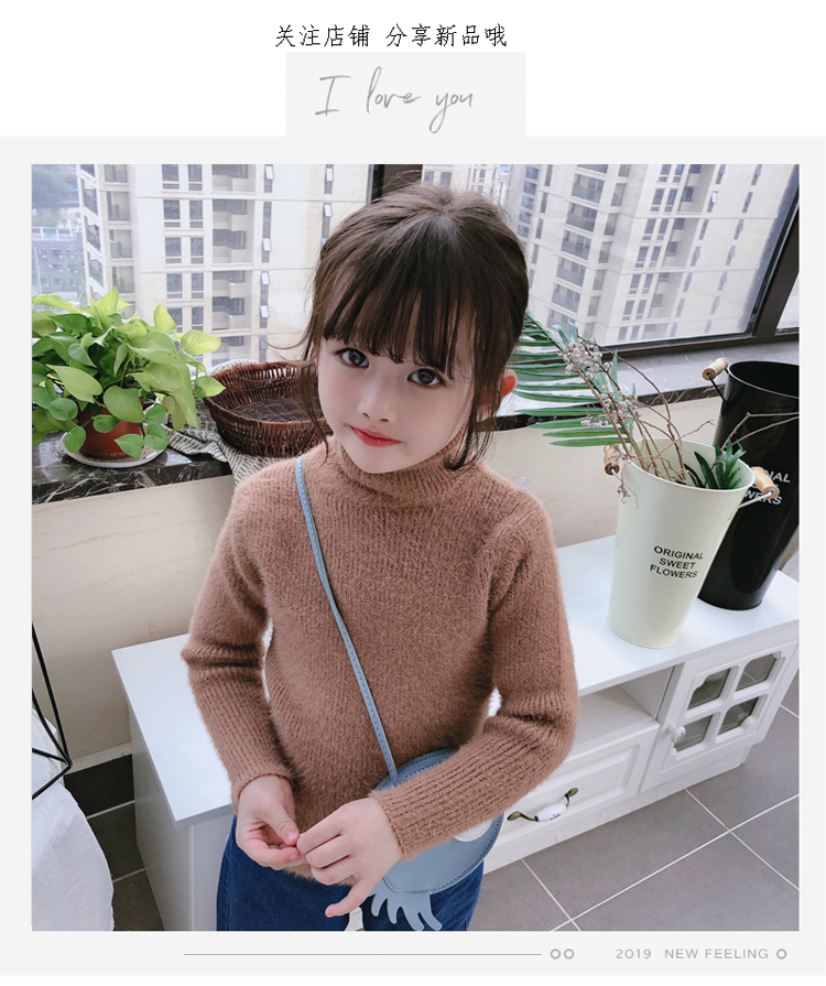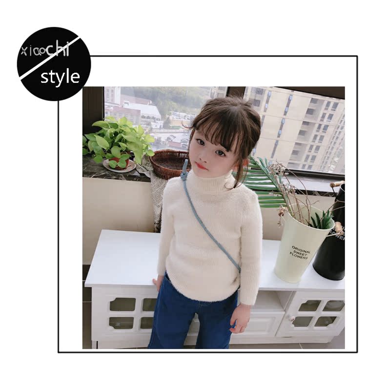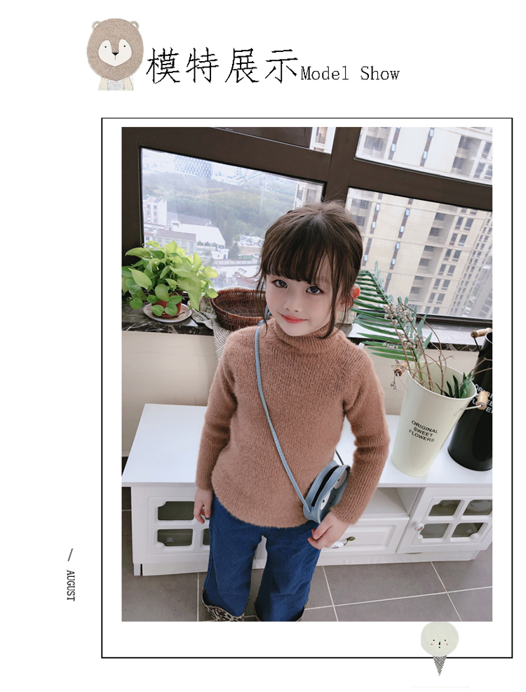 2019秋冬季新款中小童舒適修身純色毛衣 男女寶寶高領百搭針織衫1入