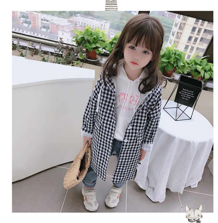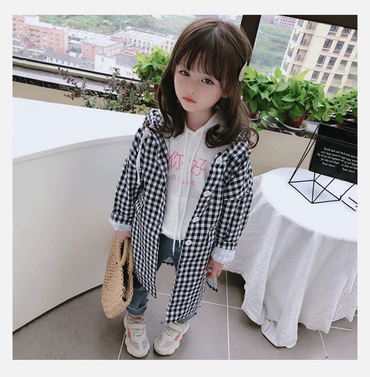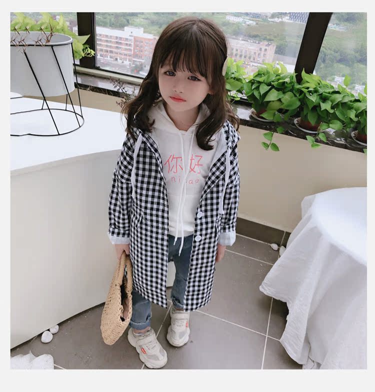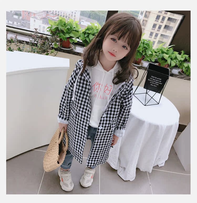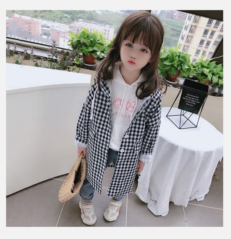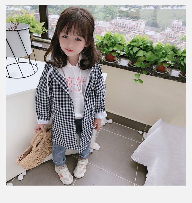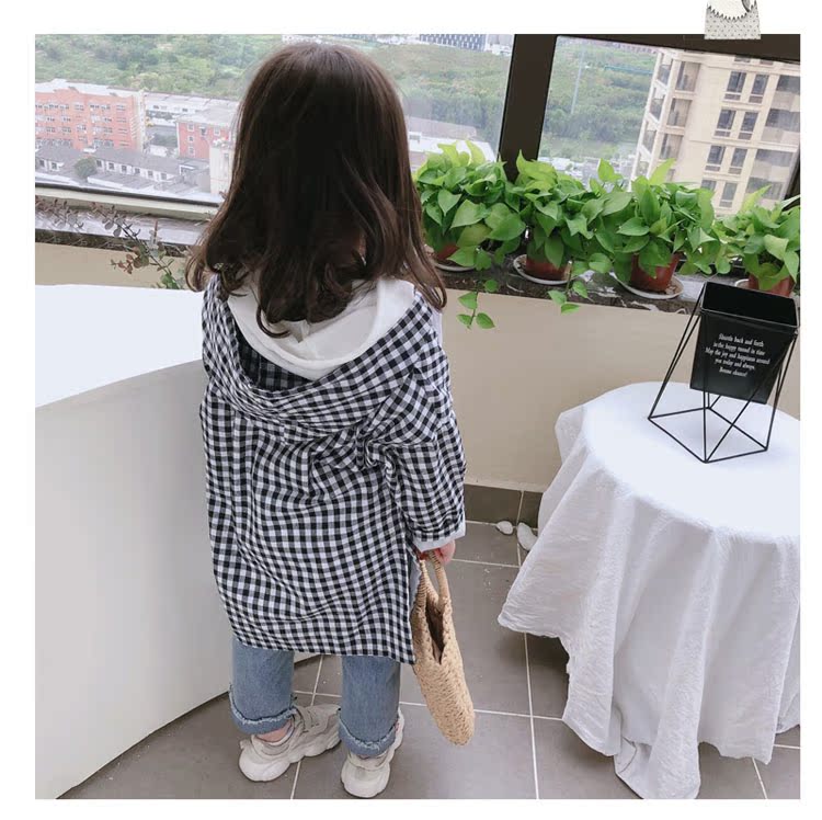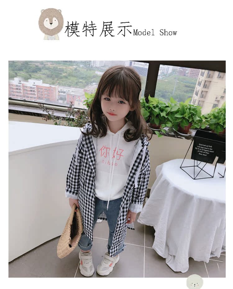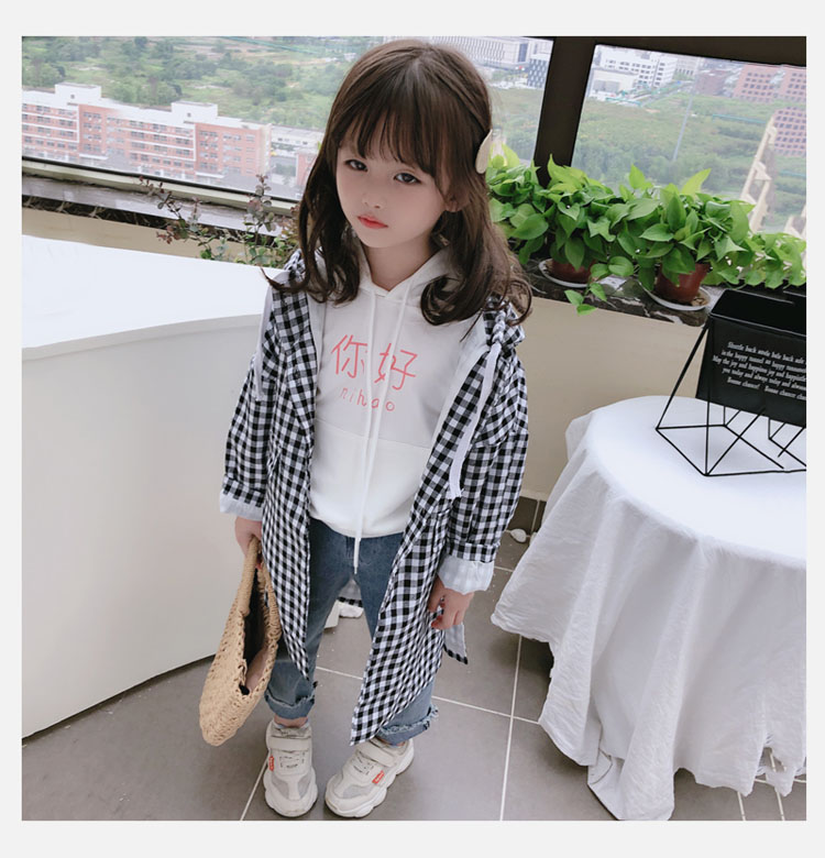 2019秋季新款 兒童帥氣舒適中長款上衣 男女童連帽長袖格子外套1入