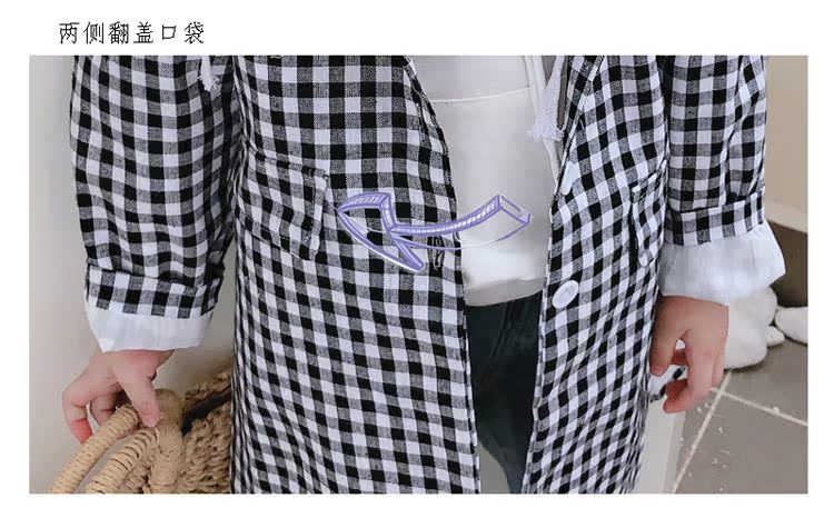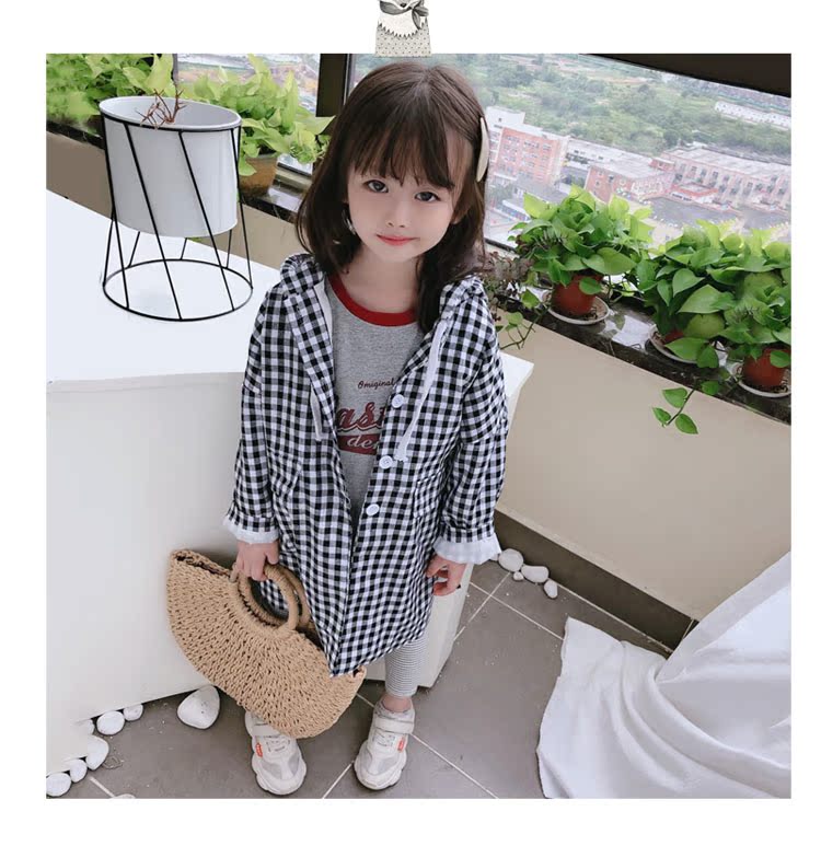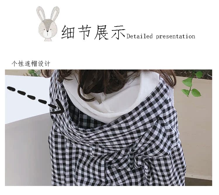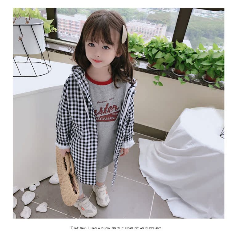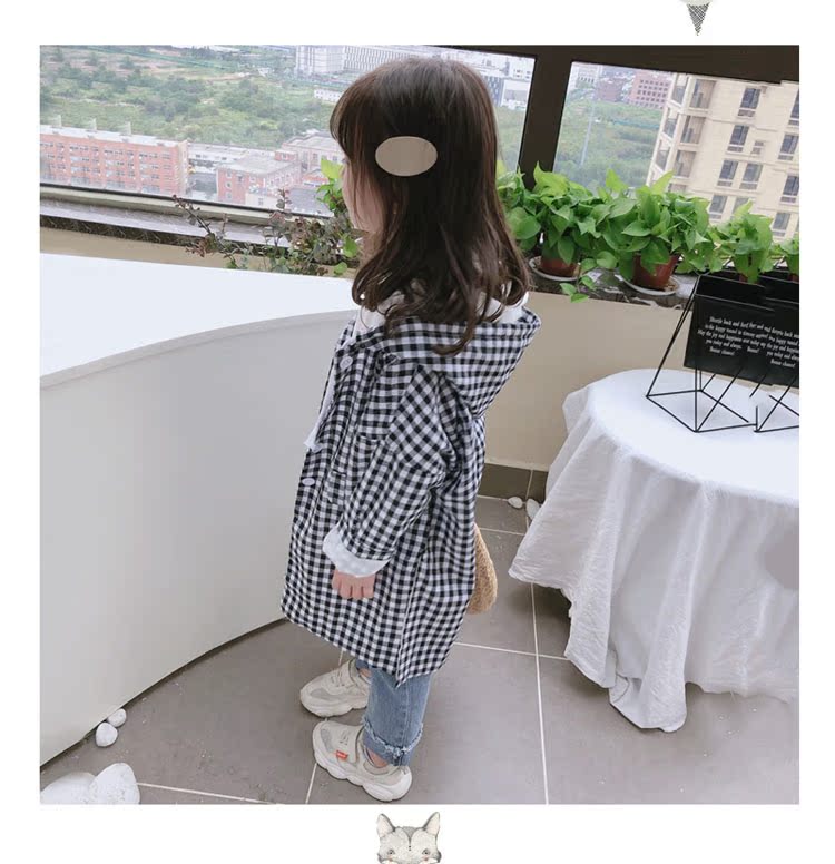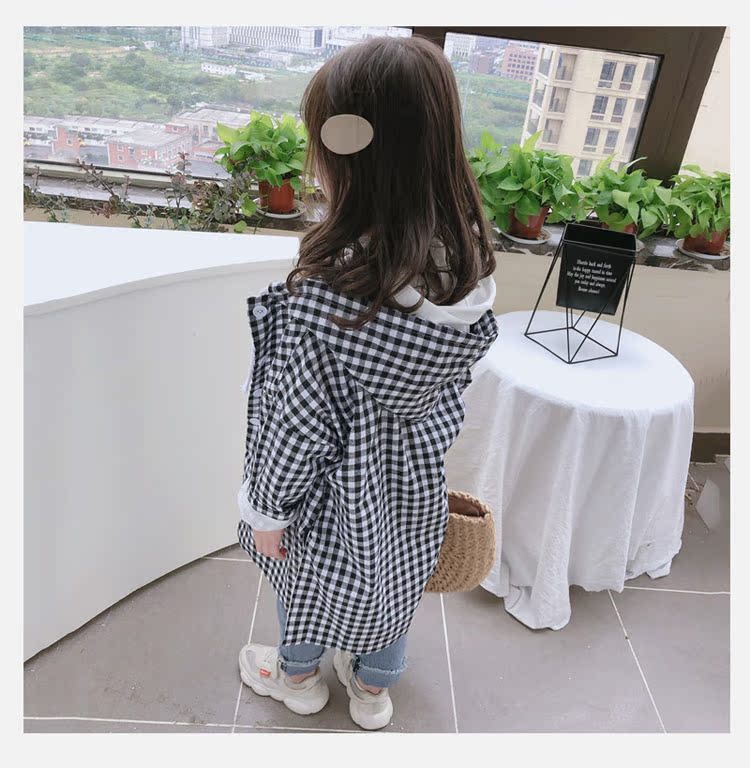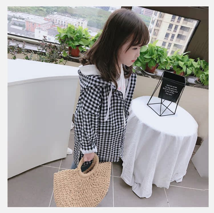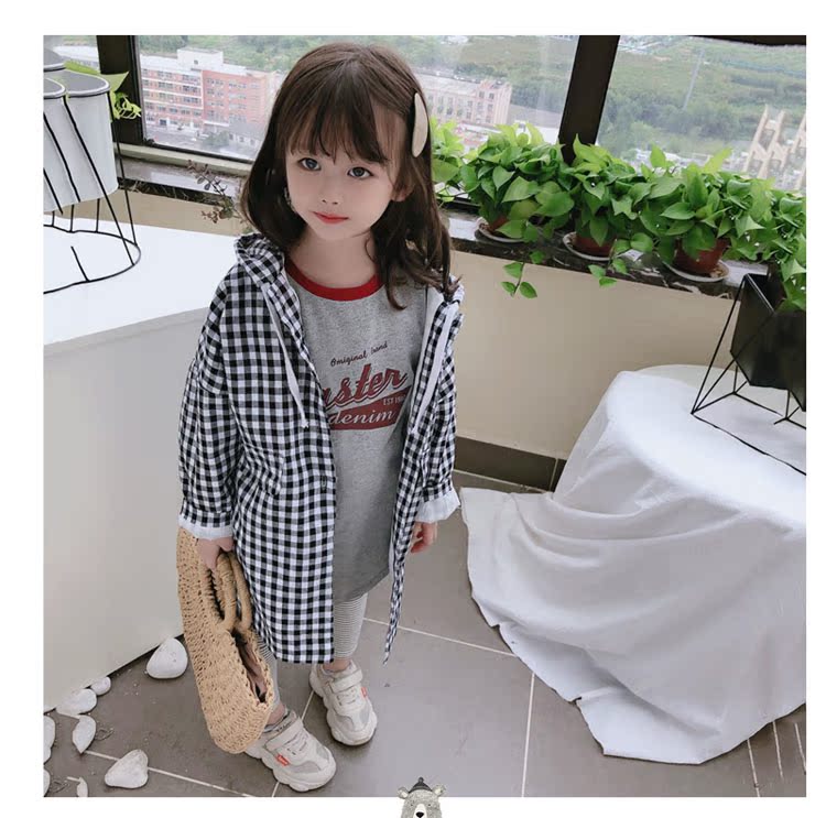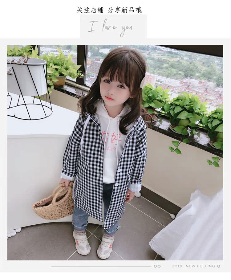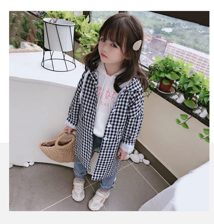 2019秋季新款 兒童帥氣舒適中長款上衣 男女童連帽長袖格子外套1入