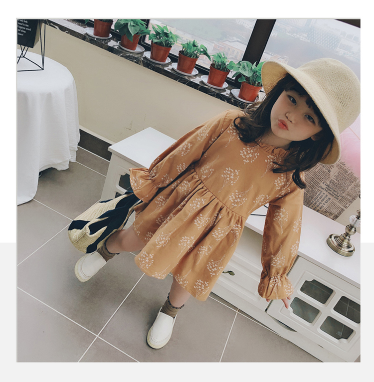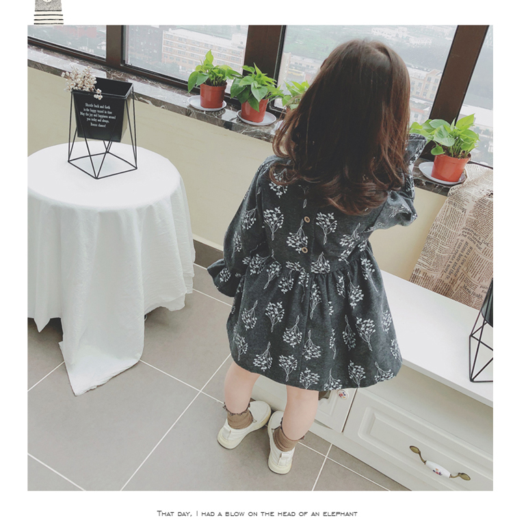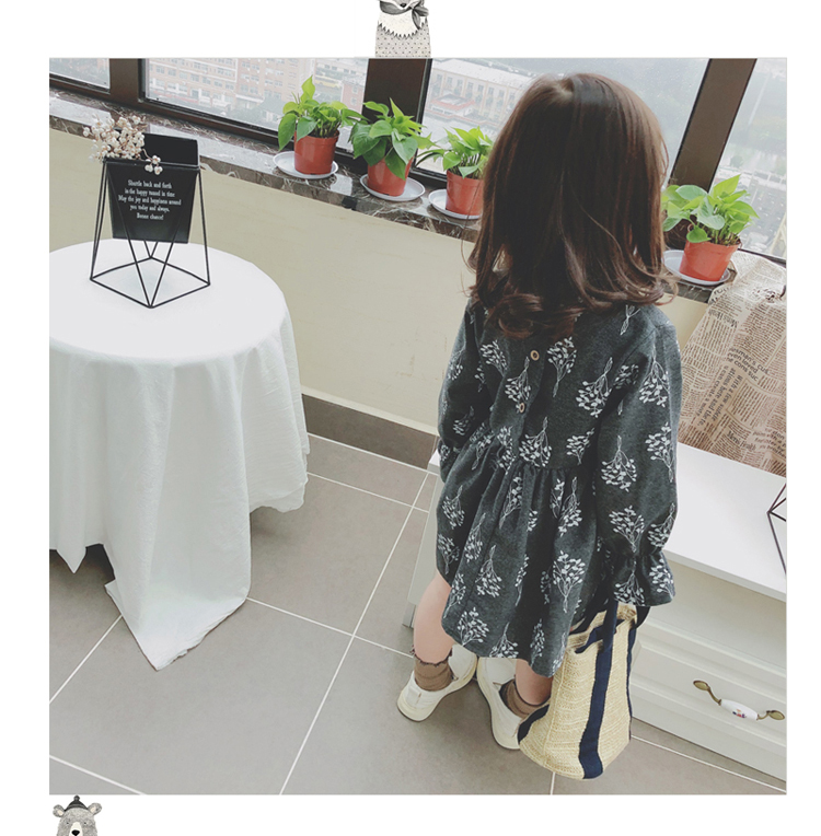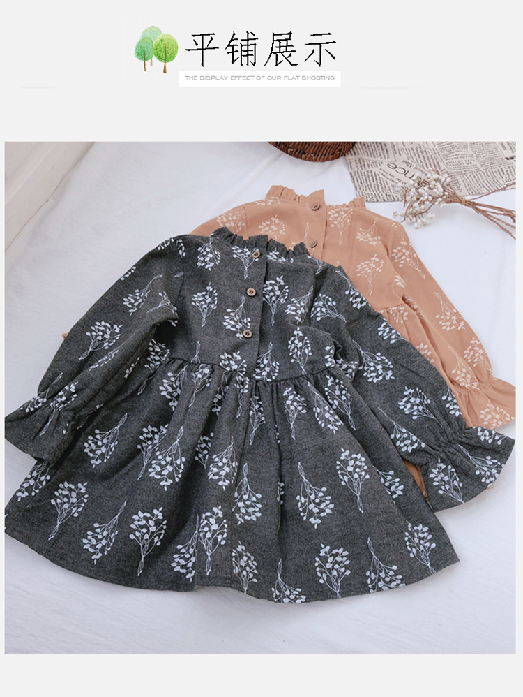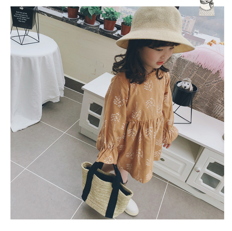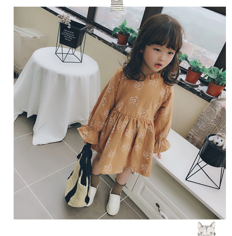 2019春秋新款休閑兒童裙子 小清新印花喇叭袖女童寶寶連衣裙潮1入