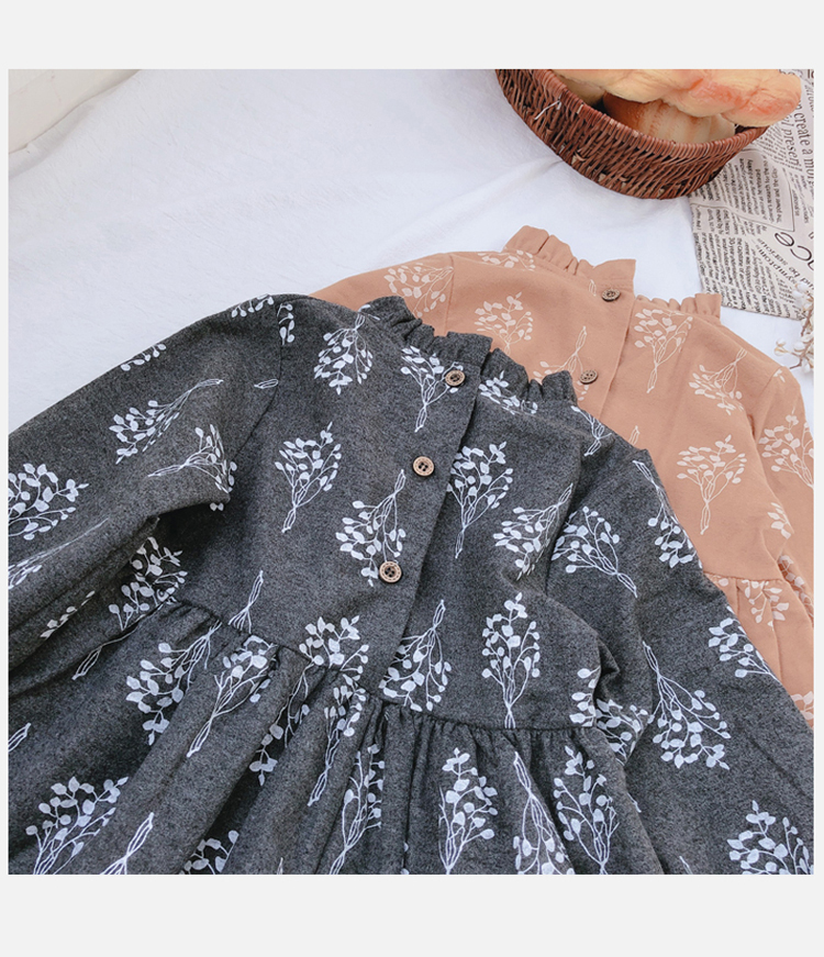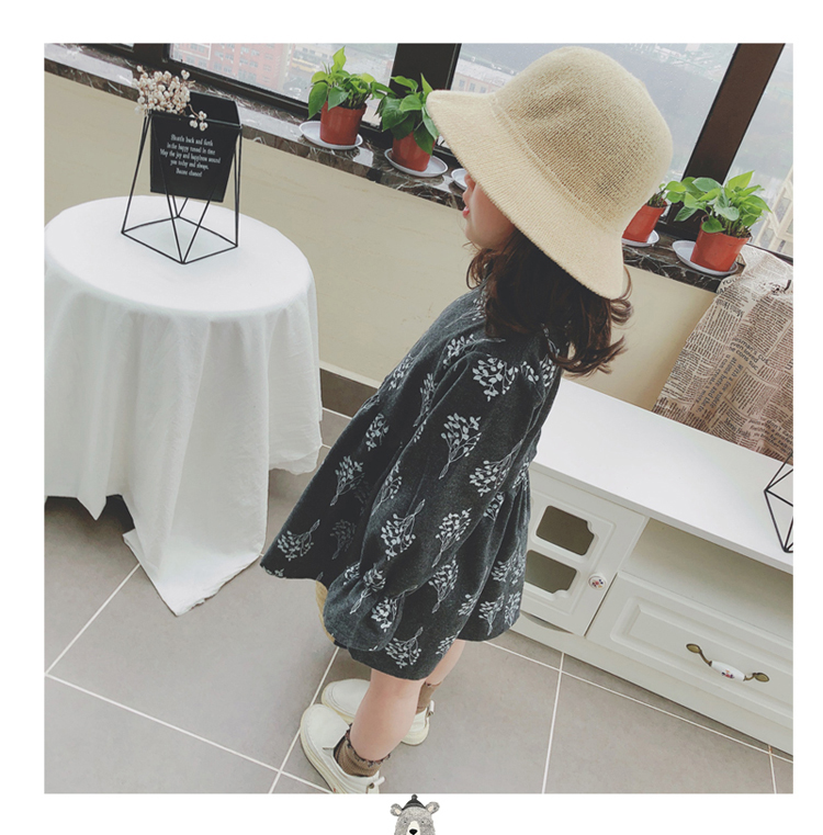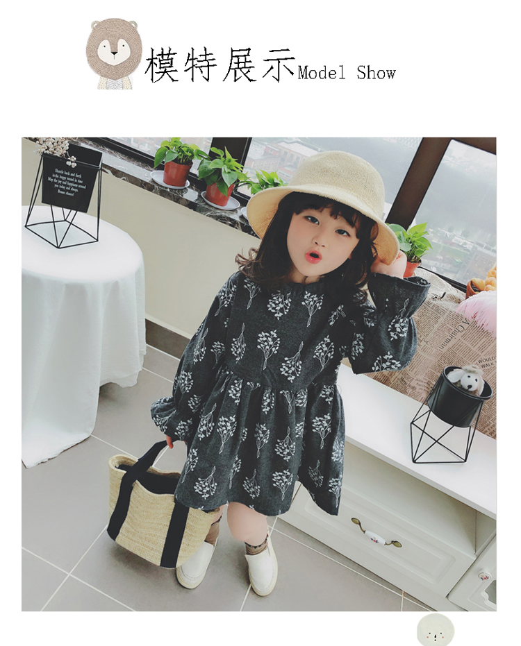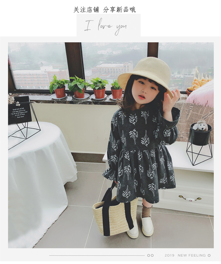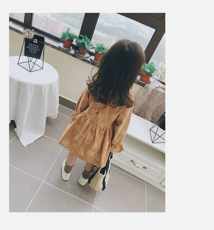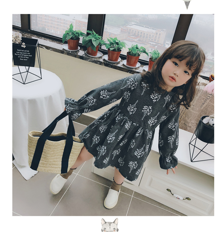 2019春秋新款休閑兒童裙子 小清新印花喇叭袖女童寶寶連衣裙潮1入