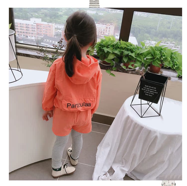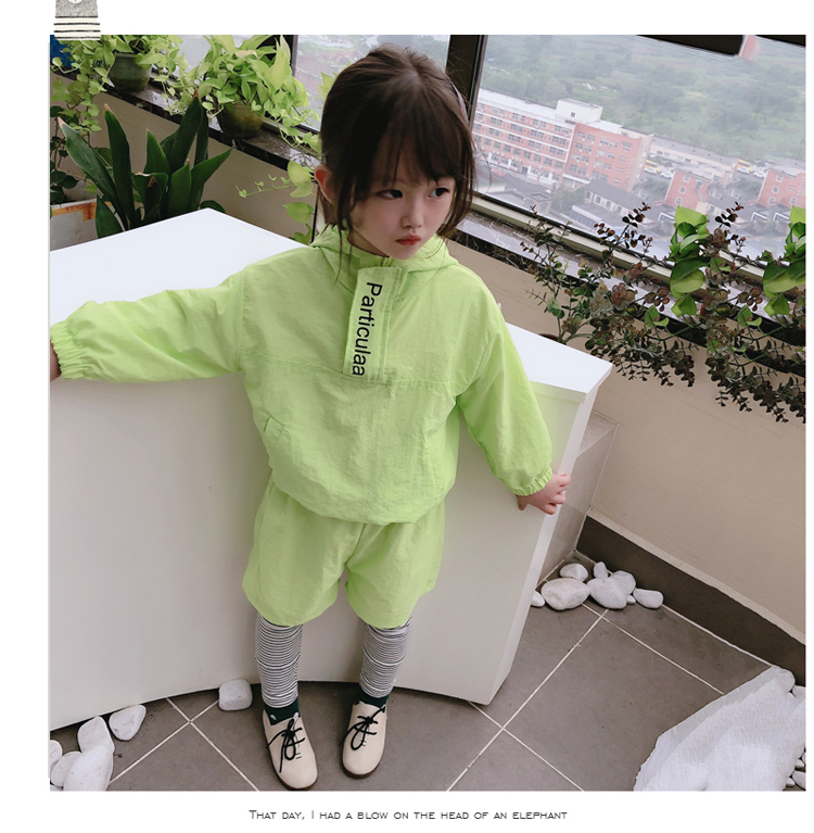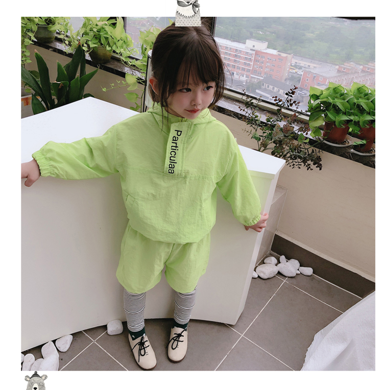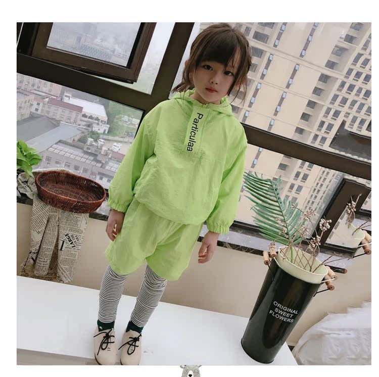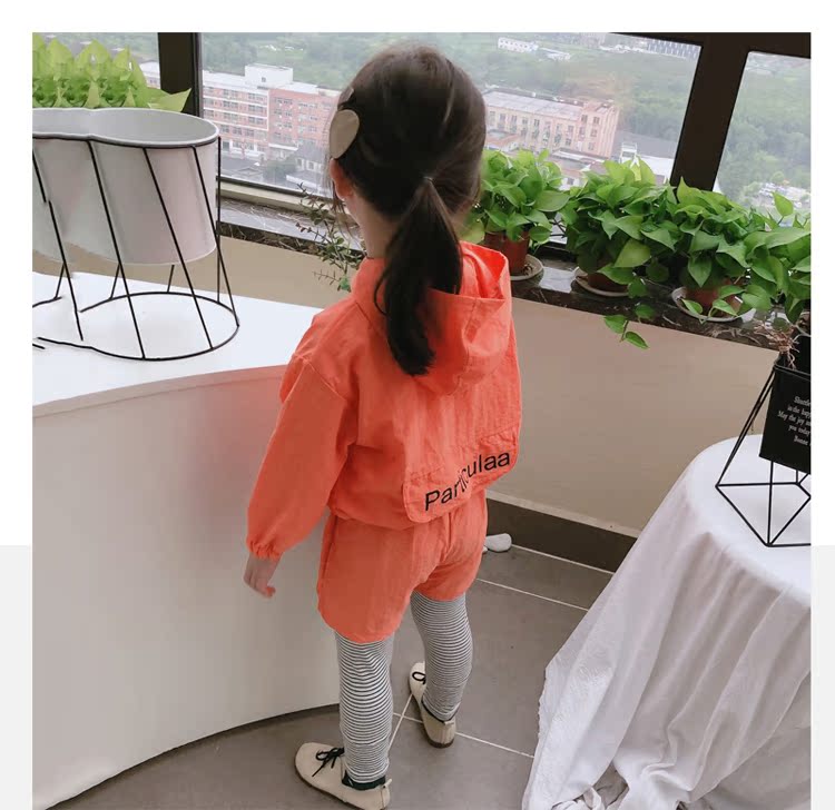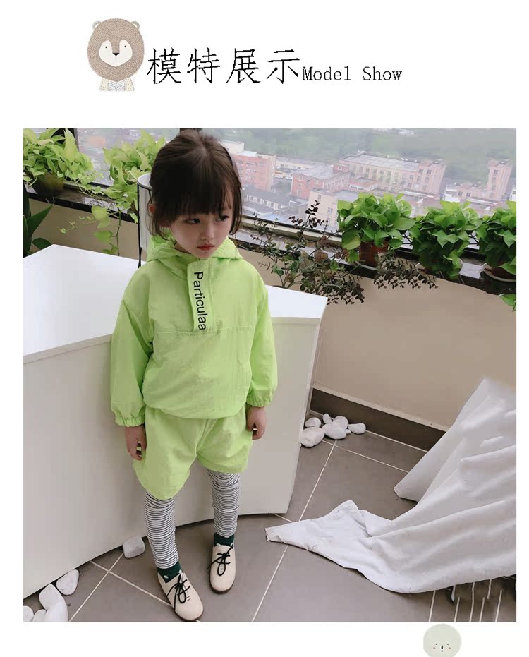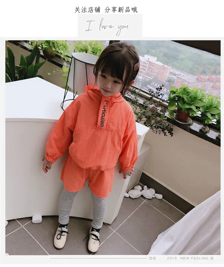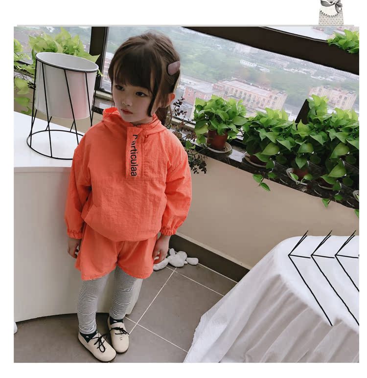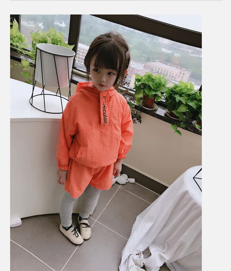 2019秋季新款 男女童運動風帥氣連帽衛衣+假兩件休閑褲兒童套裝1入