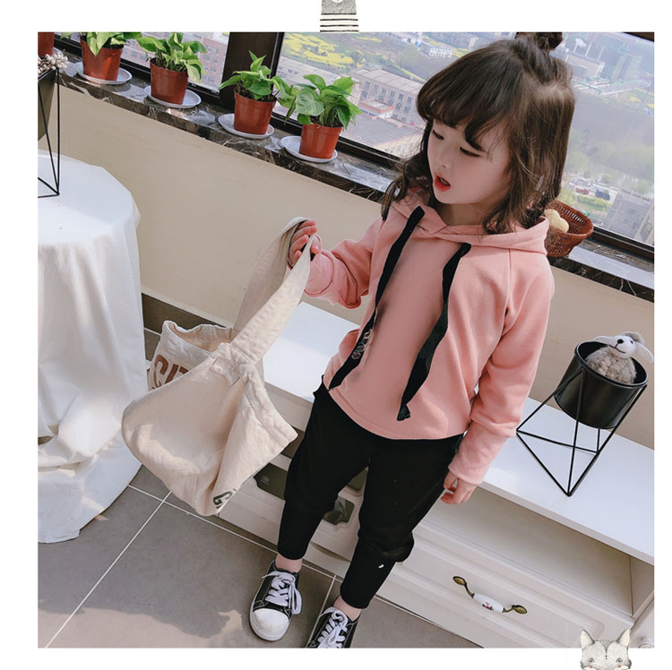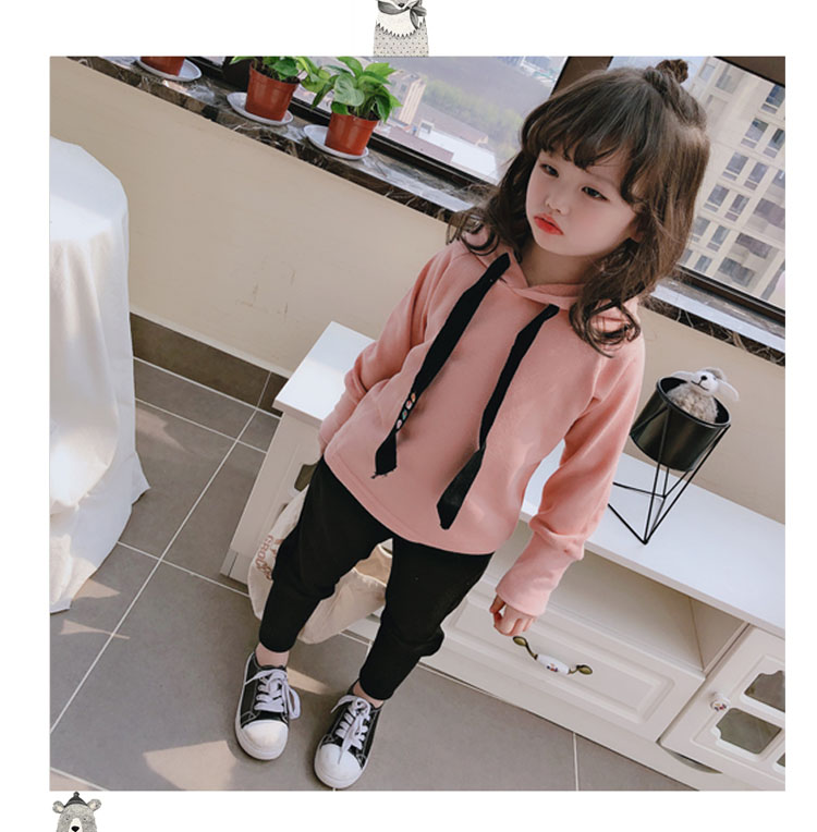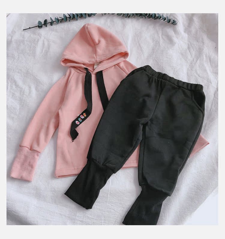 2019童裝春秋季中小童運動長袖連帽女童兩件套 兒童衛衣套裝 潮1入