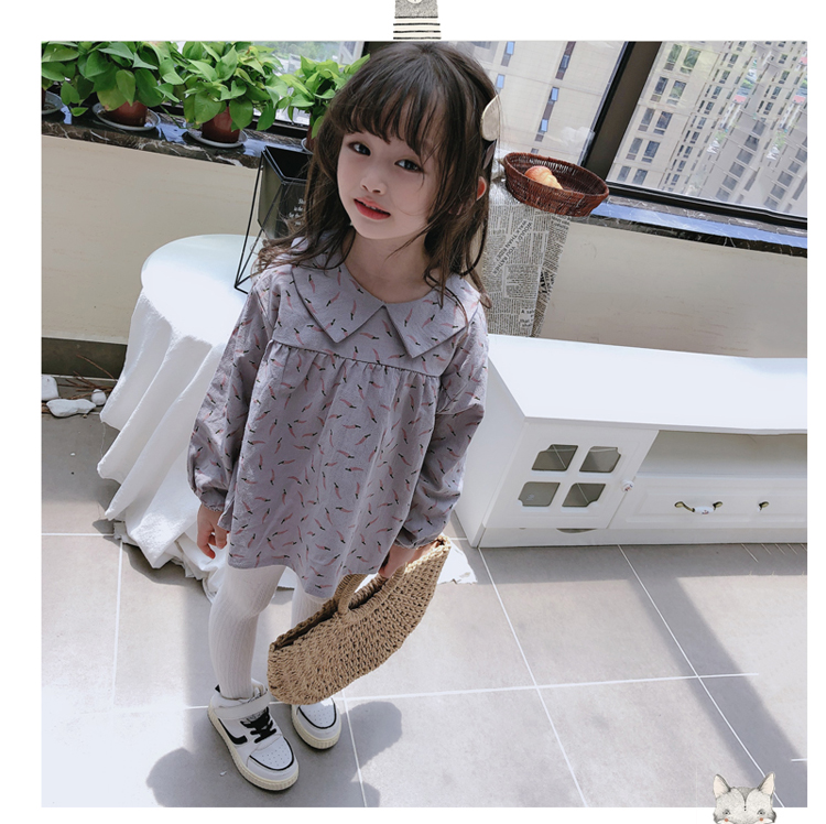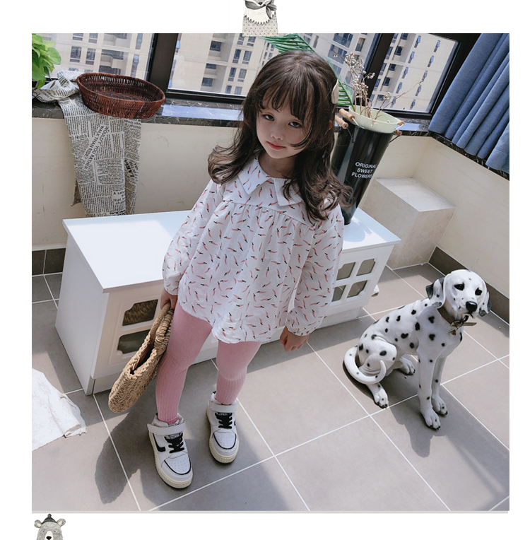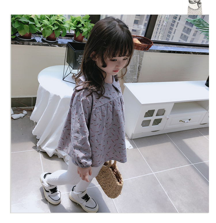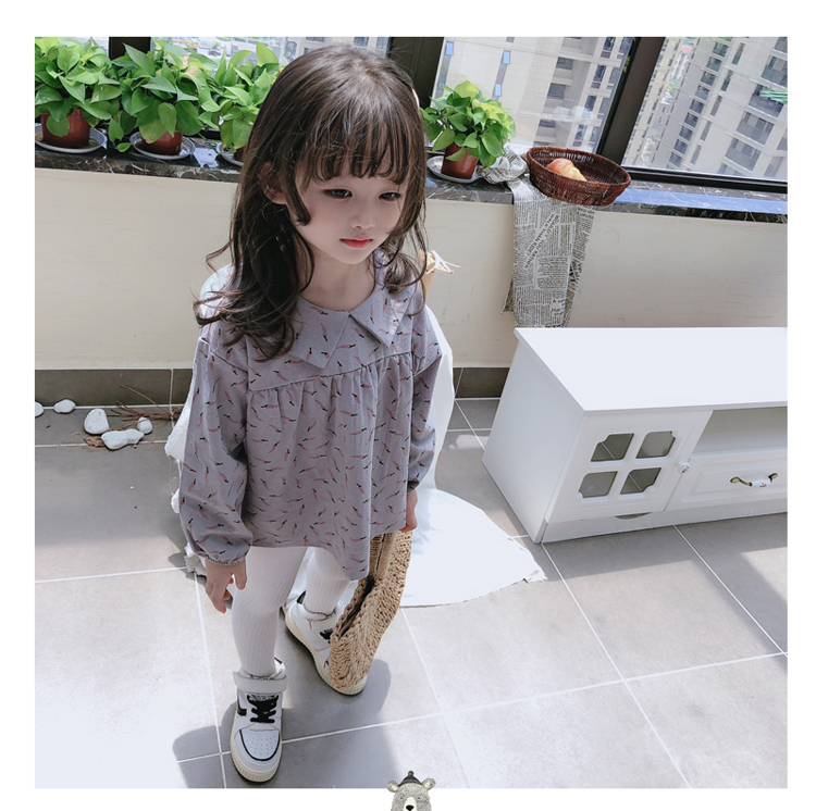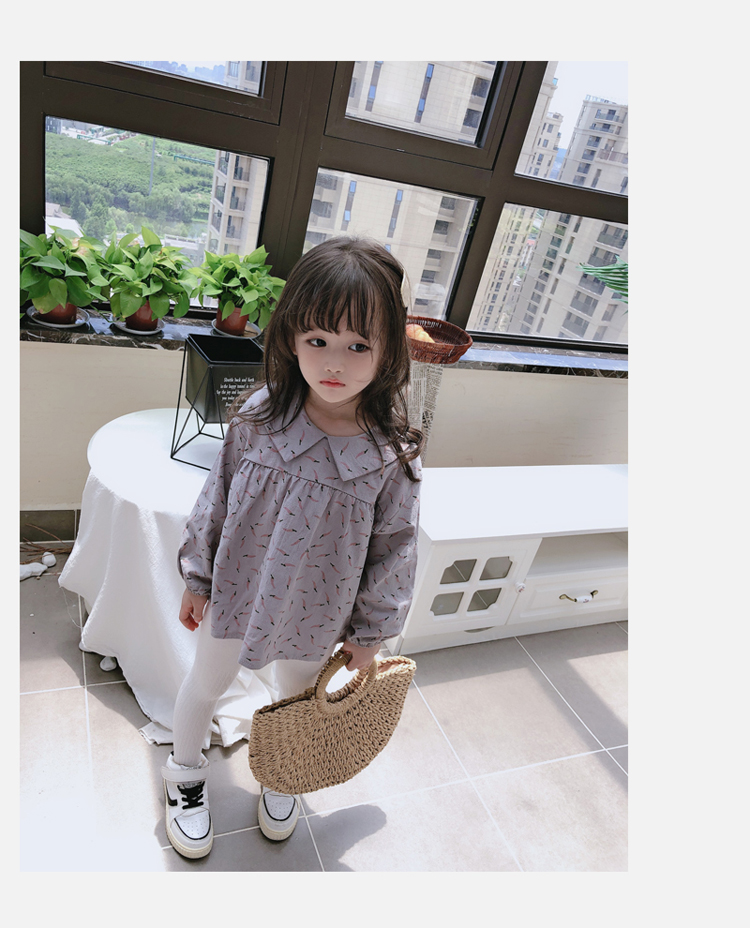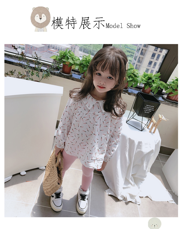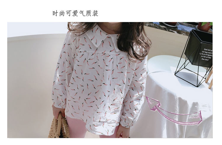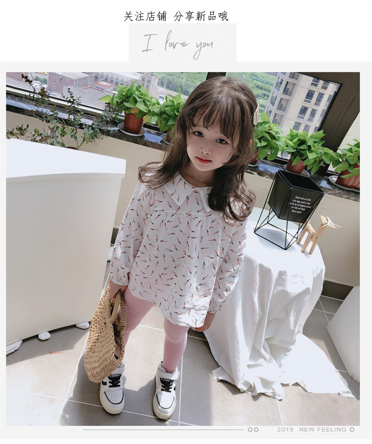 2019春秋季新款 女童個性洋氣印花T恤 中小童可愛甜美翻領上衣潮1入
