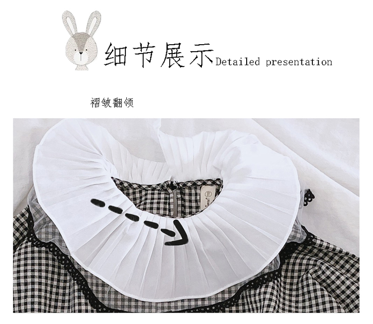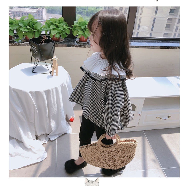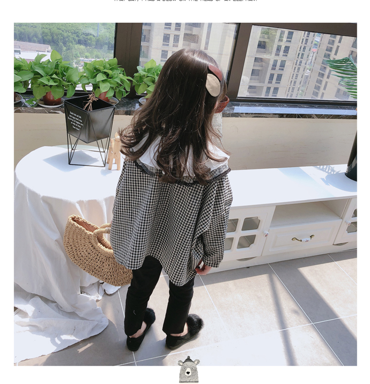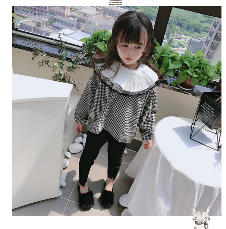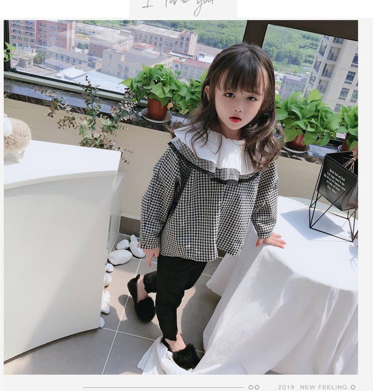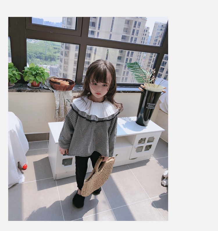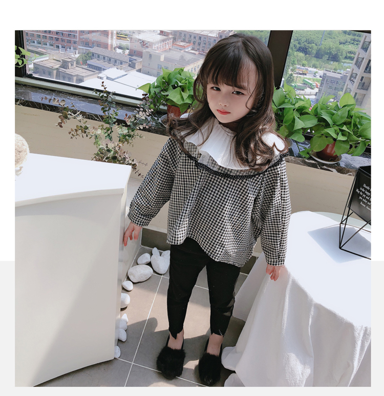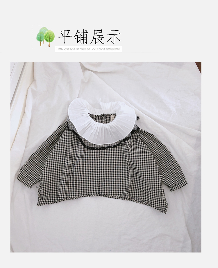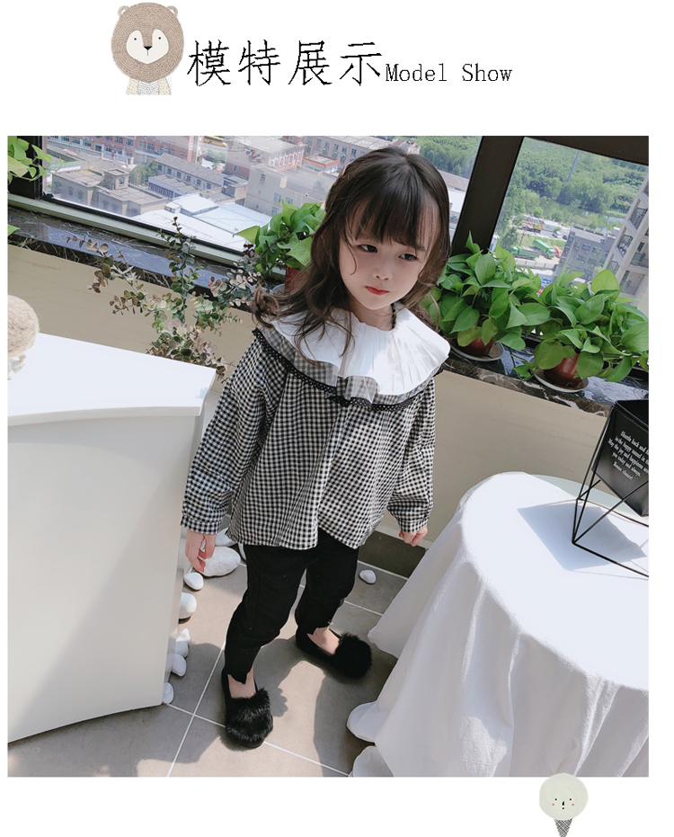 2019春秋新款 女童舒適洋氣格子T恤 兒童可愛甜美百褶大翻領上衣1入
