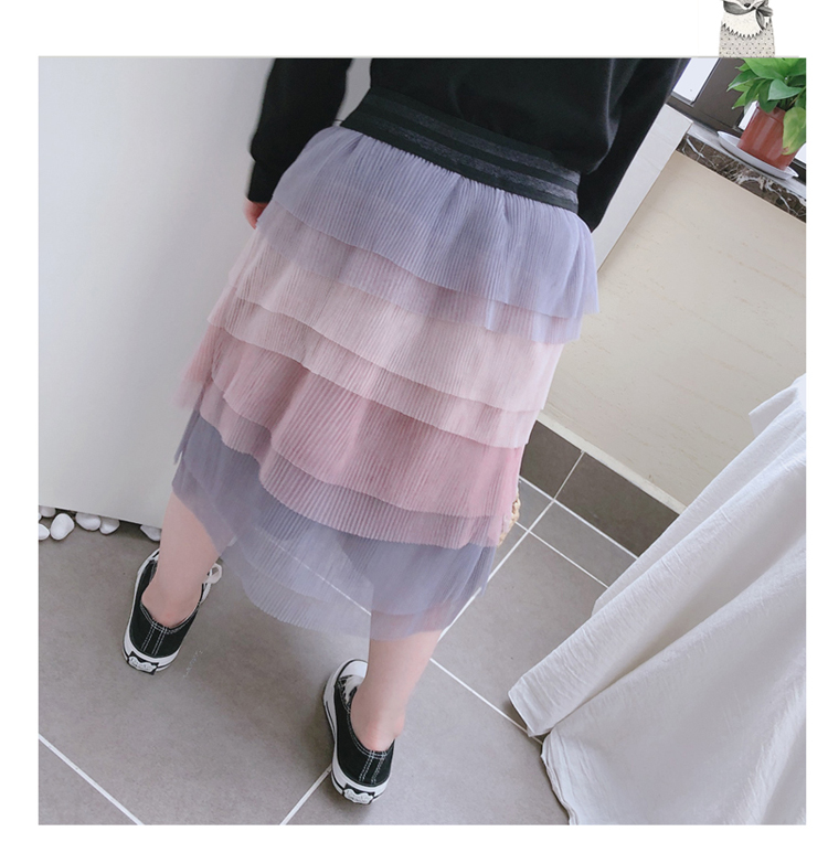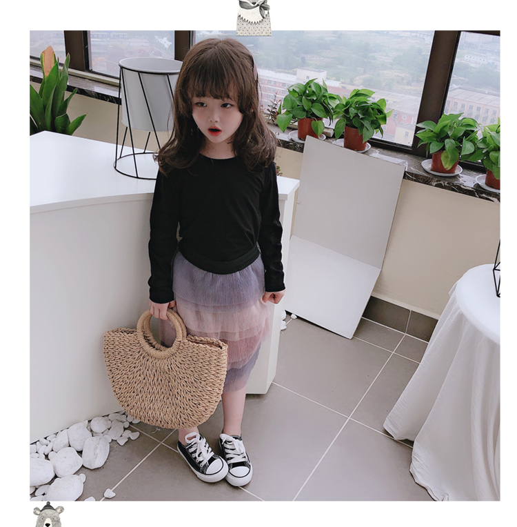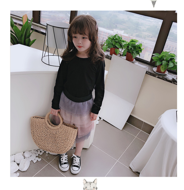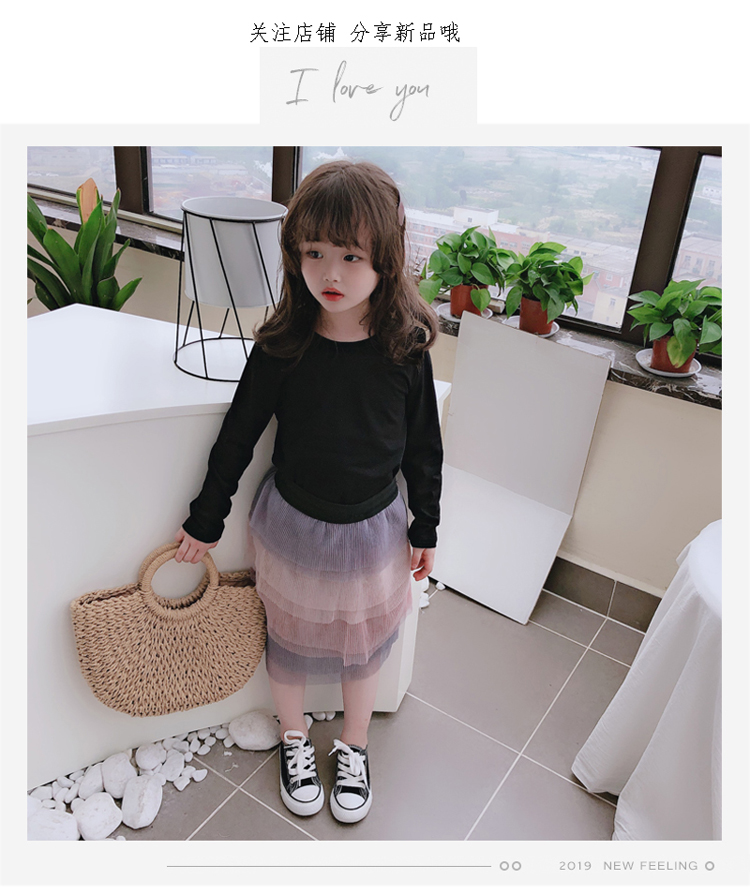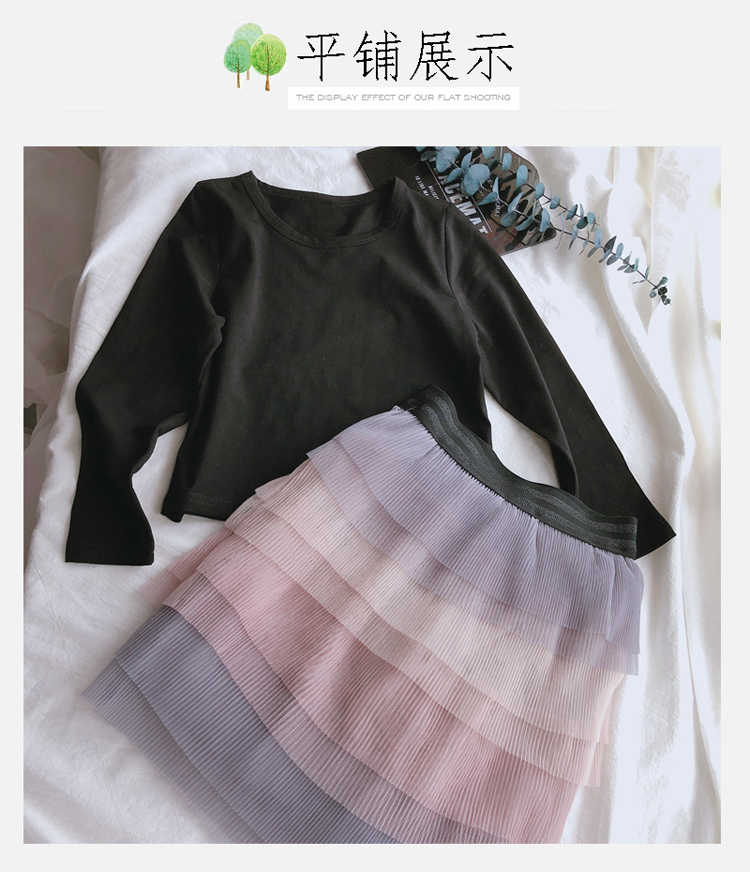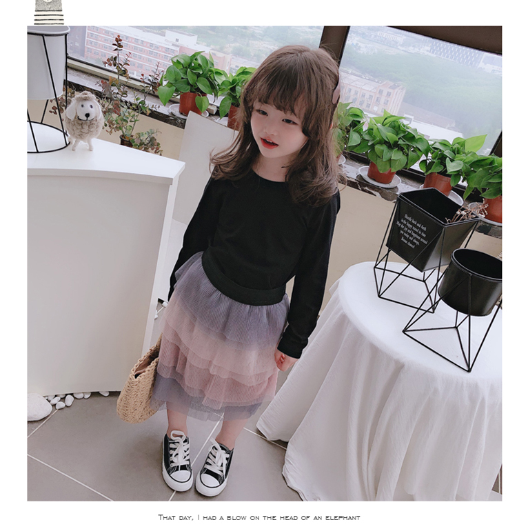 2019女童夏季新款氣質套裝 兒童長袖圓領T恤+洋氣漸變色半身裙潮1入