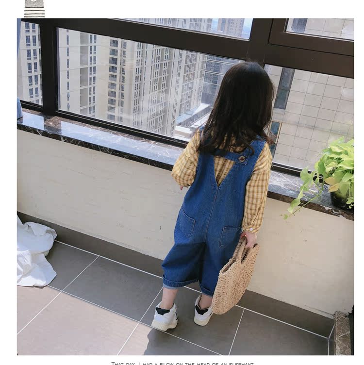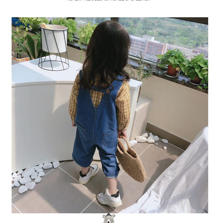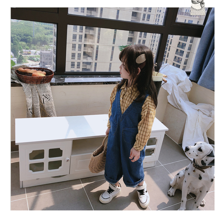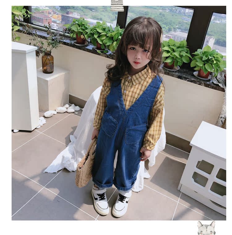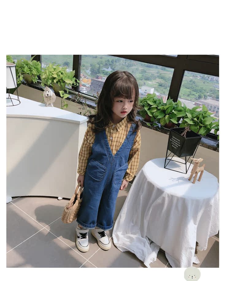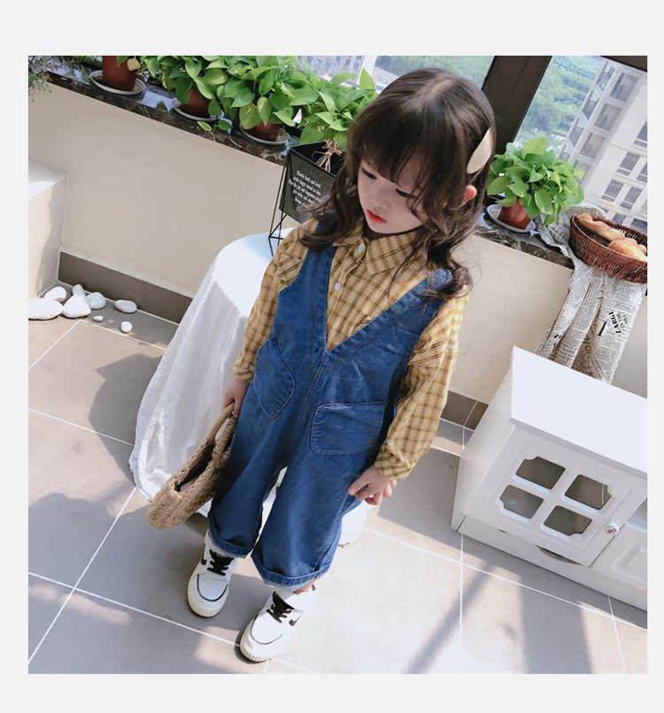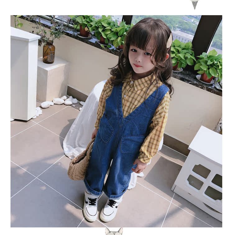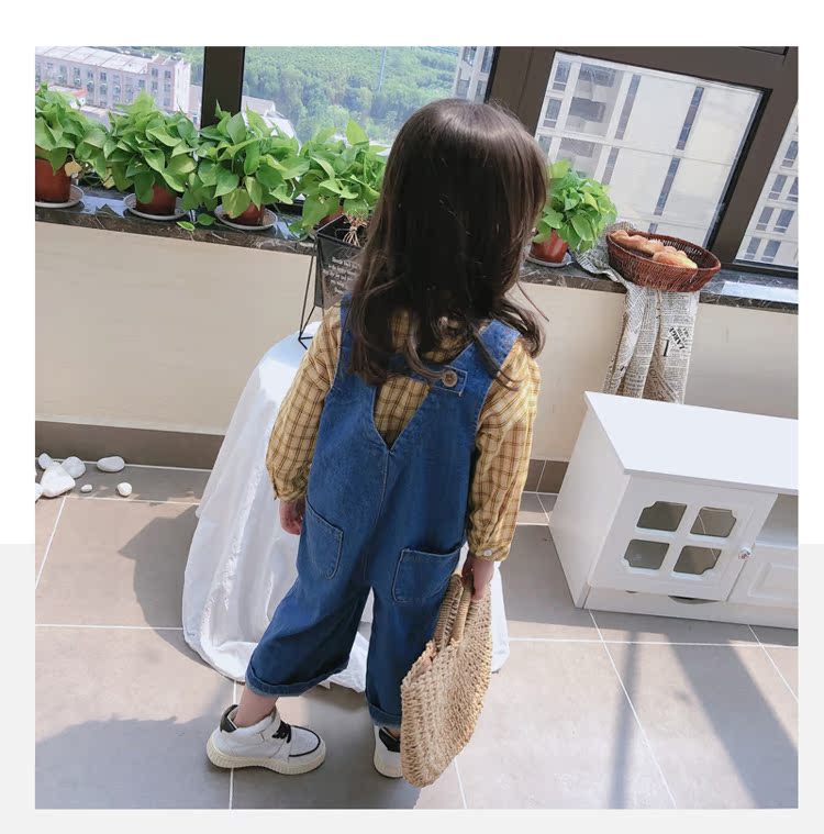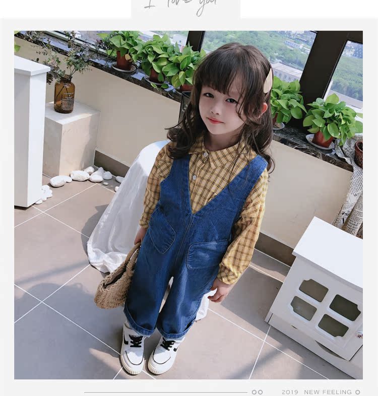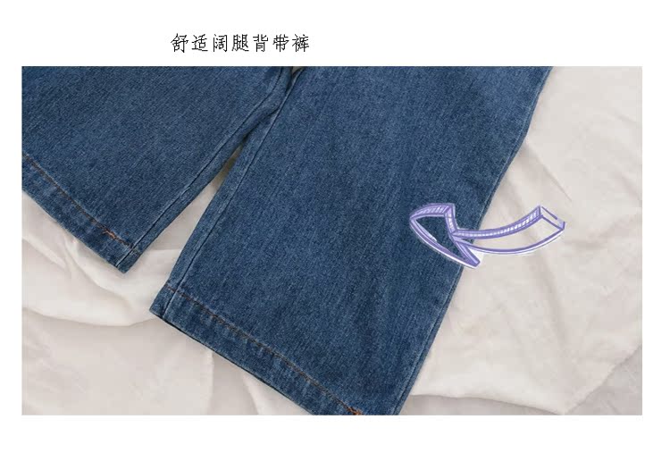 2019春秋季新款 中小童個性兒童休閑褲 女童寶寶舒適牛仔背帶褲1入