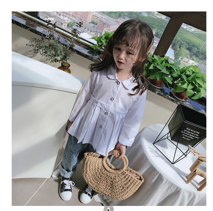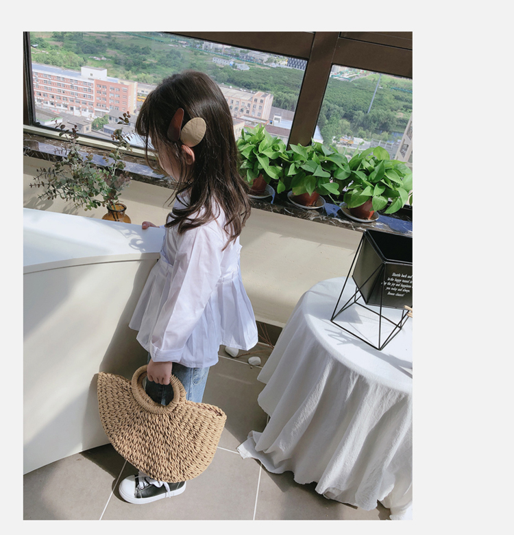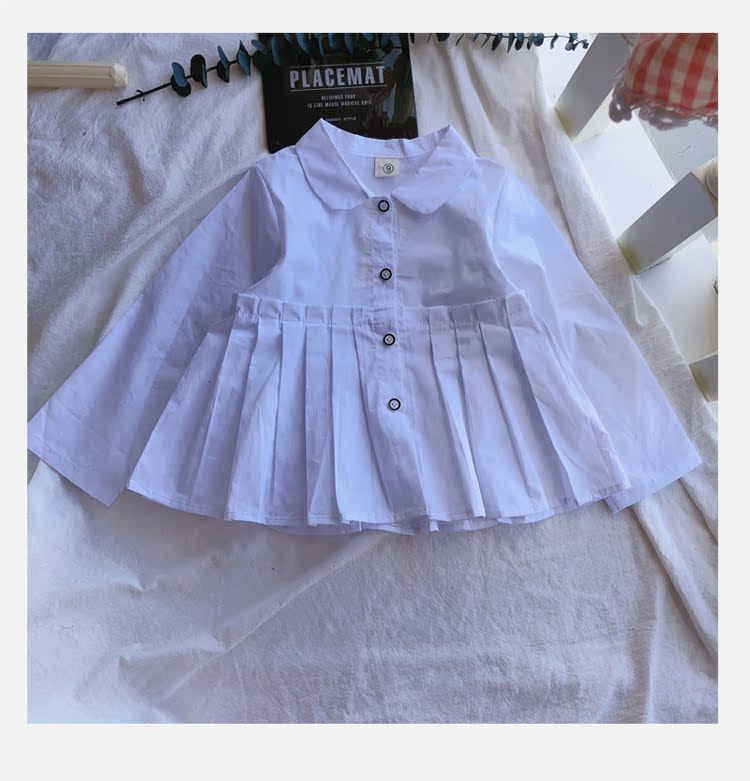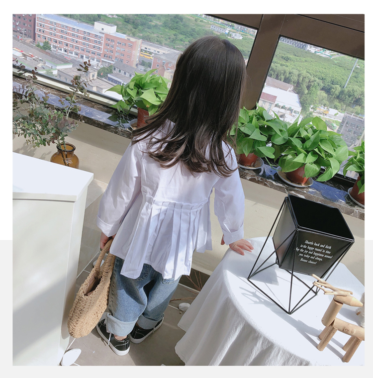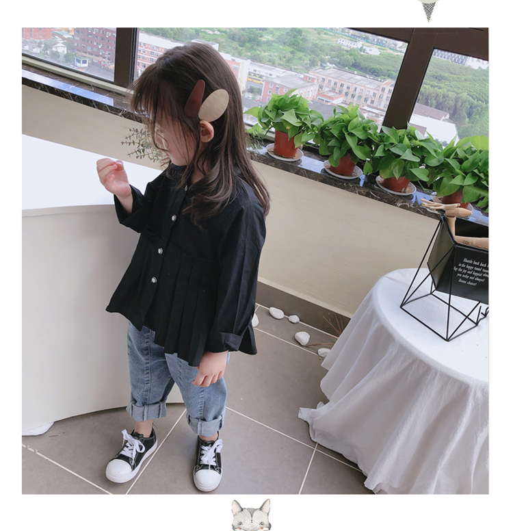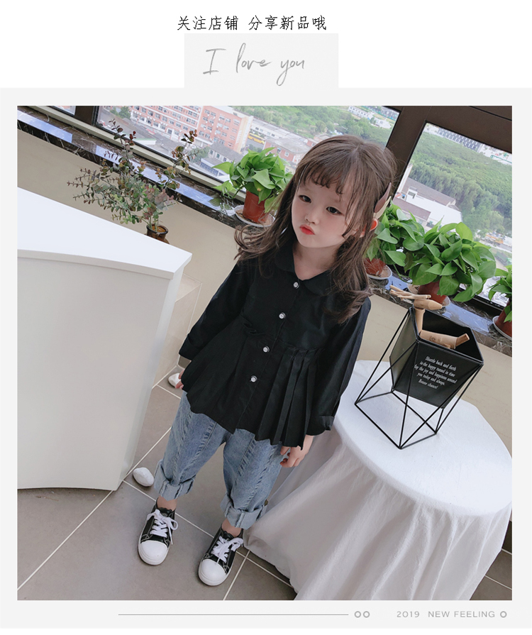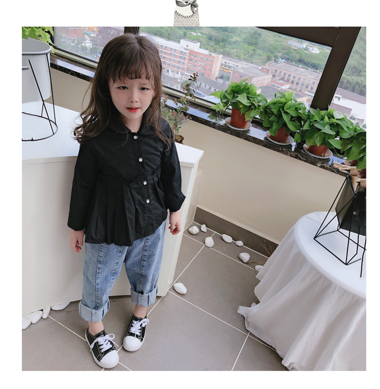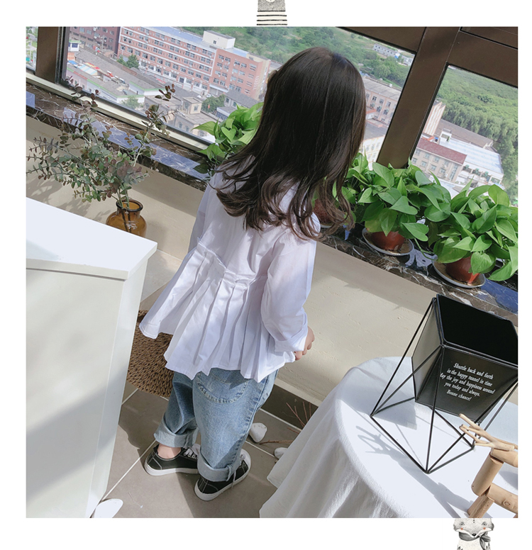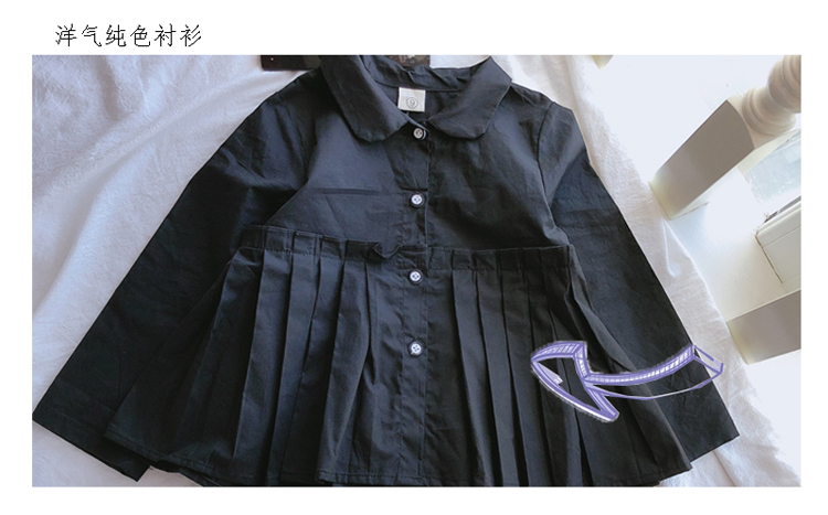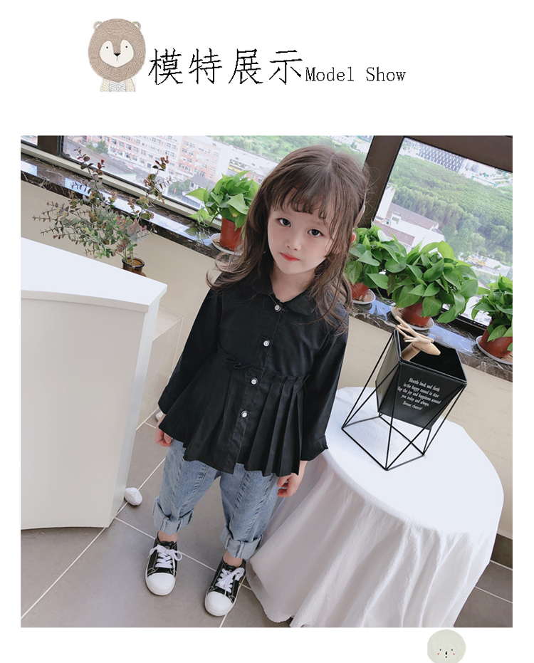 2019春秋季新款童裝 女童個性洋氣純色襯衫 中小童可愛甜美上衣1入
