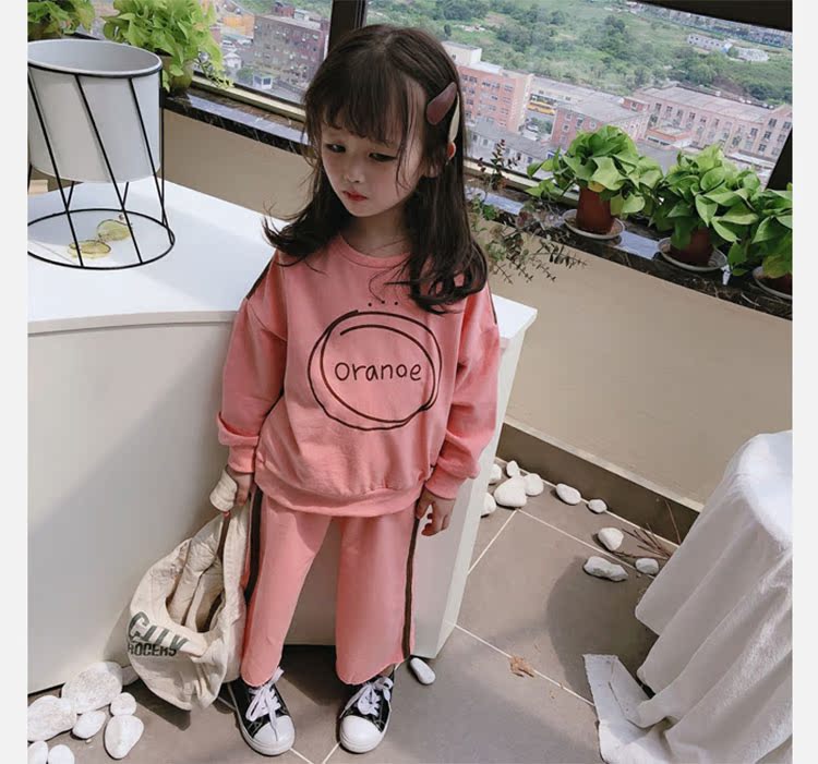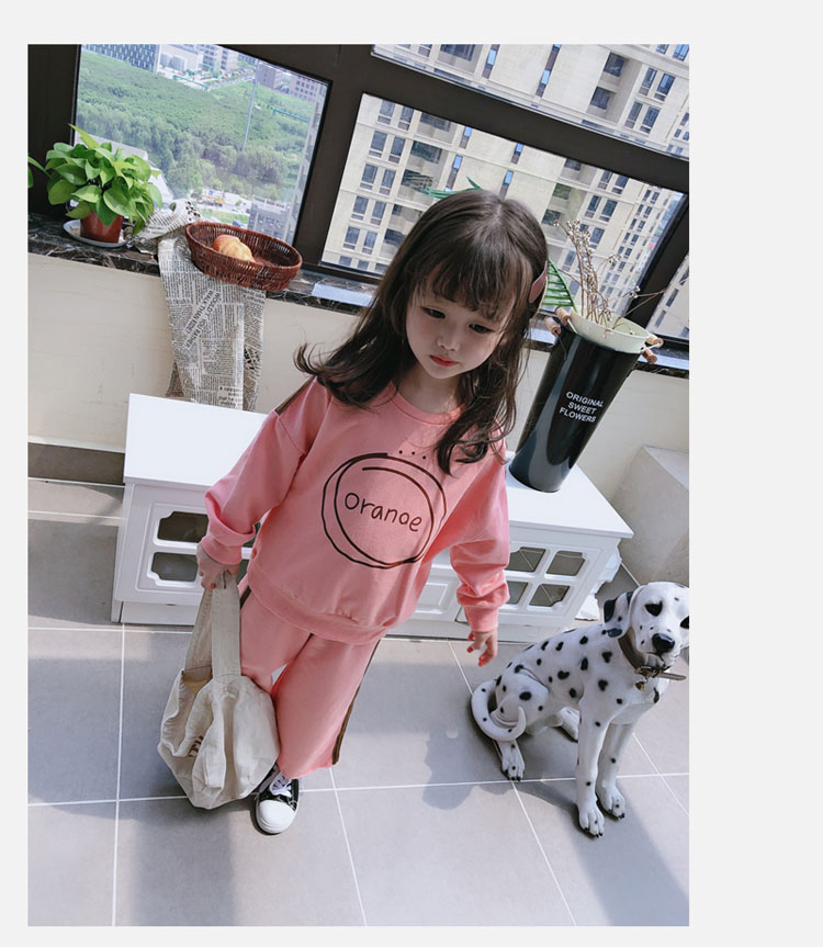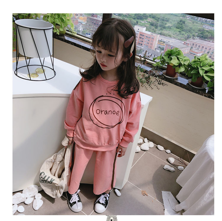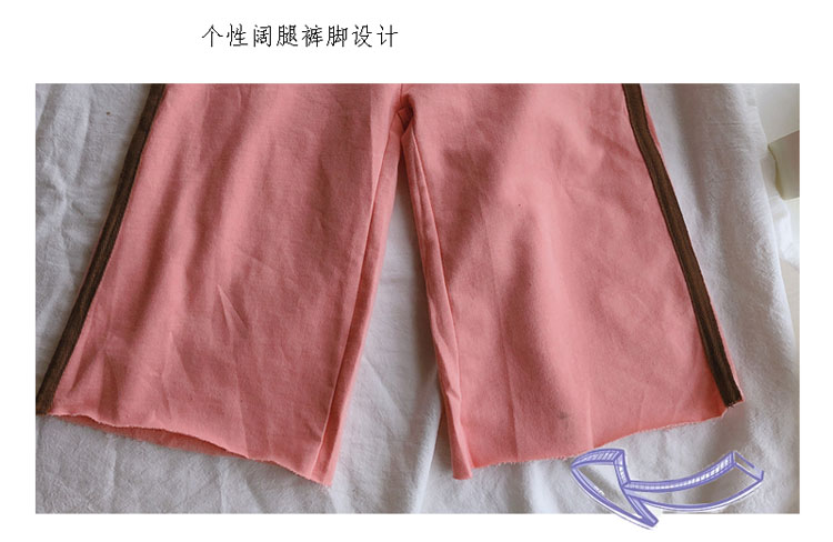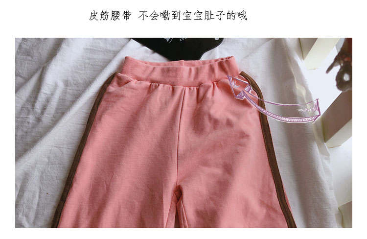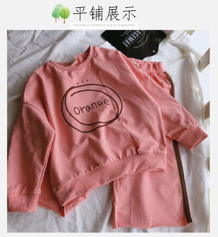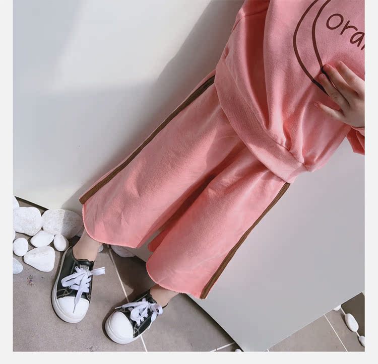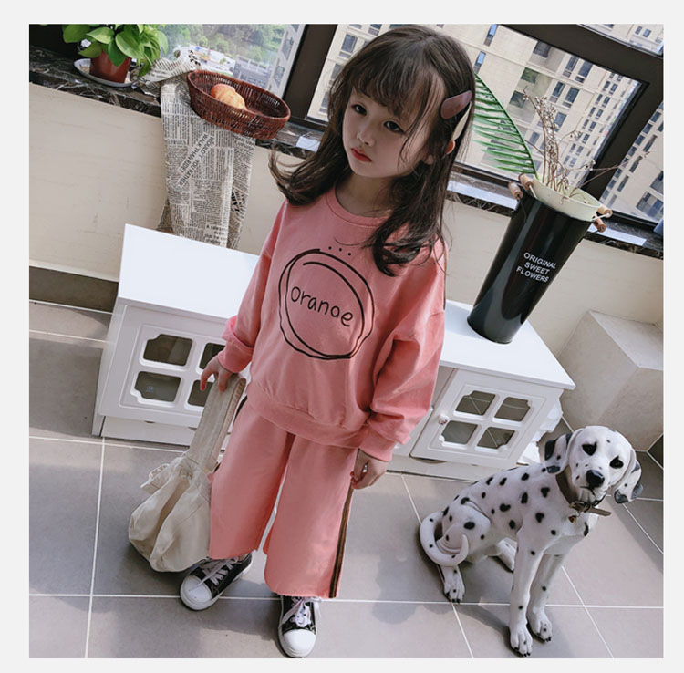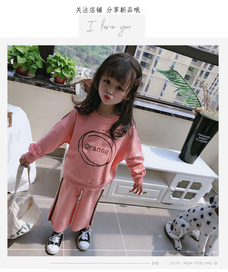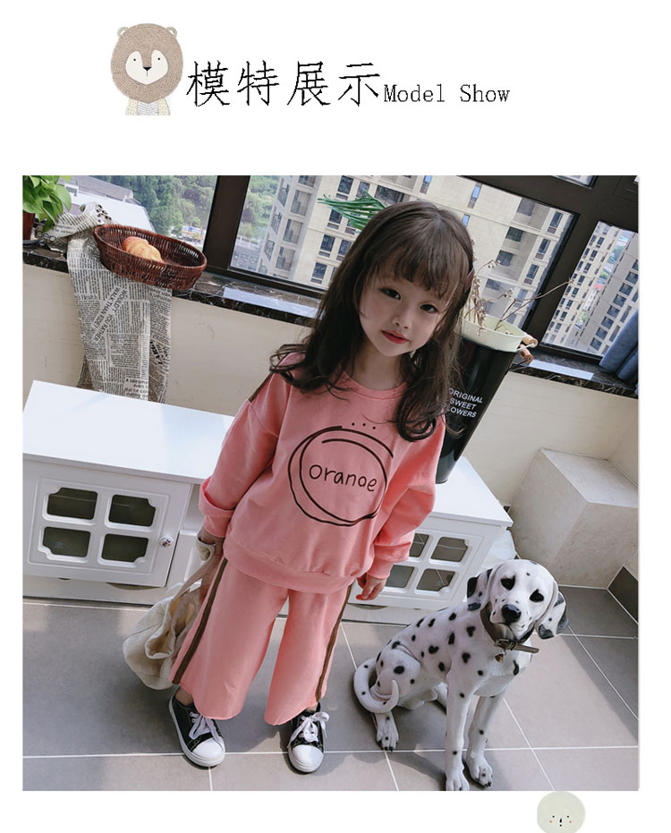 2019秋季新款 中小童休閑拉邊闊腿褲+女童寶寶圓領卡通圖案上衣1入
