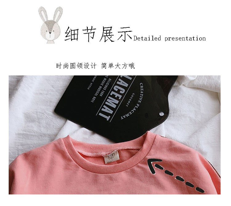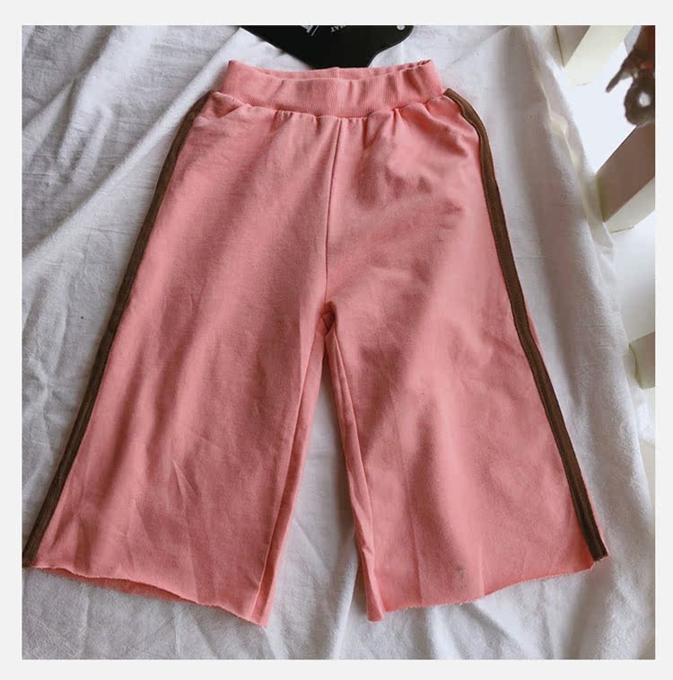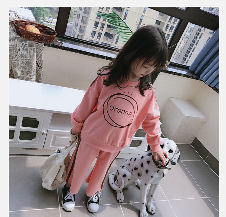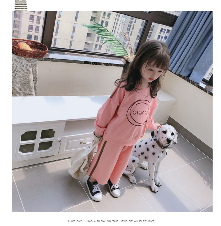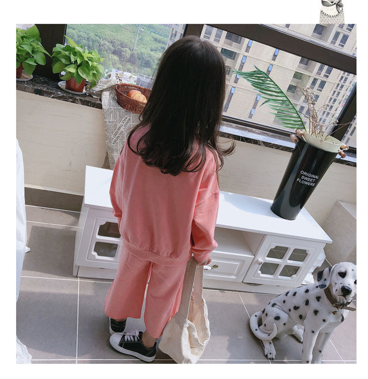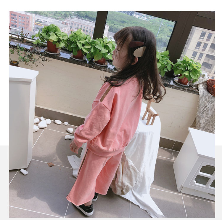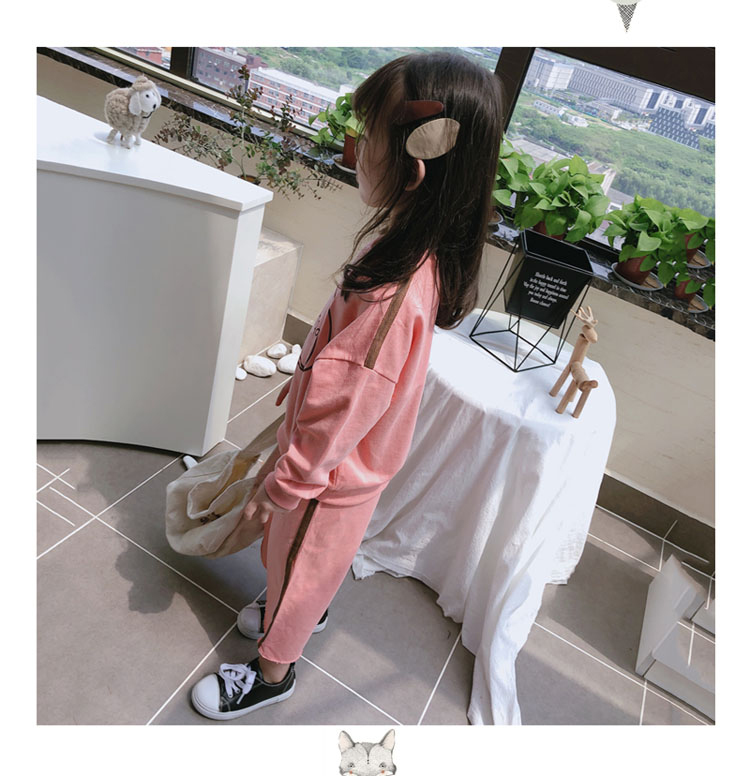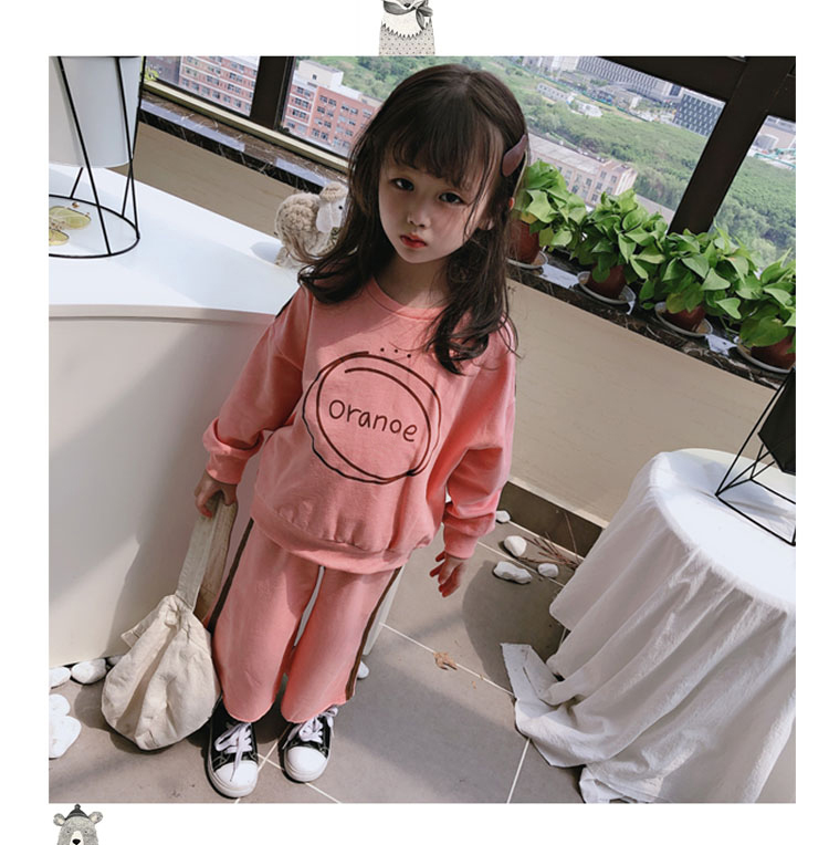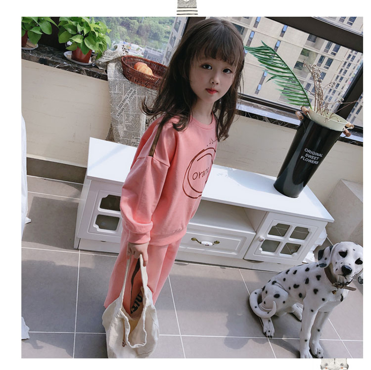 2019秋季新款 中小童休閑拉邊闊腿褲+女童寶寶圓領卡通圖案上衣1入