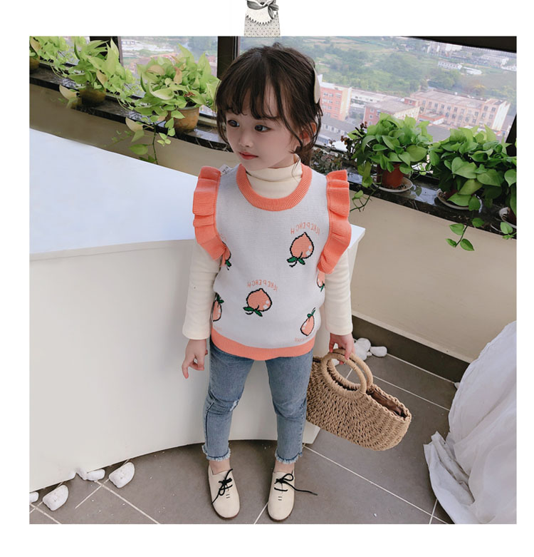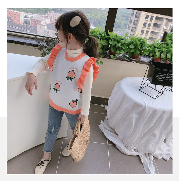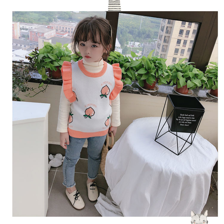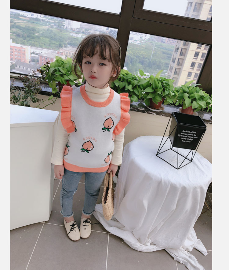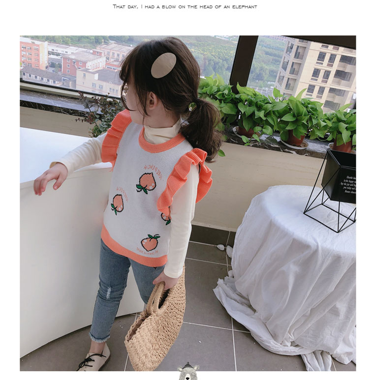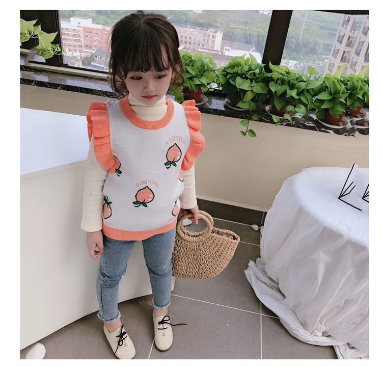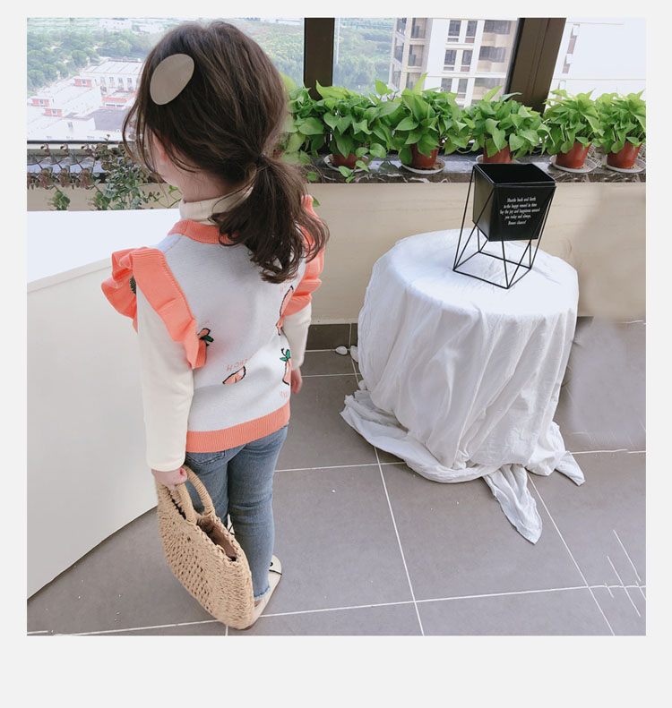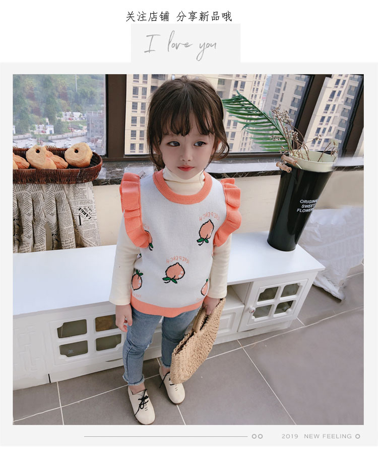 2019秋季新款 女童寶寶背心 中小童圓領撞色可愛小飛袖針織上衣1入