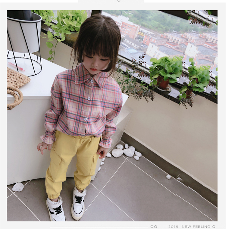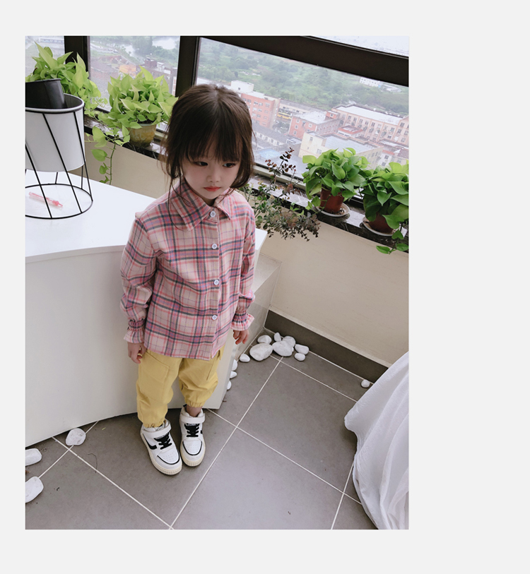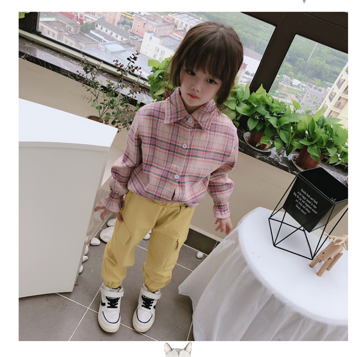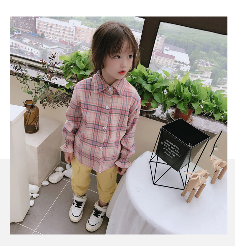 2019春秋季新款 男女童個性洋氣襯衫 中小童可愛舒適格子長袖上衣1入