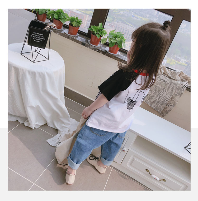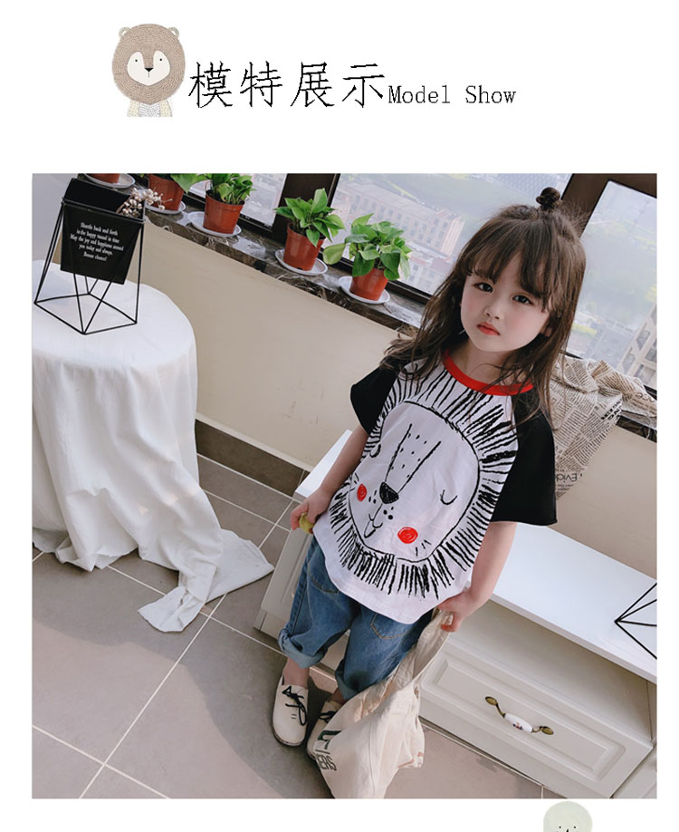 2019童裝夏季 男女童寶寶圓領套頭T恤 中小童卡通兒童打底衫上衣1入