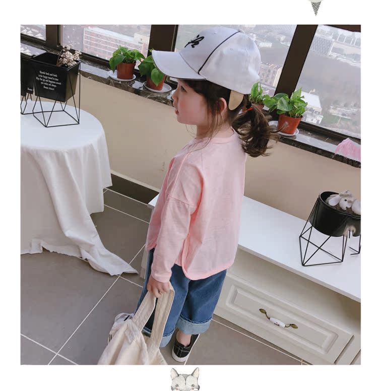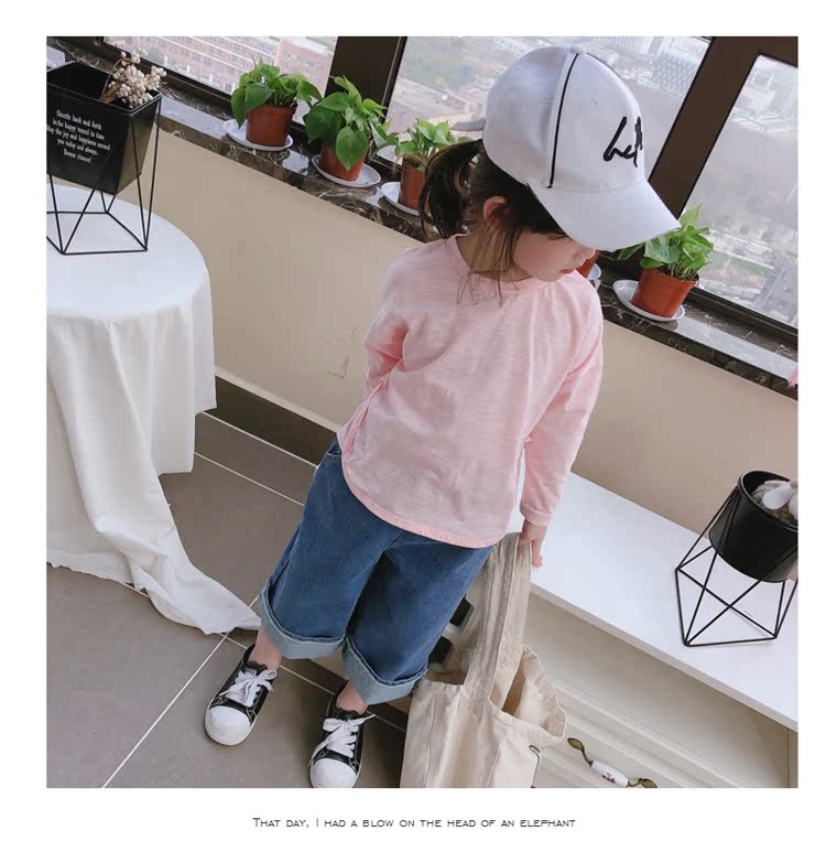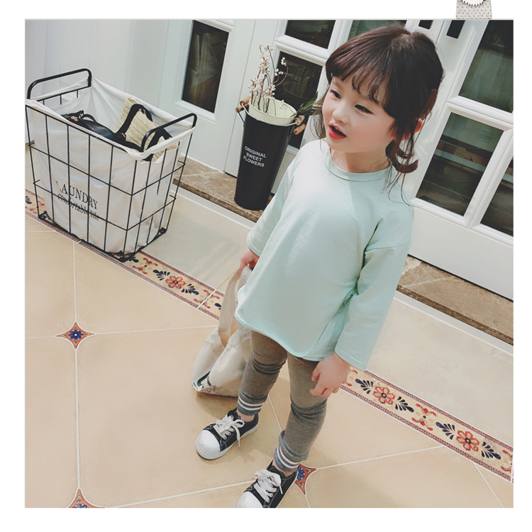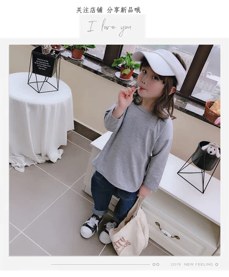童裝2019春秋季新款中小童時尚休閑舒適純色T恤 洋氣百搭長袖上衣1入