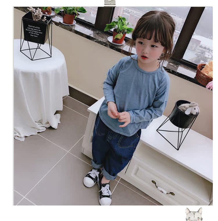[2]童裝2019春秋季新款中小童時尚休閑舒適純色T恤 洋氣百搭長袖上衣1入